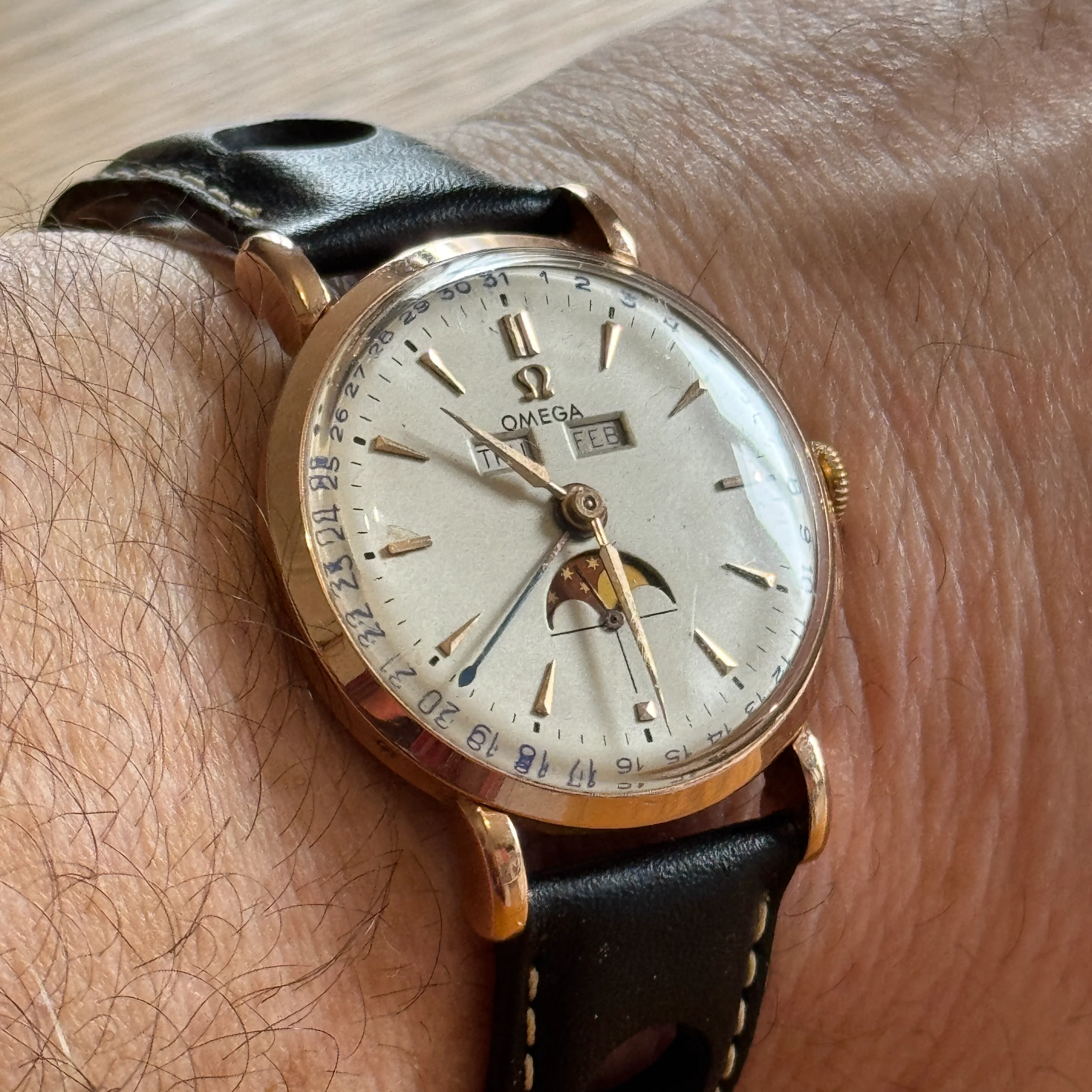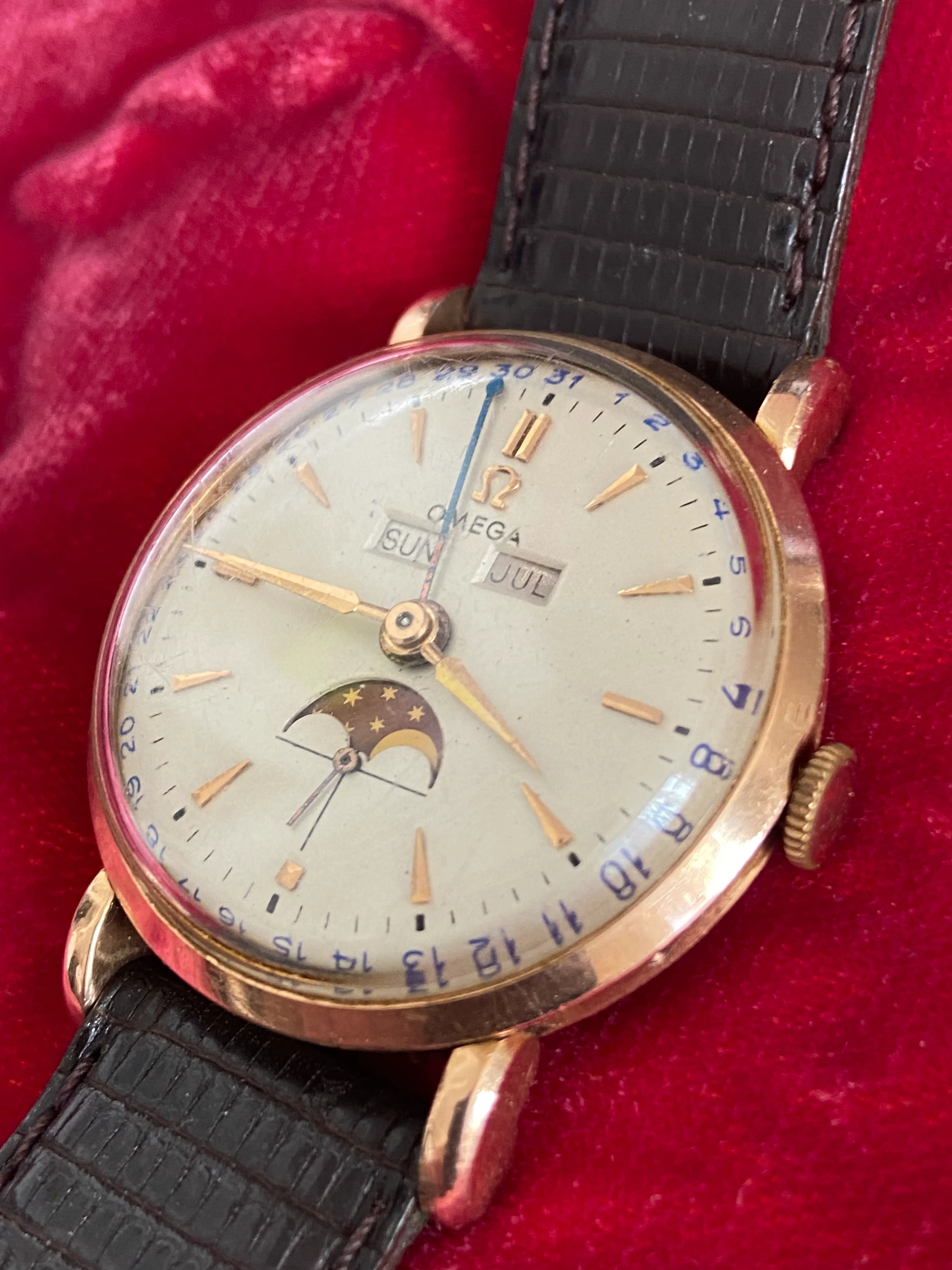 路Hello, I'm in France and have a 1950 rose gold Cosmic Moonphase 2471 (my father got it from his uncle around 55), but... the gold backcase is lost for decennies ! I would like so much to have a backcase back, maybe a staintless one would be a good replacement. I'm looking for this back for years, no result. The watch currently has a nice transparent back, glued on by a watchmaker. Do you think I can find an original background one day? Any ideas? Thanks a lot. Regards from Paris.
