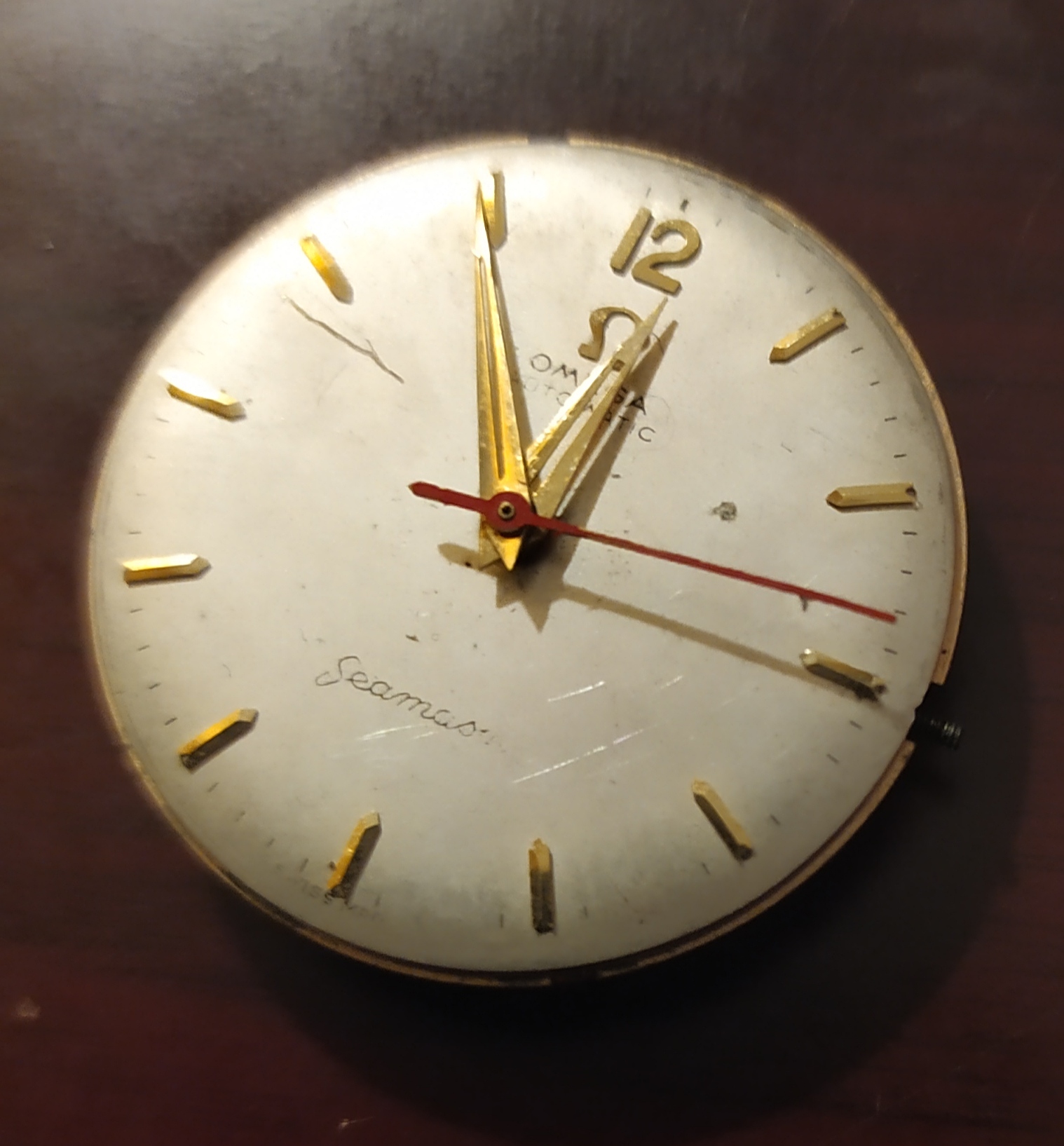 Firstly thank you for all the help I got from you for putting my ref# 166.026 Cosmic together. Almost ready to be assembled. I will post once it's finished. Now for the second part. I have this 471 movement that came with the original dial and I believe original hour/minute hands but the second sweeping hand is red and even though it's functioning perfectly it makes me think that it's not original because of the color. Although I came across a 2802 with 471 movement and a very similar dial and hands that had a bright blue second sweeping hand. here is the picture of my dial and hands, any opinions on this? By the way is the dial worth saving with scratches and Seamaster script fading? Thanks
