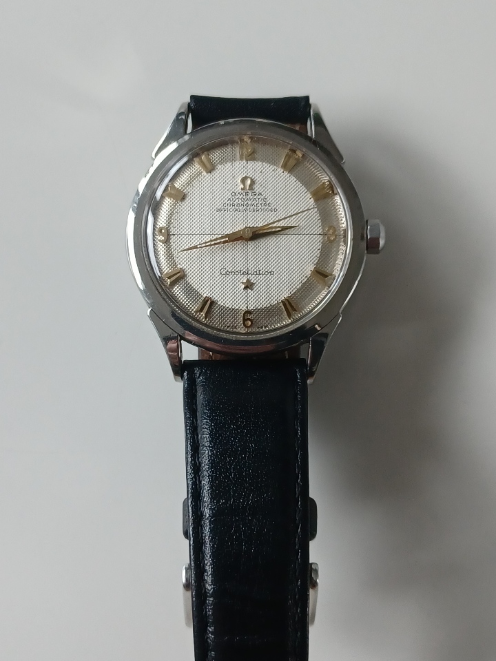 i have my eyes on this omega constellation with honey comb dial.