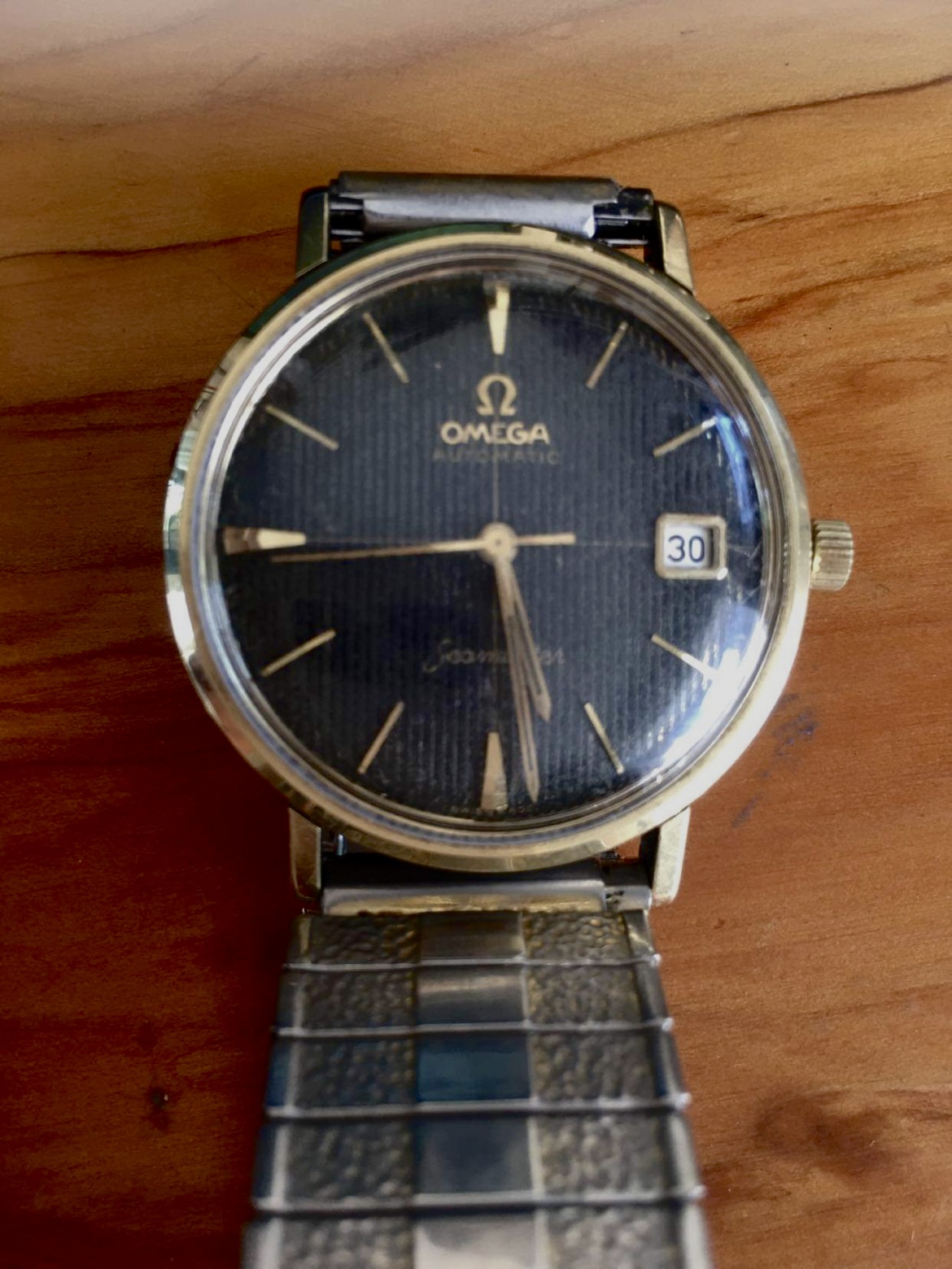 Like the title says, I need some second opinions. I found this Seamaster preville online that I believe is a 14770 with a rather unique dial. I just have some concerns over the case and it’s apparent two tone nature as it doesn’t look correct for gold cap. Wrong crown is also apparent. I’ve found similar dial configurations on other 14770s with crosshairs and these markers but none with this ribboned texture.