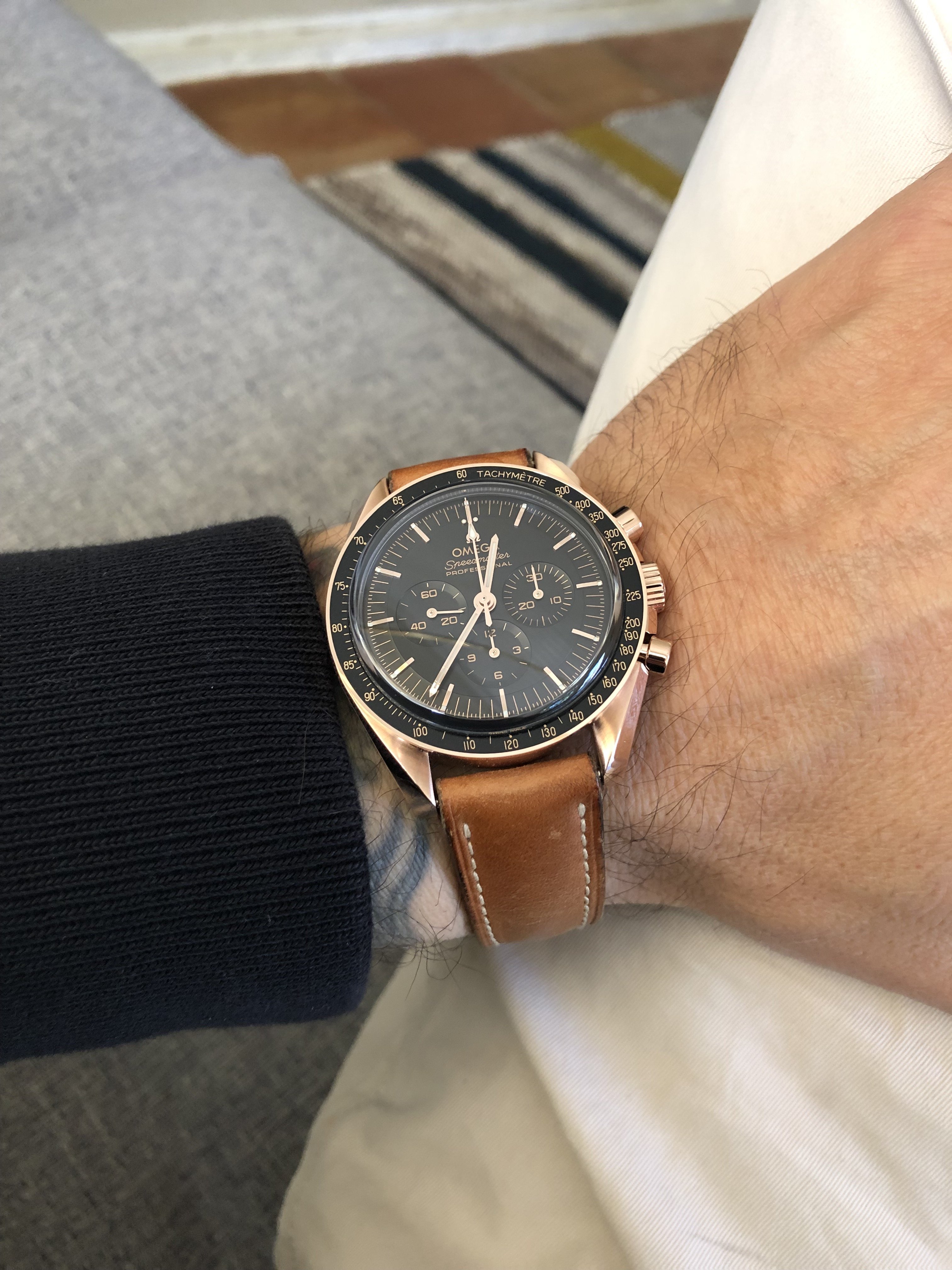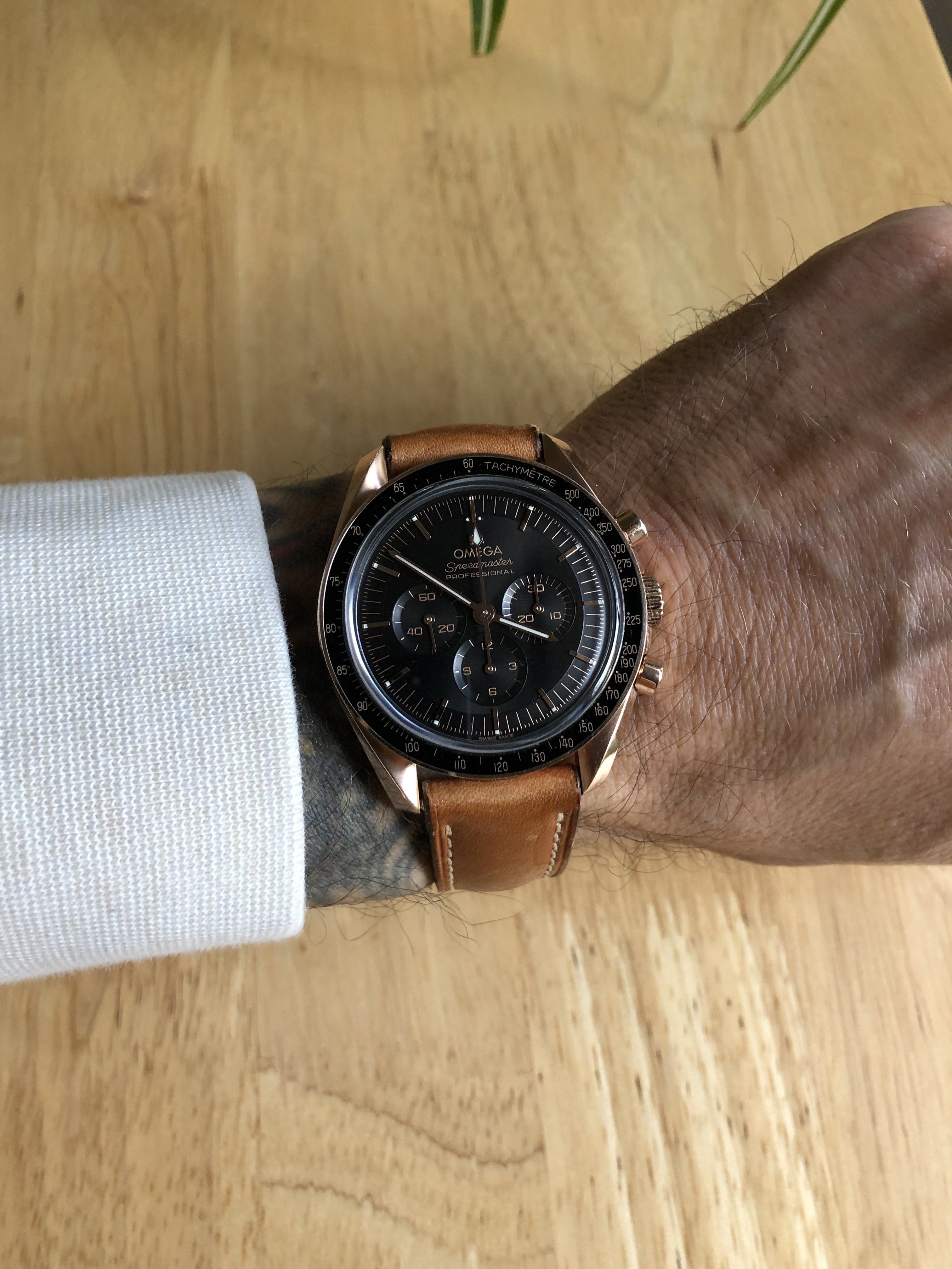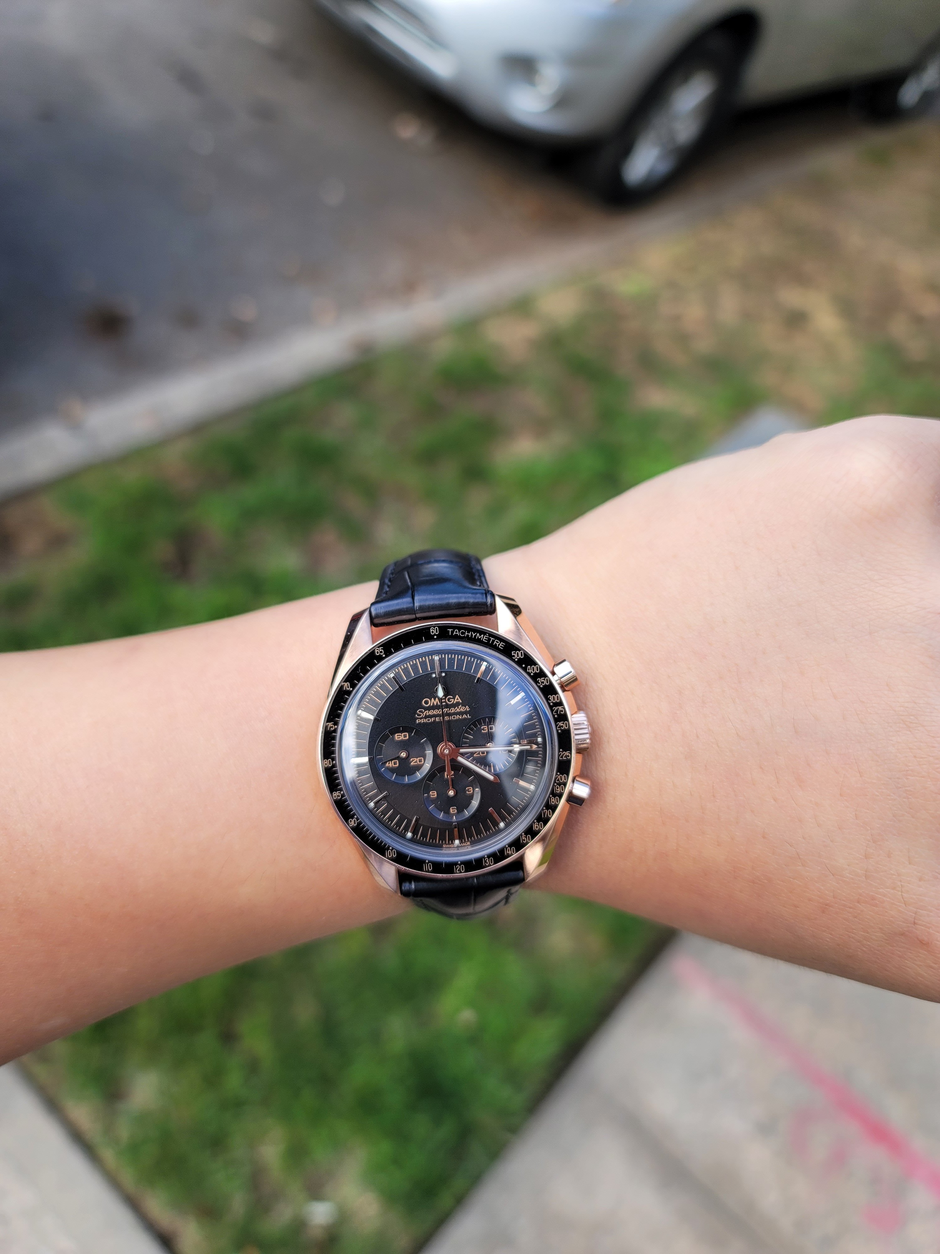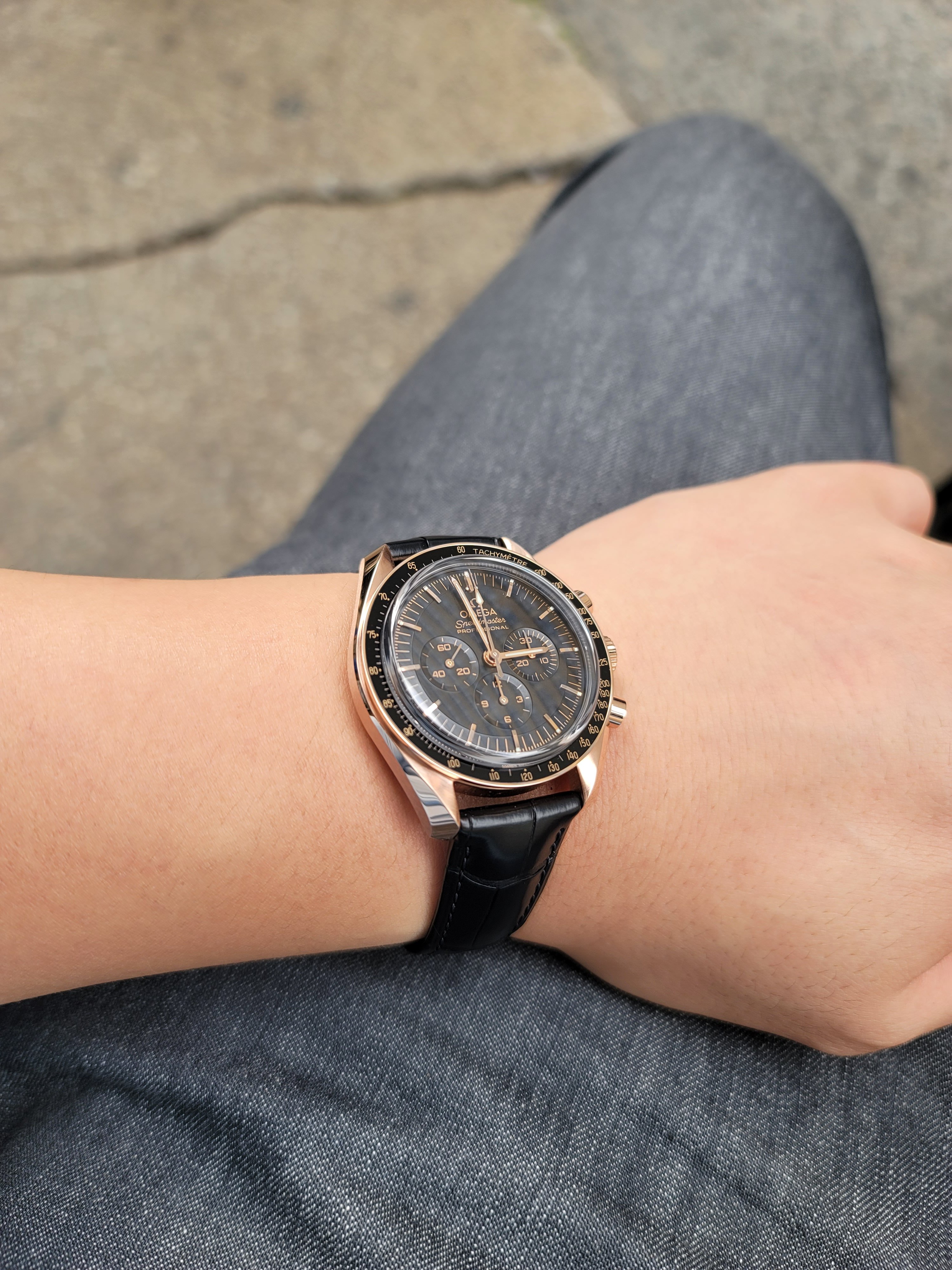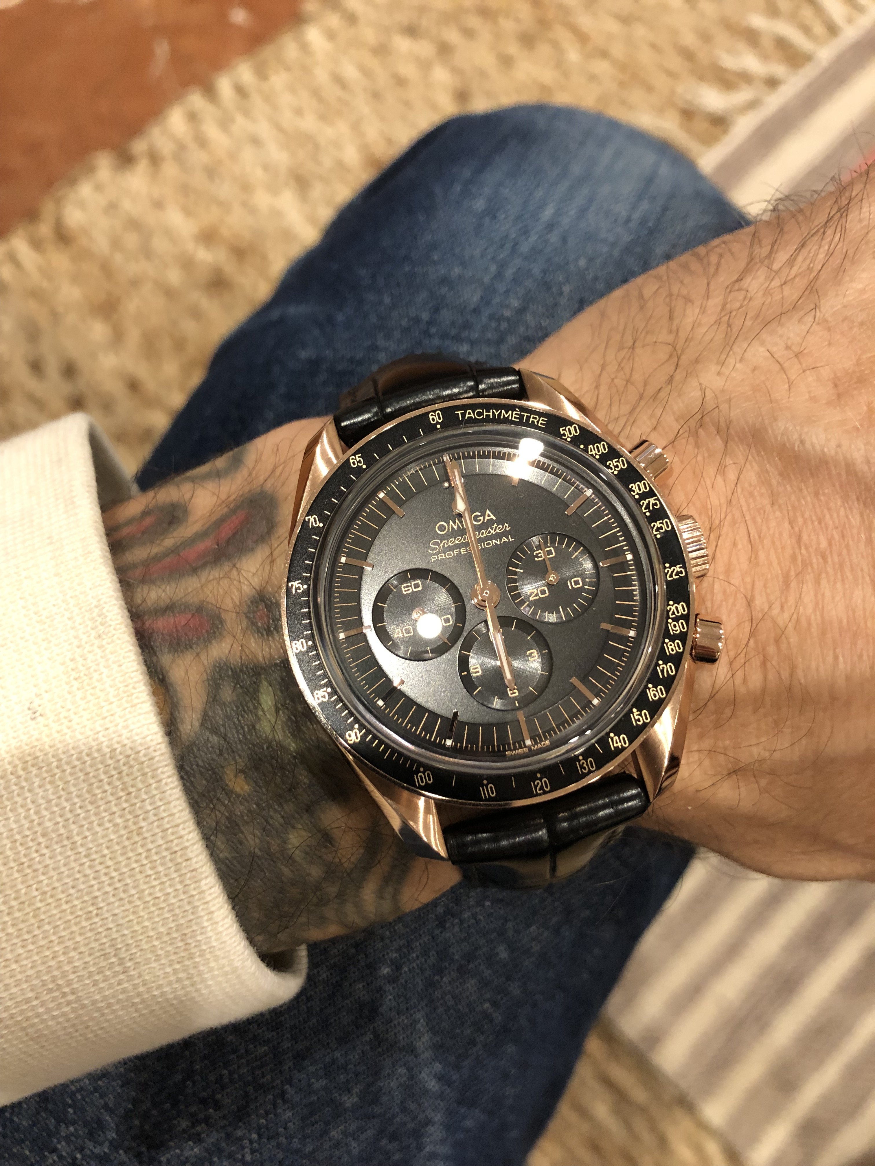 So what do you think about the dial? I read that it has a sunburst or glossy sheen. I like the idea but how does it look in person compared to the normal speedy? I also like that the dial is black instead of yellow gold. Black has more of the moonwatch vibe to me.