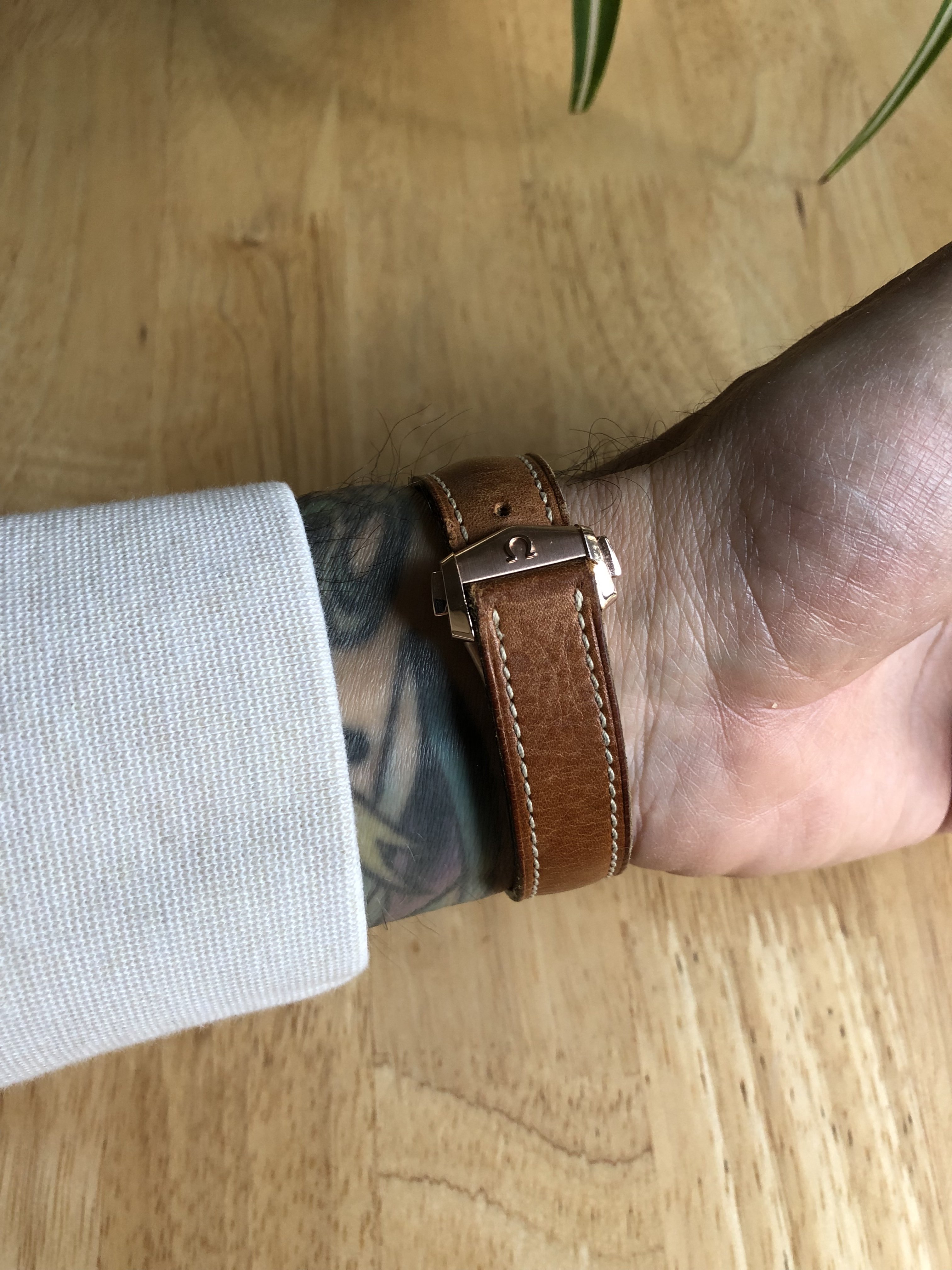 This Sedna with the strap is crazy attractive. The bracelet is great but it's alot of gold to be swinging on your wrist. Black and gold is a nice combo. It works. Plus this thing seems like it would be a strap monster.