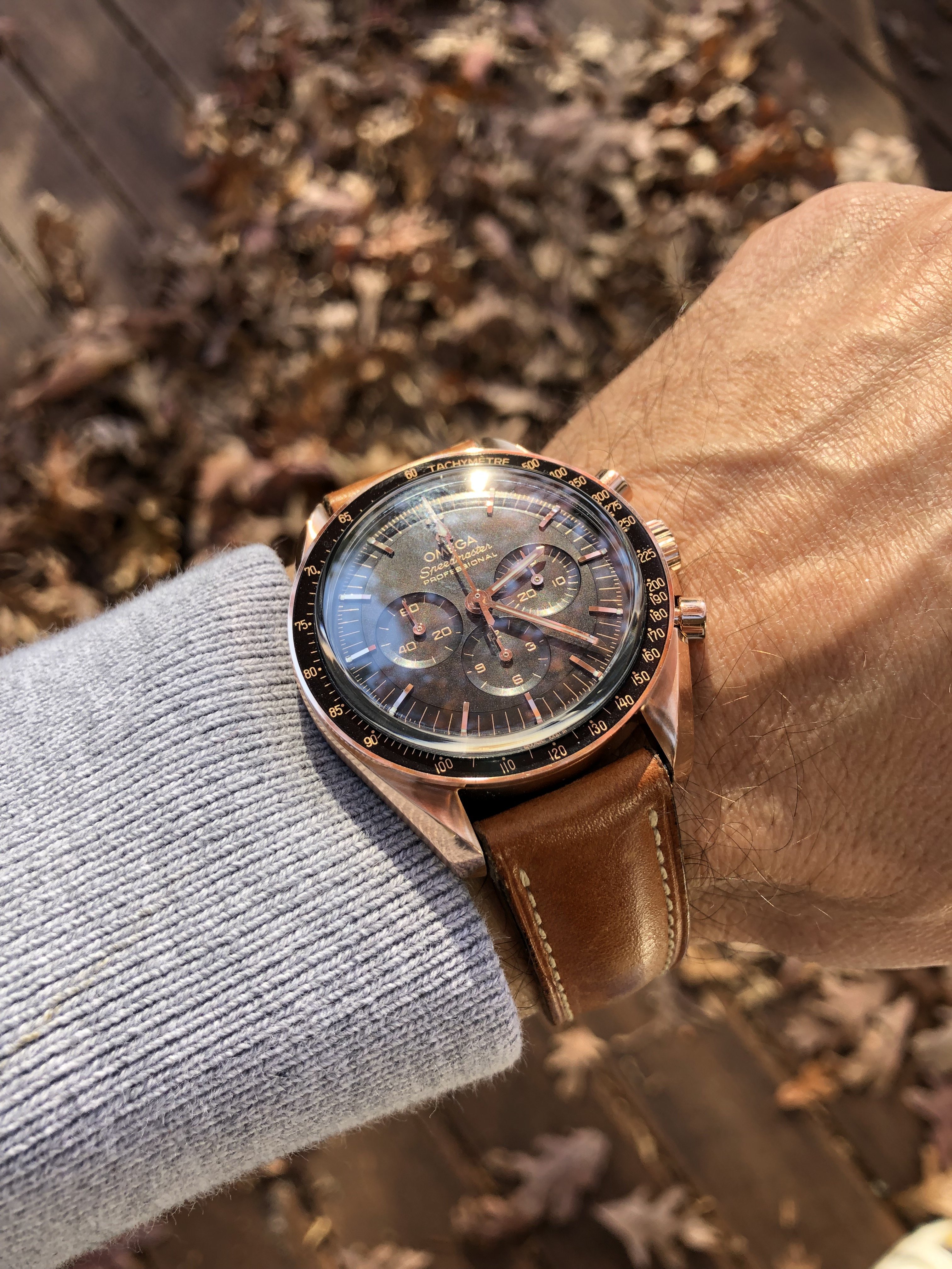 As for the price, it's still a bunch of money. But relative to paying 19 to 20k for a new Ed White from a flipper, it's a decent deal. I have been actually debating about paying to get an Ed White from a flipper because I can never get one from a dealer. Then the whole vintage versus new comes up. I can get a nice vintage Ed White, but recently I have had a couple vintage watches need service. I have 4 at watchmakers right now. I love vintage, but having problems with vintage chronographs gets tiring. My favorite are my new speedys, including the 35th apollo-soyuz meterorite. It's one of my most worn watches. I think I could just wear that one watch every day. The other modern 1861 is getting an apollo 11 35th dial mod shortly (have the dial, waiting on a chrono seconds hand from a Tokyo because it has a little red tip.) This will satisfy my white dial itch.