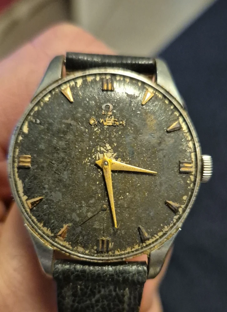 The dial is beyond 'patina' and is actually flaking/heavily damaged. I am considering a high-quality redial to make it wearable again.