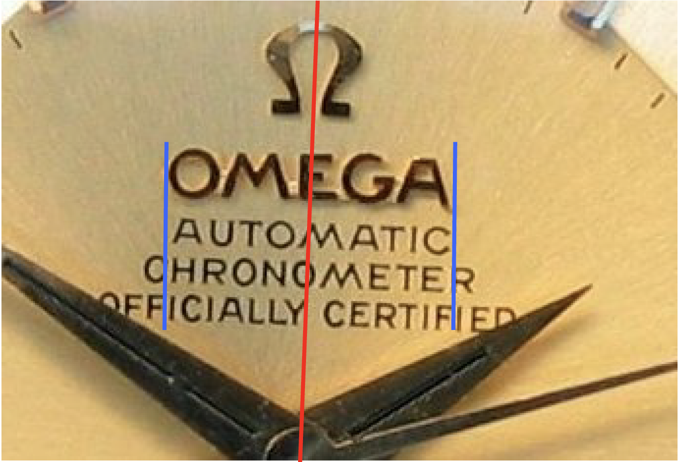 Piepan dial looks to be in very good condition. From the best I can tell given these photos, the font looks correct, including the "R"s and "F"s. The dial fails the MOY test, but could this be similar to the cases noted by Desmond? Notice the oval "O" in "Chronometer" likely accounts for this discrepancy.