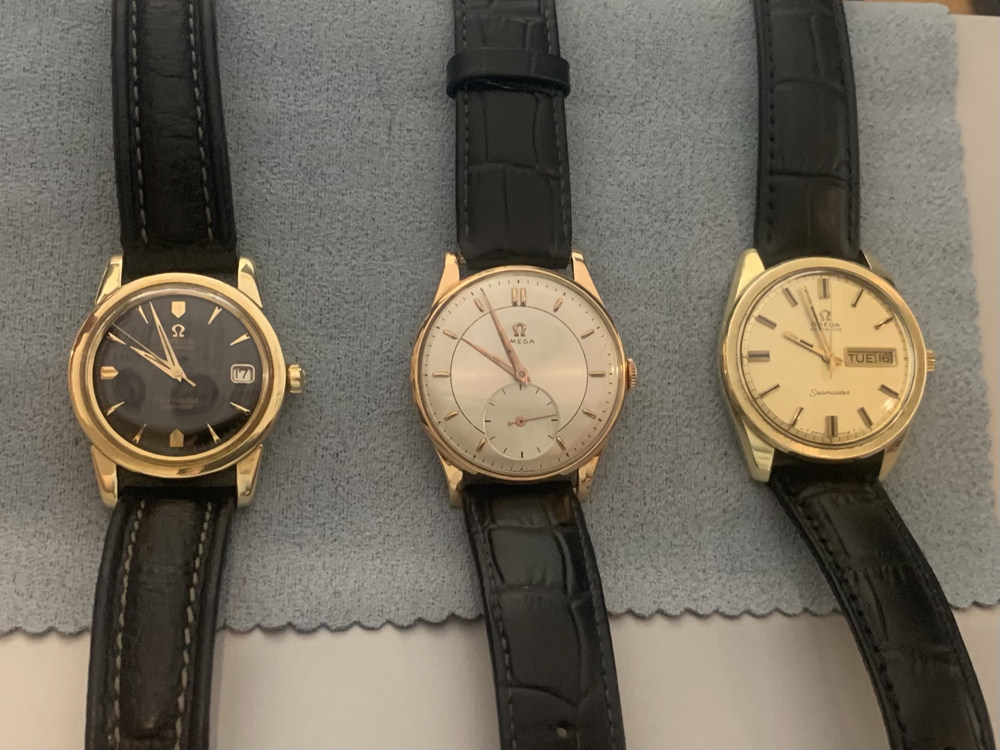 All run well. The Seamaster Day-Date was recently serviced at a whopping cost of $475 (for a watch that was running perfectly and keeping good time). The other two are ready to be serviced but run well without any issues. All look great on my wrist. I have owned the Day-Date for over 30 years, the 30T2 for about 15 years and the Seamaster Date for a time in between the other two.