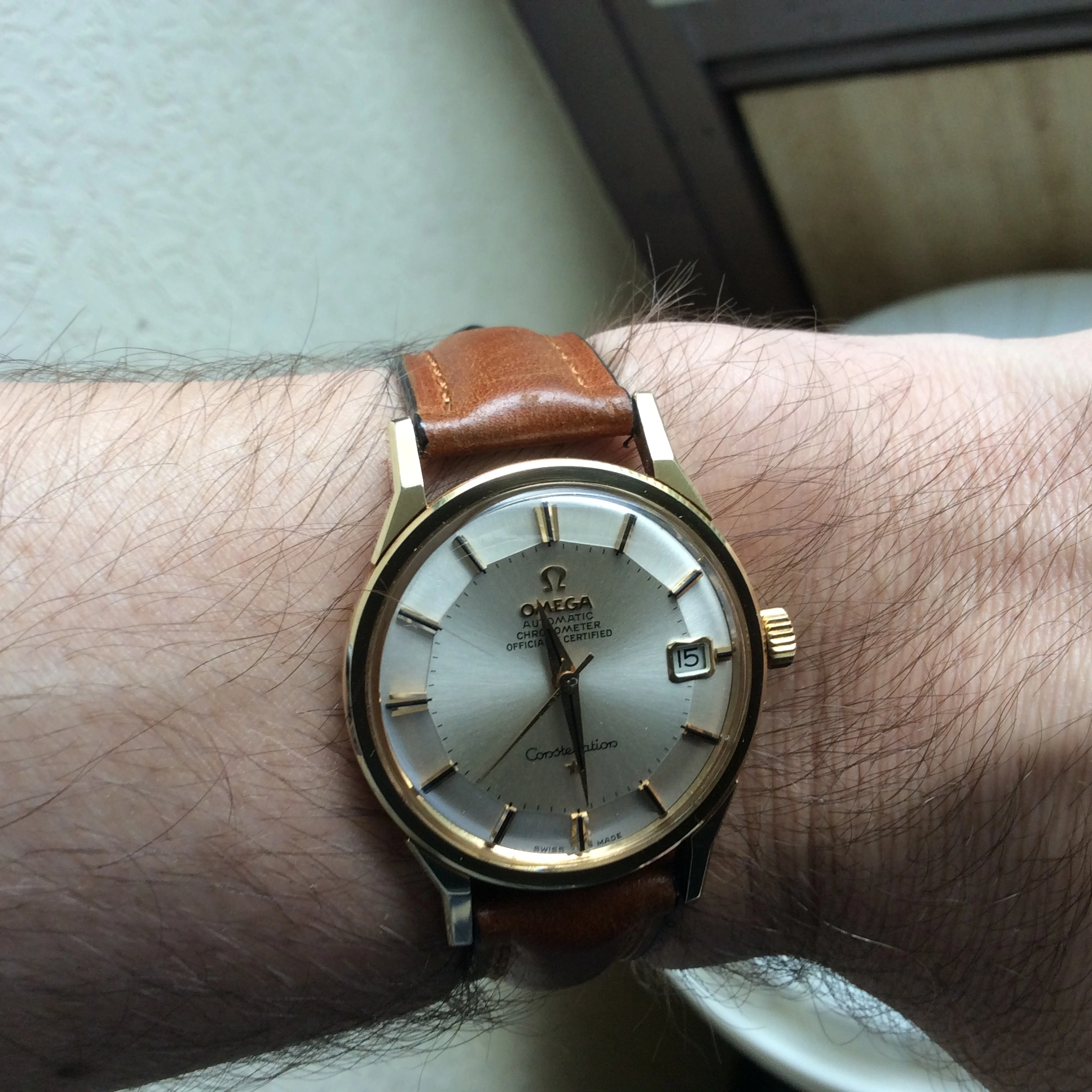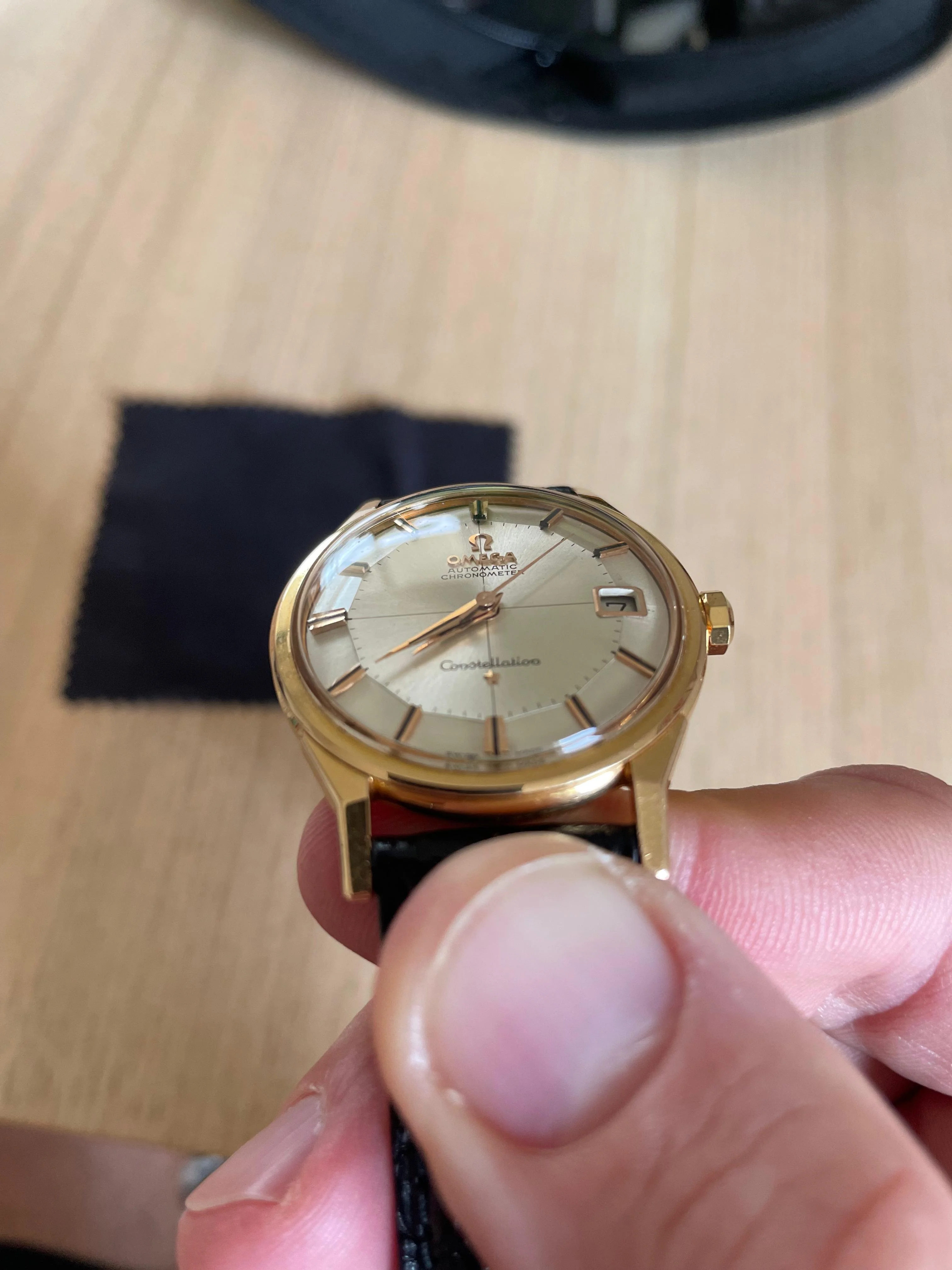 Note: whilst the French and English cases are of (at least) as good quality as the Swiss cases, they do usually go for a little less than Swiss cases as they are locally cased instead of from Omega (even though Omega bought the cases in from Swiss case manufacturers)