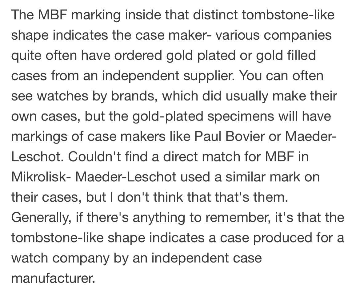 I’ve just noticed a “MBF” mark between the lugs of a rose gold capped 2846 of mine: