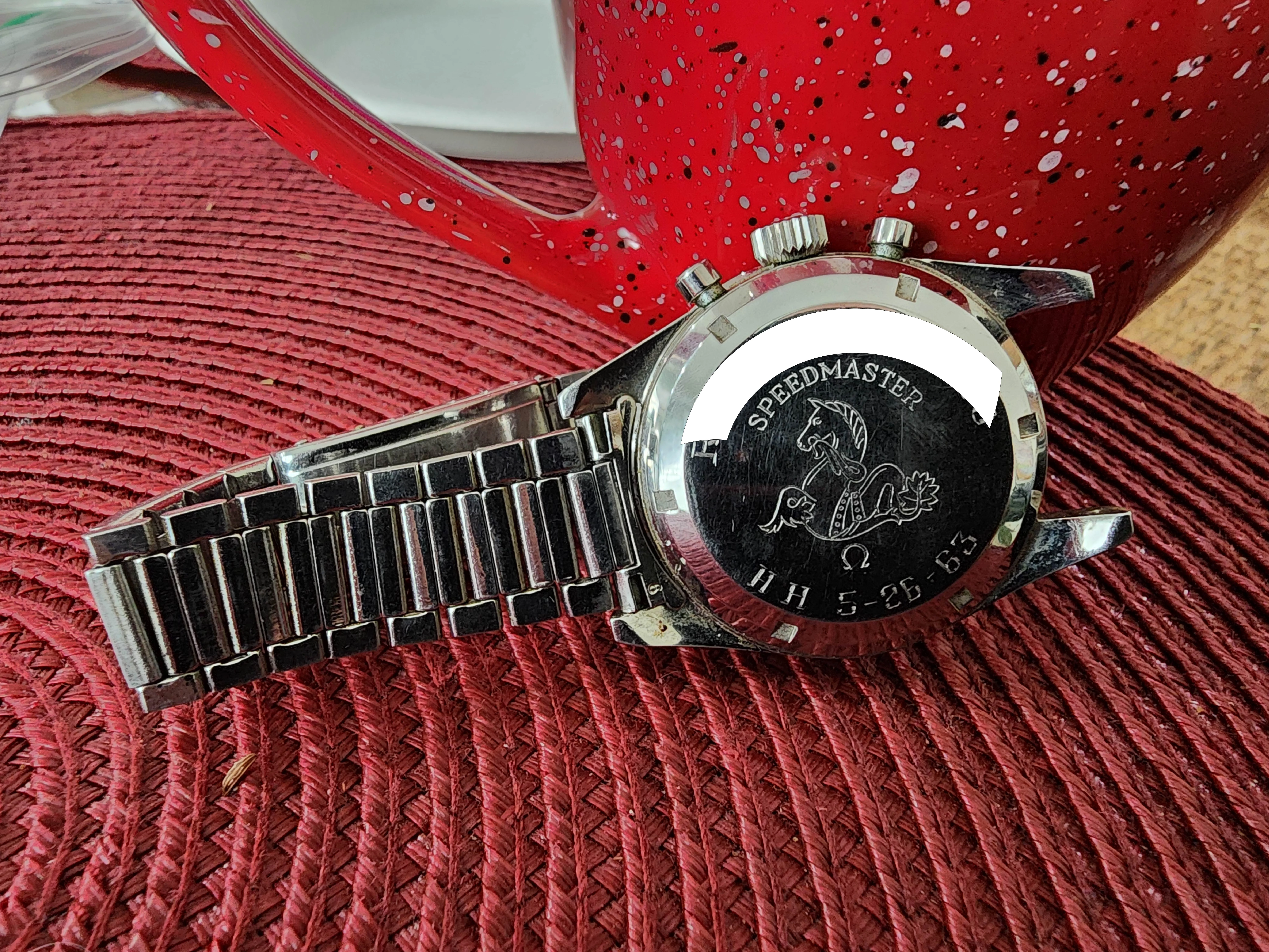 ·I am helping my father figure out what he has and what to do with the Speedmaster he was gifted when he received his first degree in 1963. The current plan is to take it to an Omega Boutique to have the bracelet re-attached. I am not sure if it works, as I didn't want to wind it after so many years sitting in a jewelry box (in a zip lock bag...) and risk breaking something. He has/had no idea of what he owned. I told him to at least get a watch case for it. I am not sure what to advise my Dad to do after that. There is no plan to sell it. It will be a part of the family history to be passed down. We just want to have an idea of its value to make sure we treat it with the appropriate care it deserves.