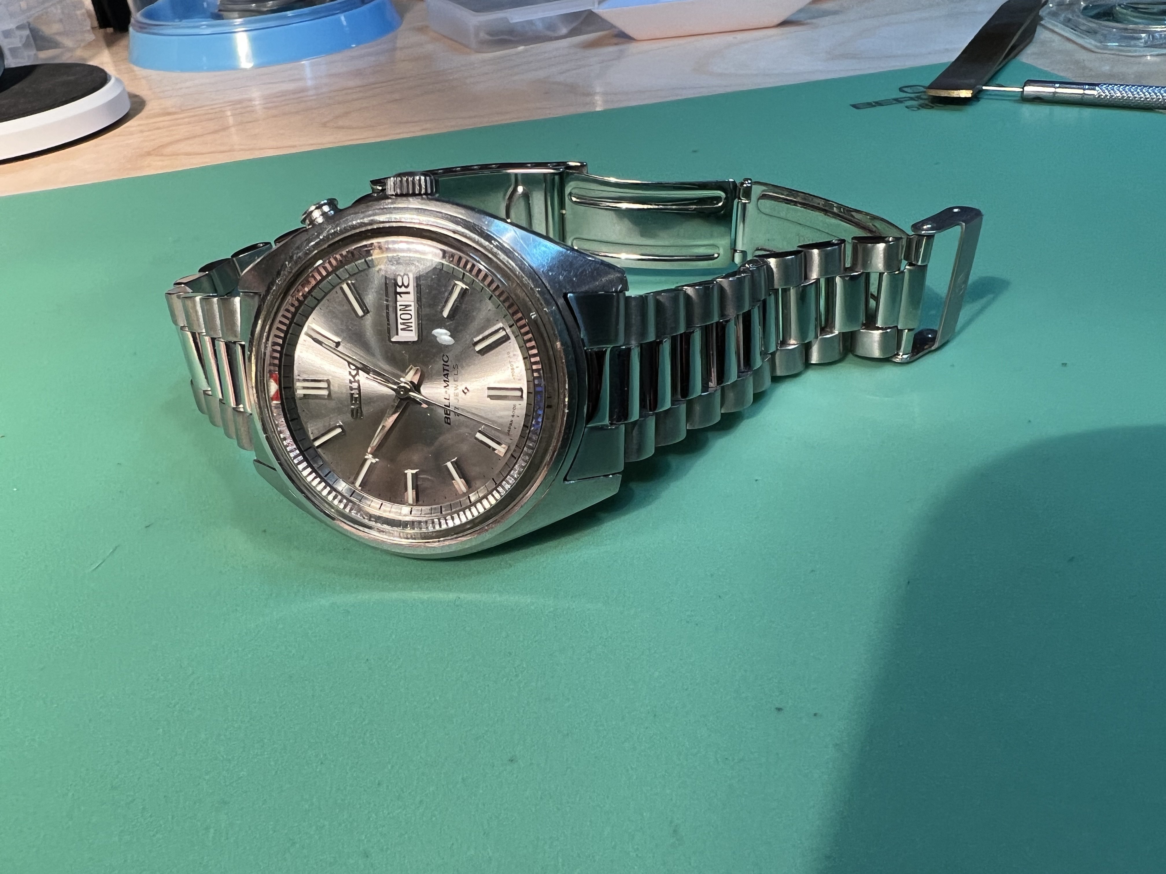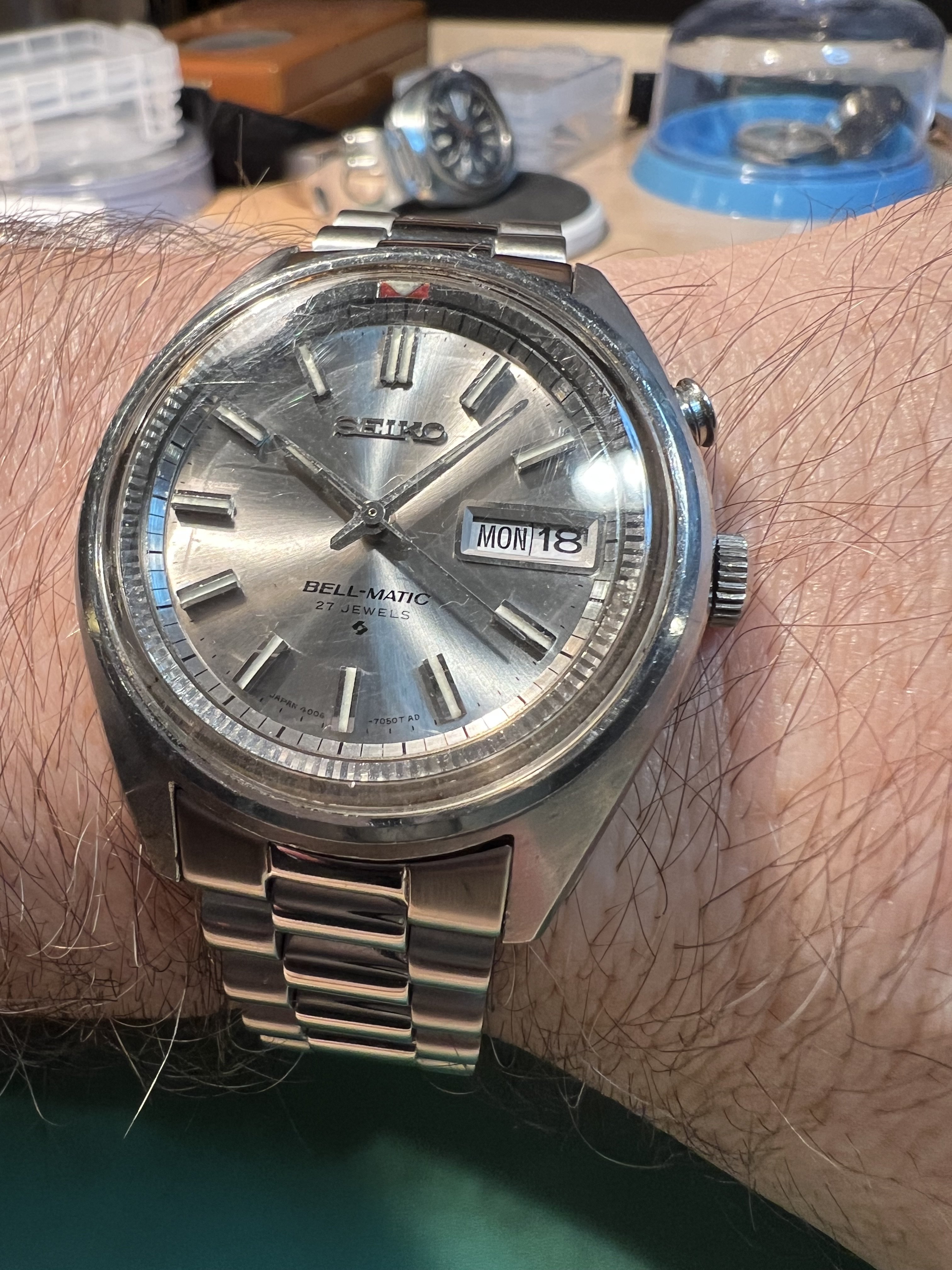 ·Seiko Bell-matic vintage Automatic 4006-7020, early model from 1968 with DAY DATE and ALARM functions, in very good condition with silver dial, stainless steel case, in fine working condition. I have had watch since Sept 2021 and hardly worn.