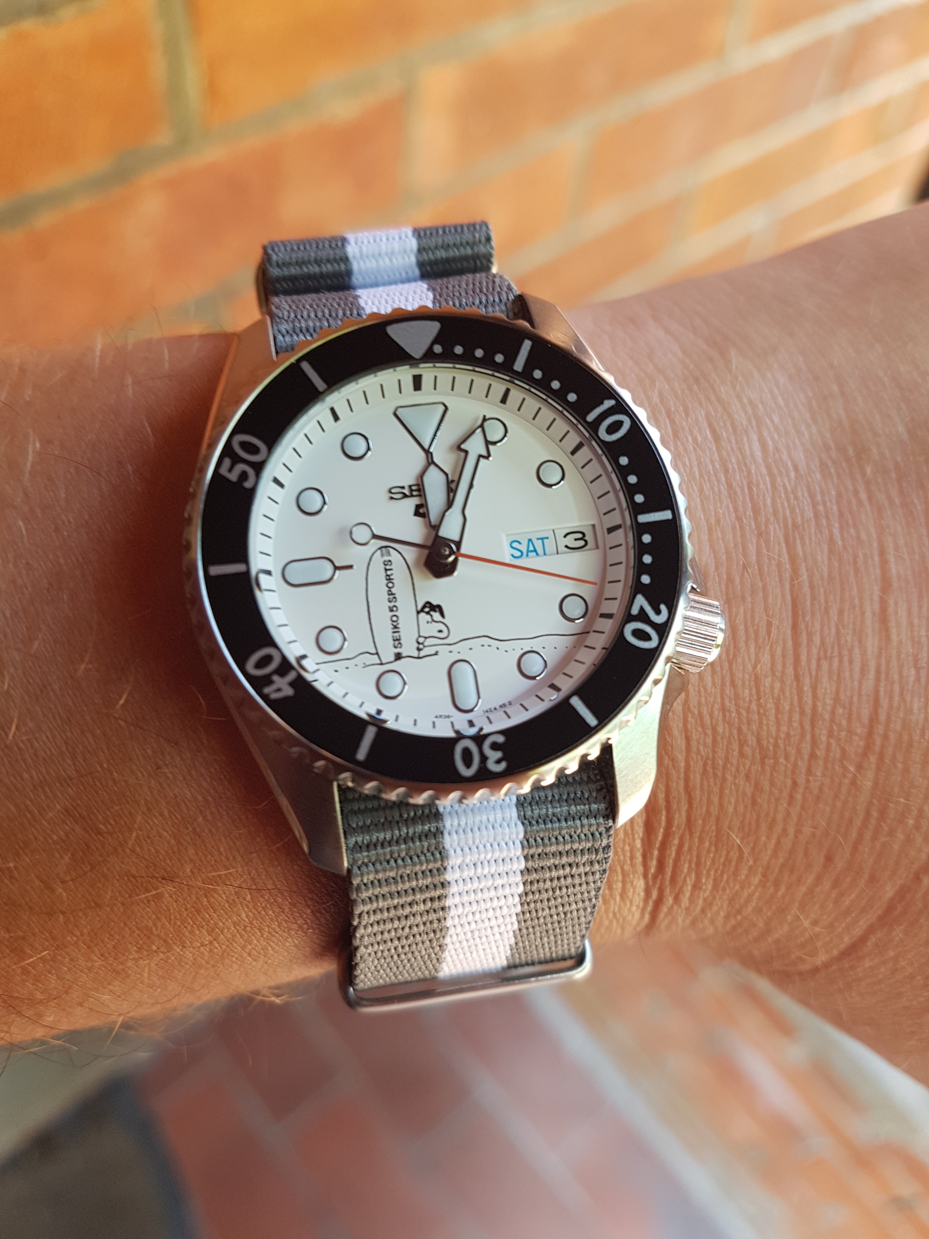 路For those unable to get the Omega Speedmaster "Silver Snoopy Award 50th Anniversary", this could be a very good consolation prize. I must admit, I'm very tempted as I love the design (especially the one with Snoopy as a helicopter). 36mm case size will fit my slim wrists perfectly. Just need to convince the wife to let me get yet another watch 馃榿