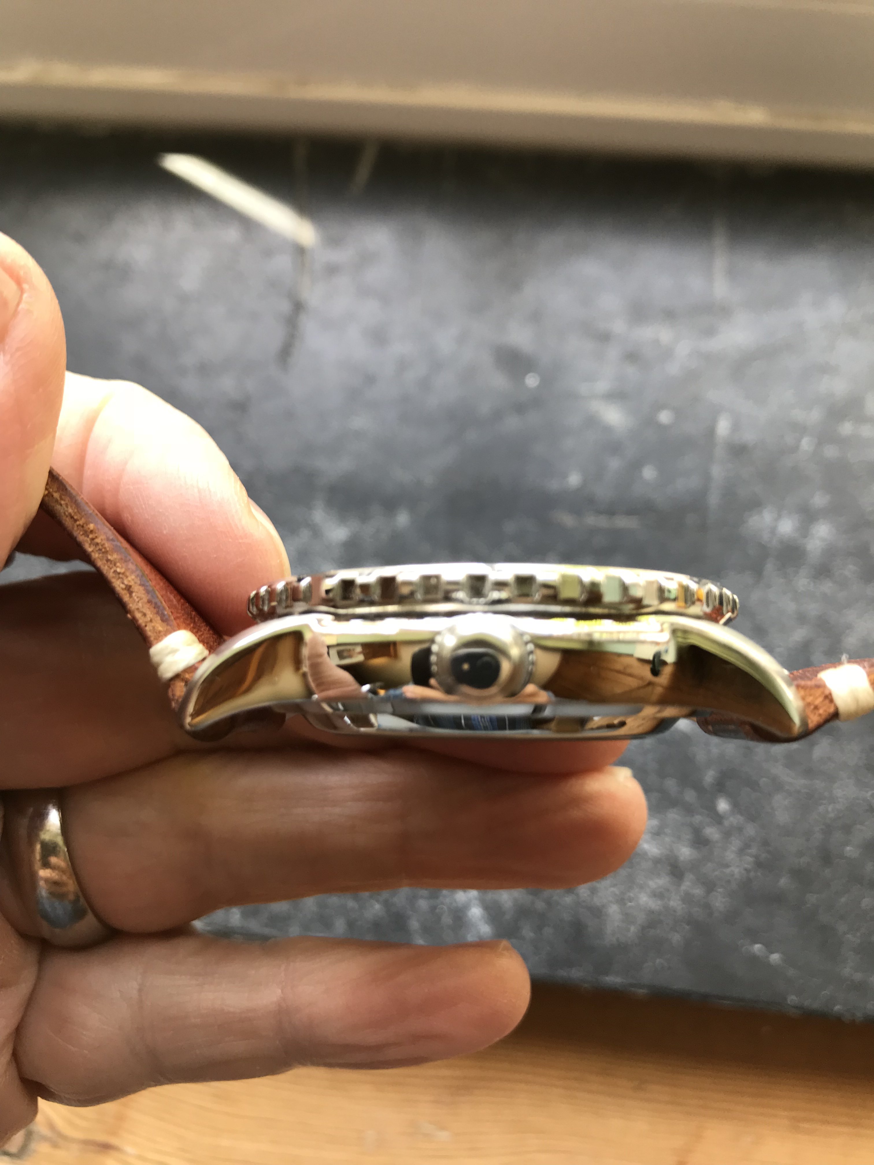 I’ve had the Watch for about 12 months but haven’t really worn it, it was last year’s holiday watch, so it’s in great condition, other than a very small mark on the Crystal in from 9 (see photos).