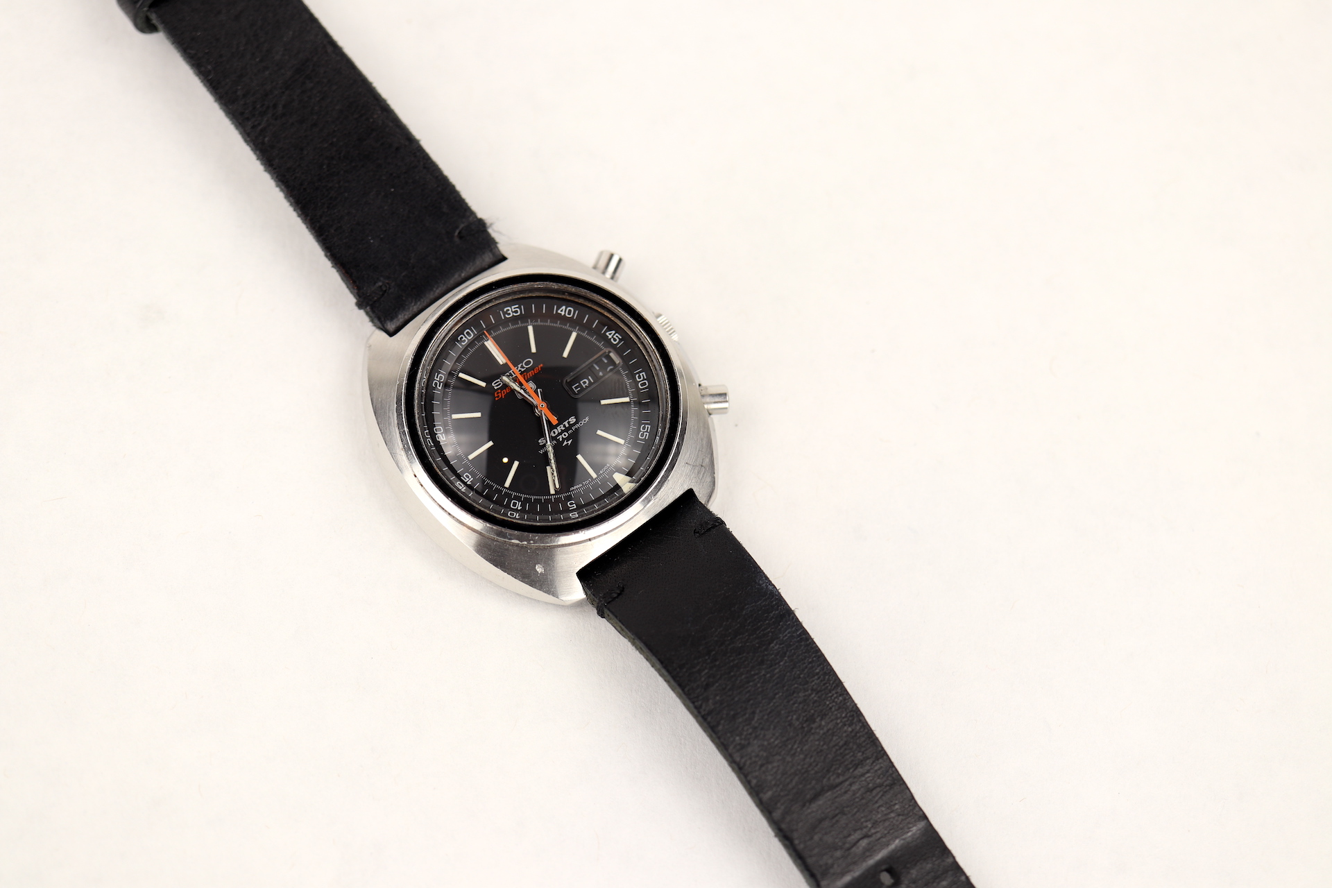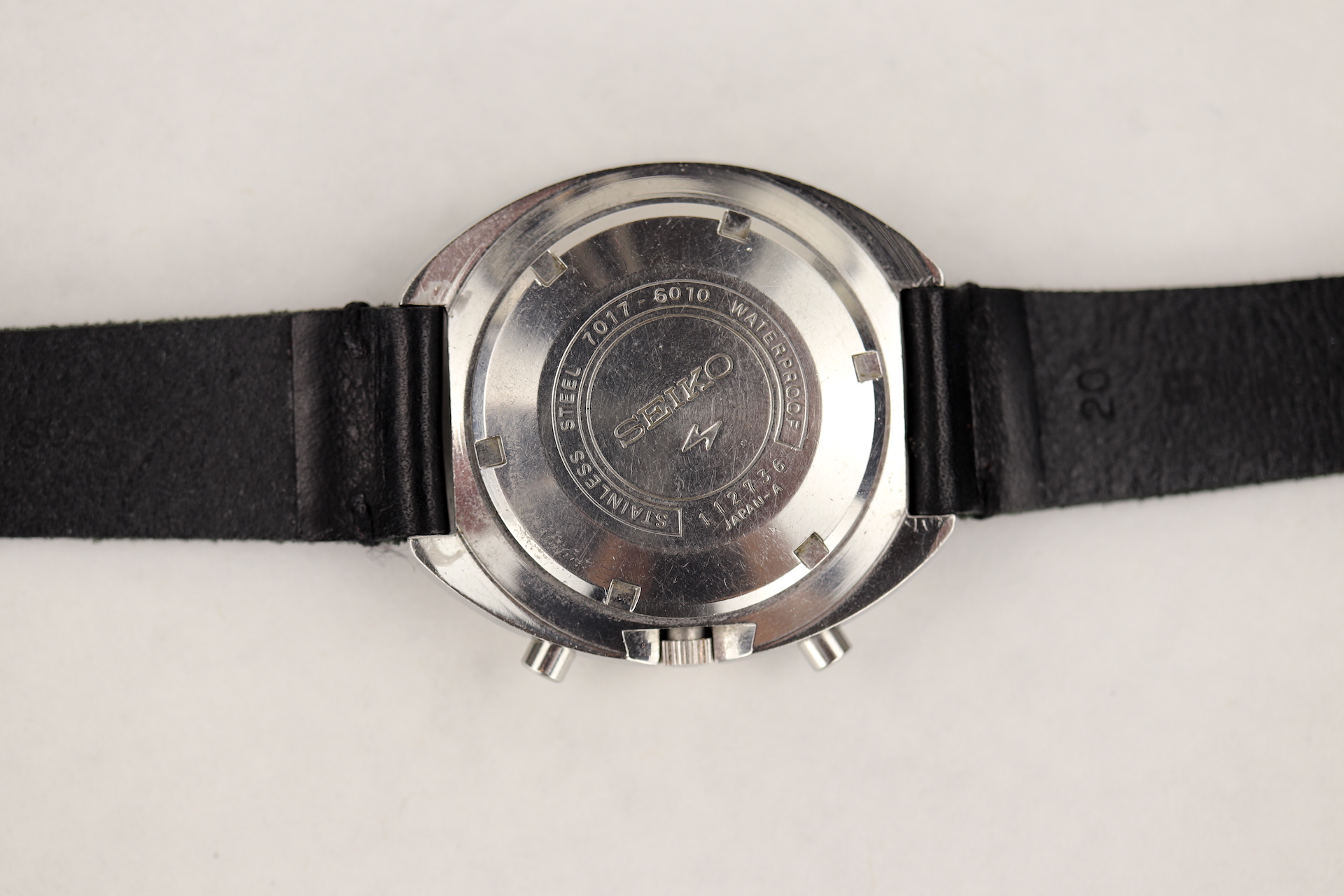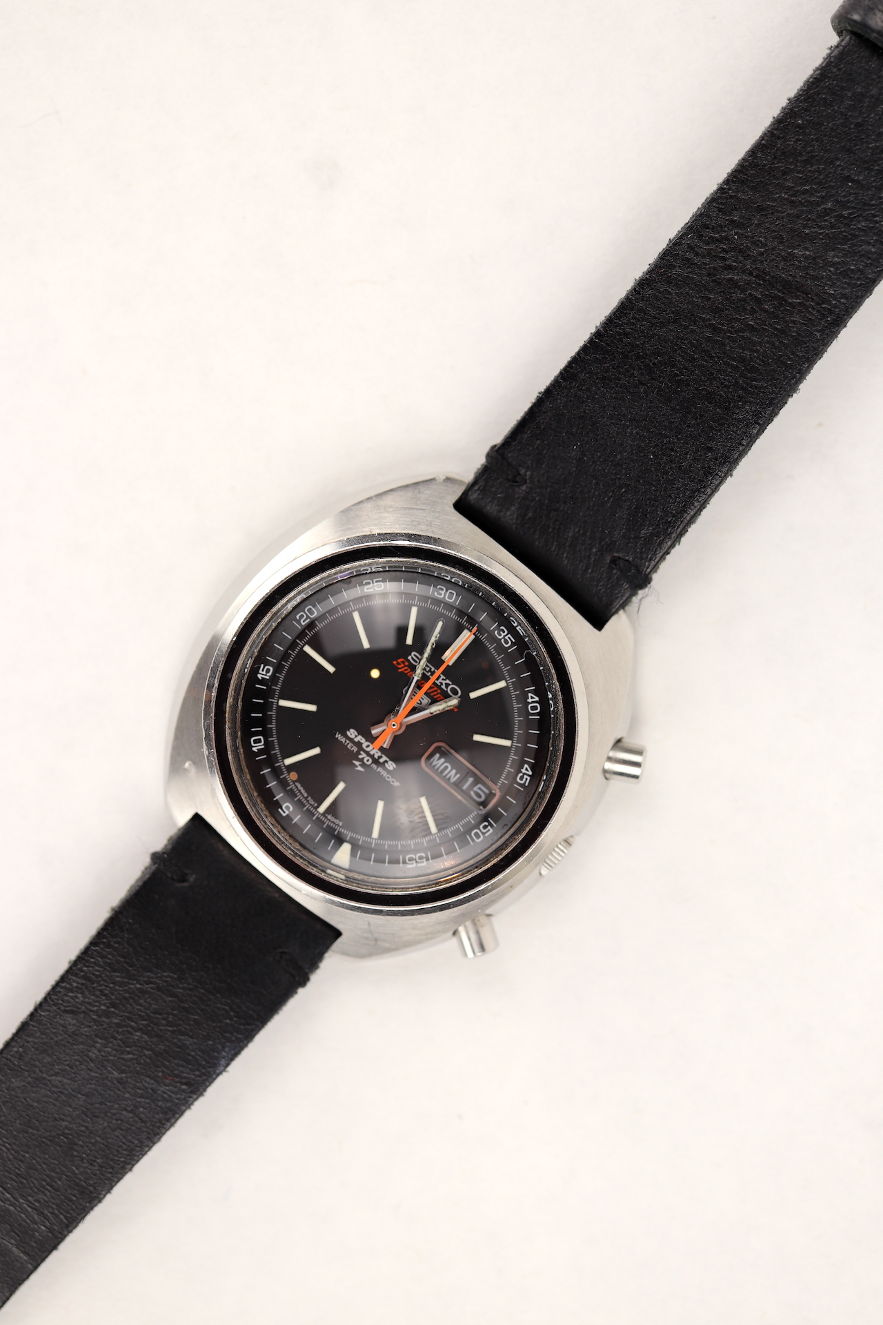 ·For sale, I have a Seiko 5 Sports Speedtimer 7017-6010 Chronograph Automatic. It has the Caliber 7017 which is an automatic movement. Watch has not been serviced while in my possession. It does work and keep time. Case measures 43mm. The watch comes on a leather strap.