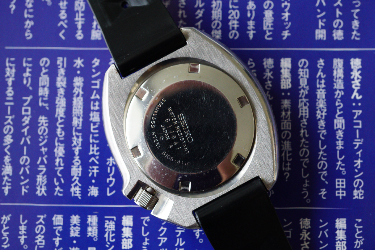 The ionic 6105! Everything is original on this one besides the crystal and the strap. The watch has a new sapphire crystal installed. The case has some nicks and scratches. The bezel rotates both ways and clicks firmly. Service history unknown. The crown locks as it should. The watch comes with it's original strap and crystal.