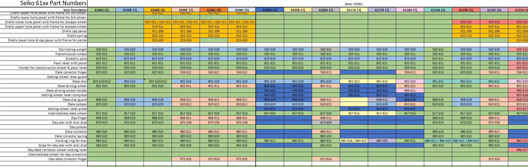 ·I'm hoping someone here can help me or can point me in the right direction. I am in need of a complete automatic works for a Seiko 6106B movement as the one I had got miss placed somehow. If someone has a complete works or a donor movement that's not running ,but has a good automatic works, and is able to part with it, please let me know. Or, if there is a works from another 61xx series movement that will fit, please let me know.