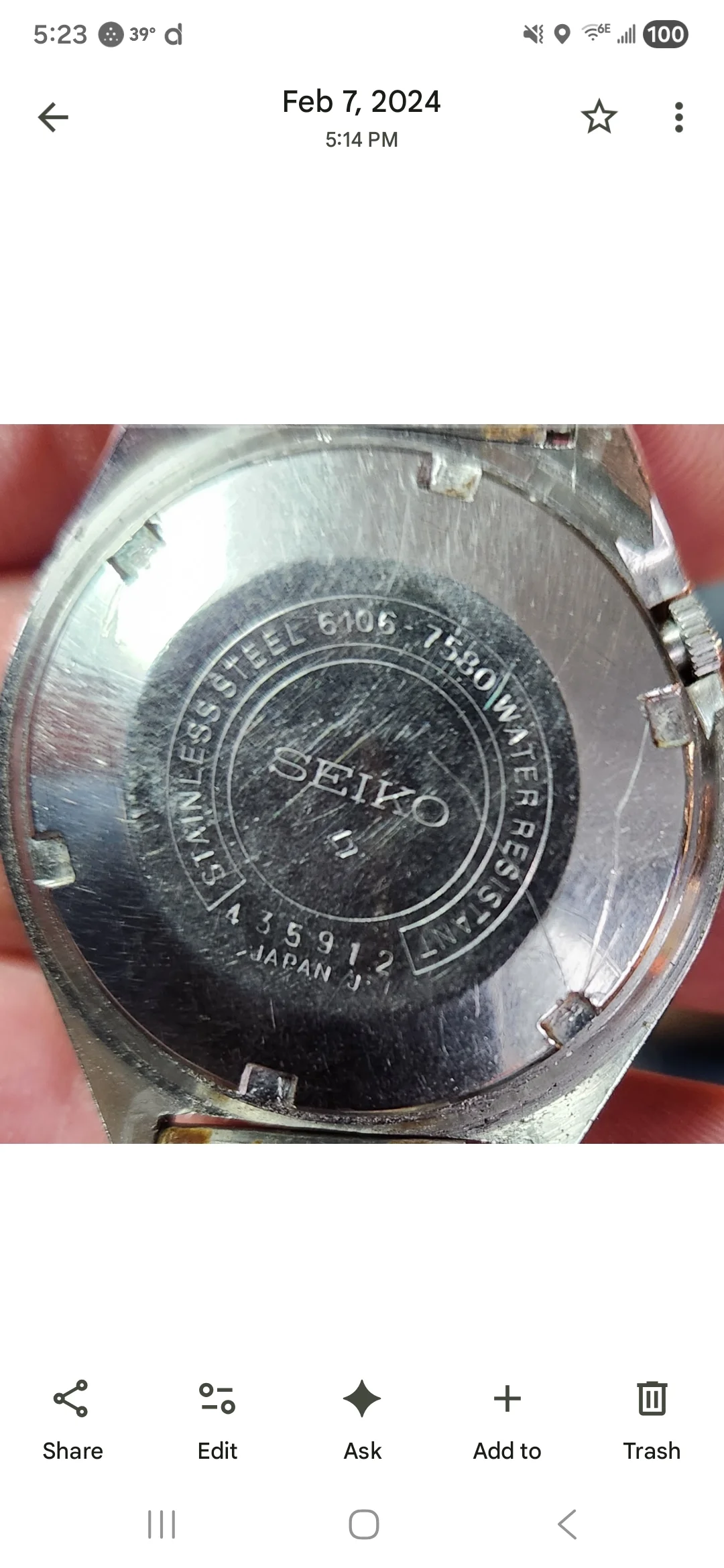 Here is a photo of the dial and case back.