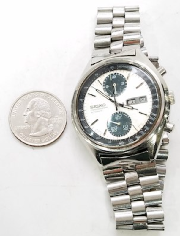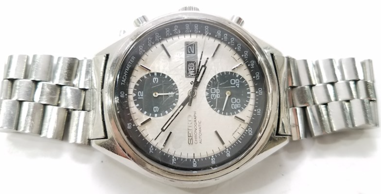 I have been told all the Seiko experts reside here. I have tried to do as much research as I can, however, due to the poor quality pics I believe that I need a more trained eye to confirm the authenticity of this Seiko 6138-8020. Below are the pictures. Unfortunately, i can not obtain better pics due to nature of sale. I am concerned that the left edge of "seiko" "chronograph" "automatic" may be slightly off of straight. Additionally, it is difficult to tell if the "A" in Japan as the correct flat top. I am also having a difficult time determining if inside of the date cutout are painted or not. Do the sub dial hands look in worse shape than rest of dial and hands?