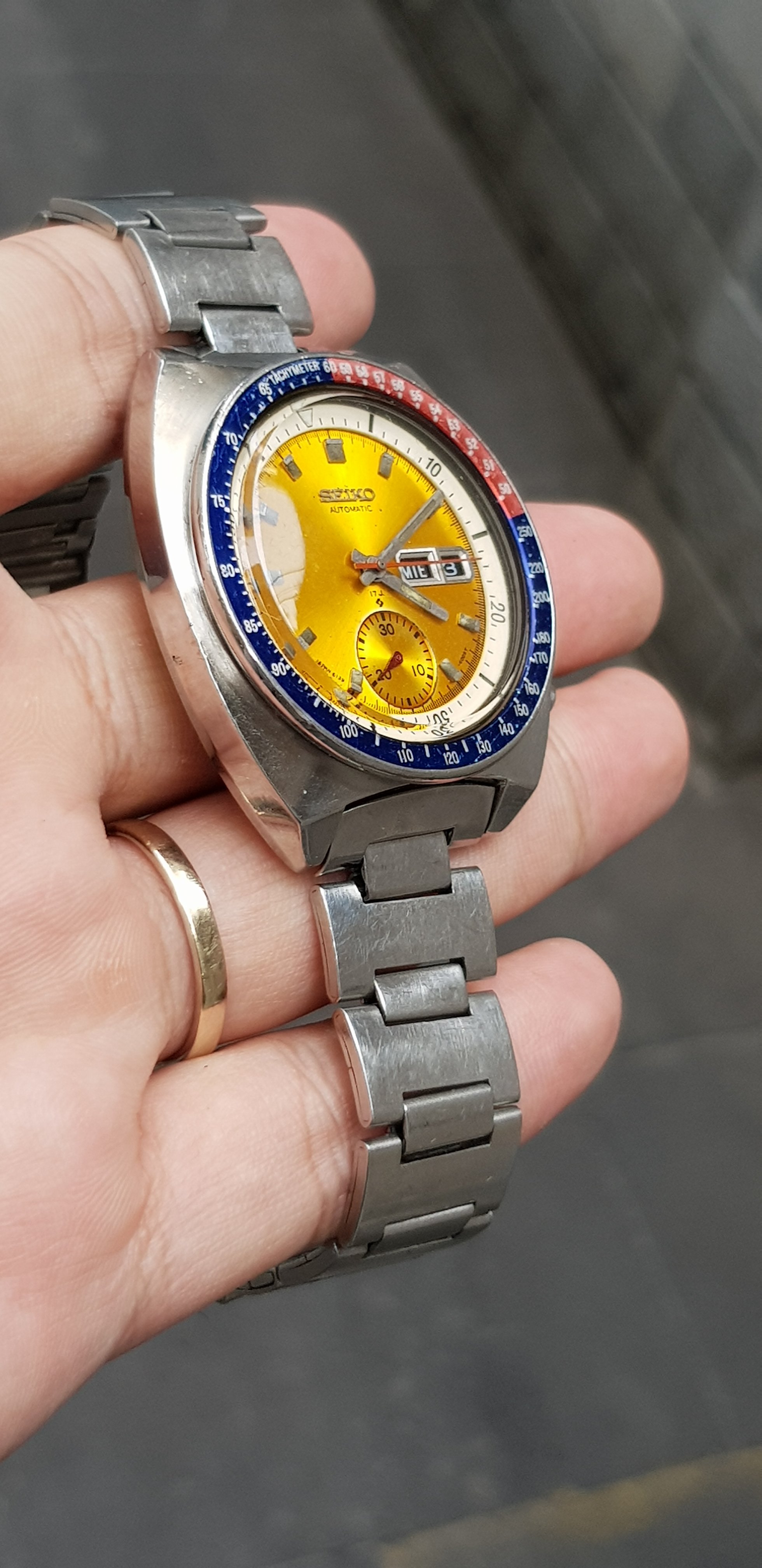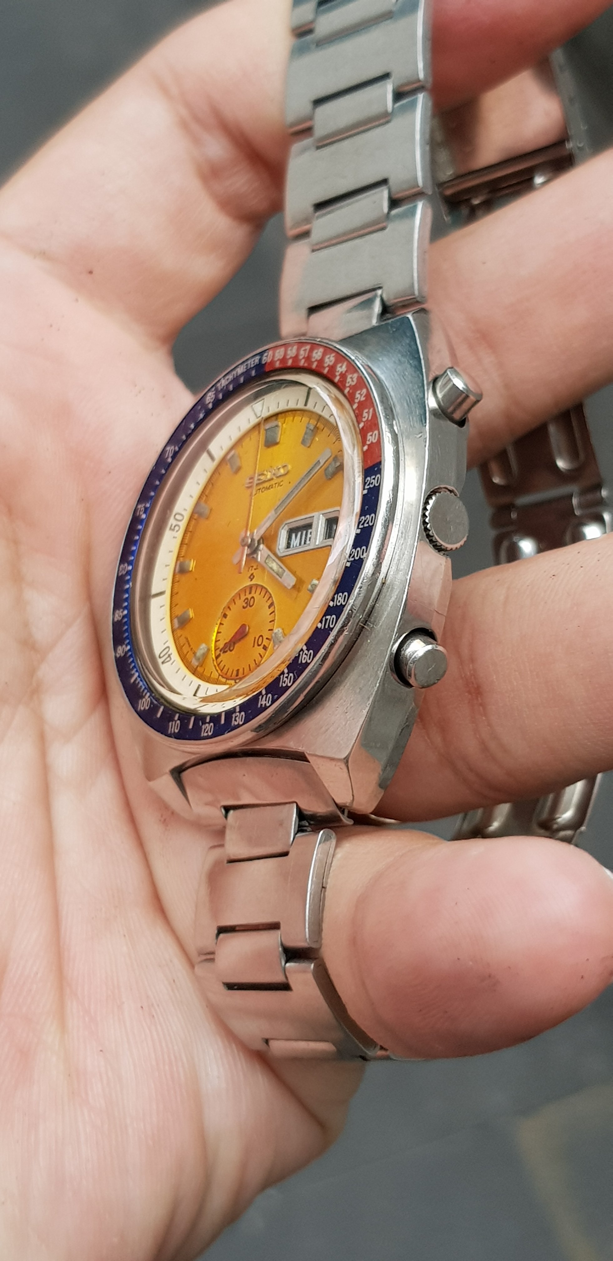 This watch needs no introduction so I leave the pictures self explain the condition. The movement will needs a good cleaning since pushers are very hard so I leave new owner to decide. All original I suppose except the H link bracelet I cant confirm if authentic or not since the clasp states HK 😀