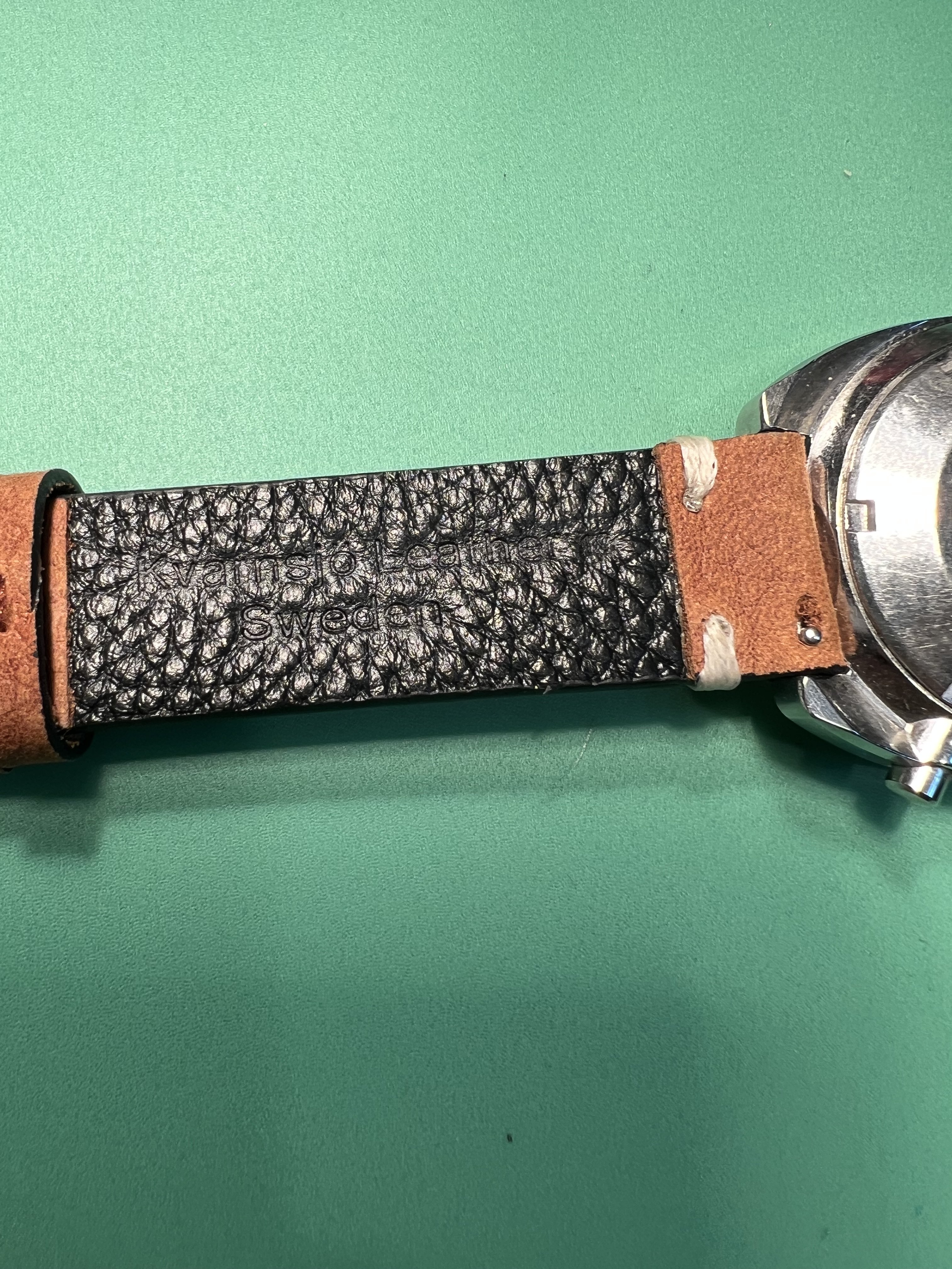 BRACELET/STRAP: New Kvarnsjo Vintage leather strap (19mm) with quick change integrated springbars, from Sweden (CNS straps)