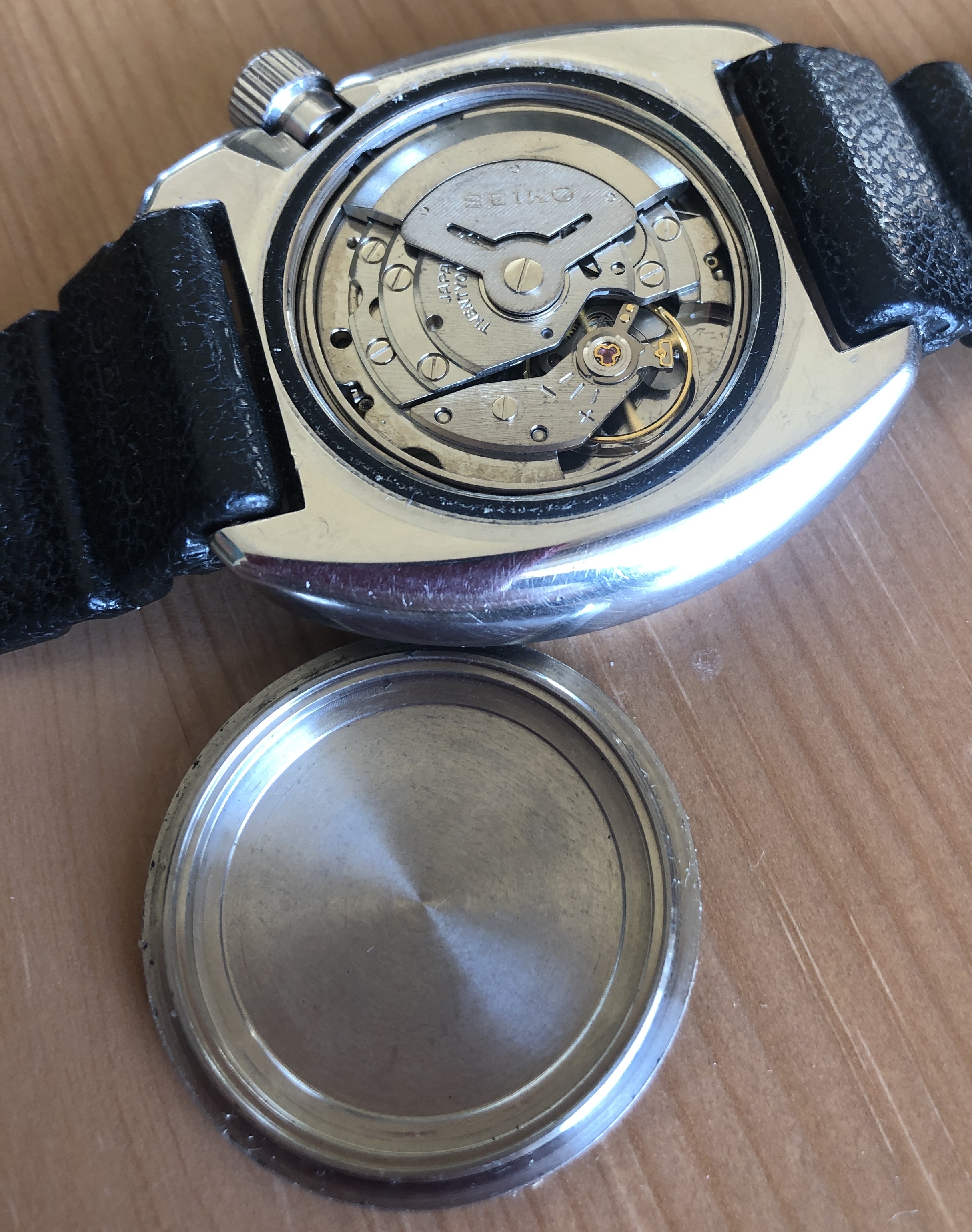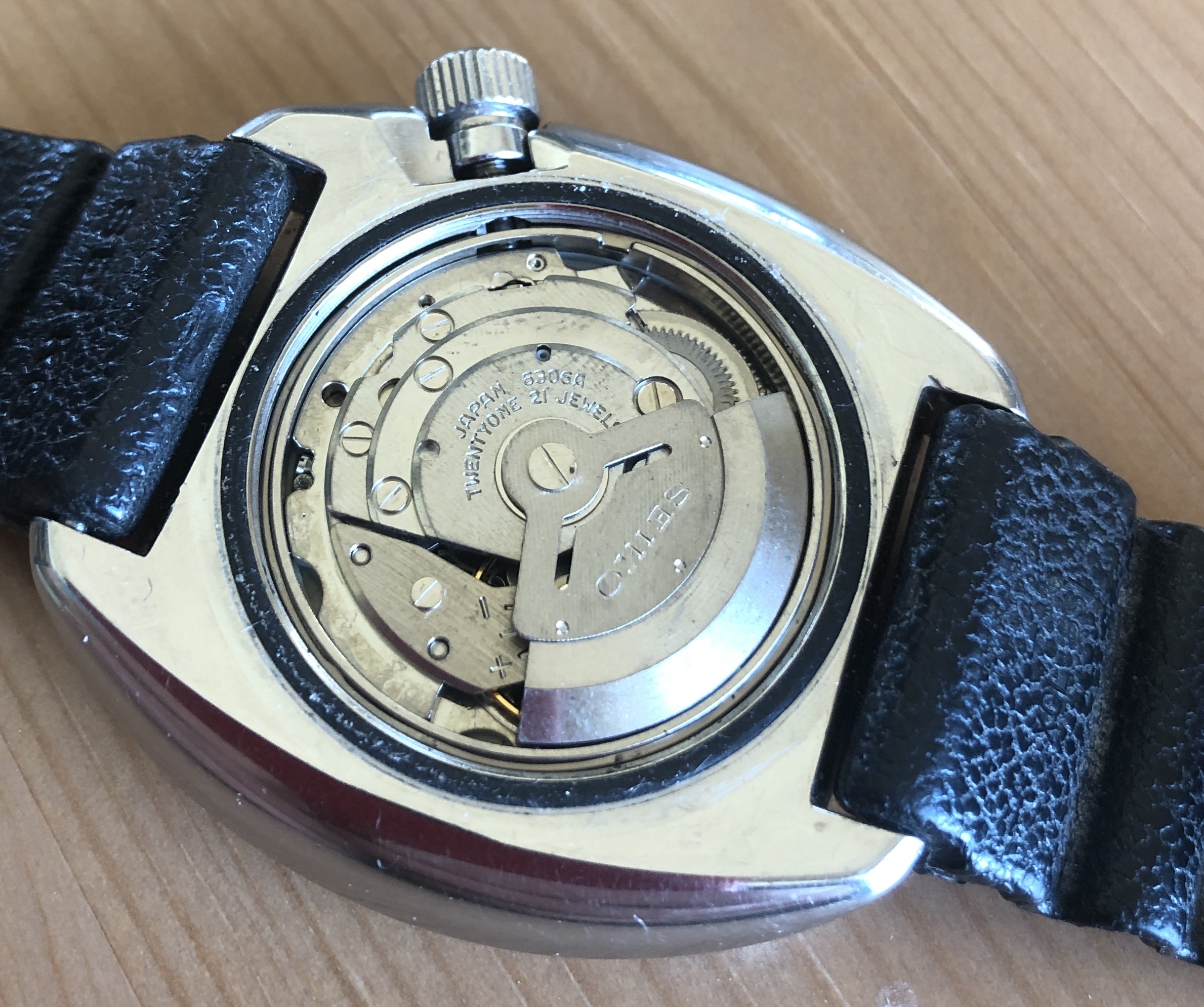 The Quickset day/date feature works correctly via the crown. Daywheel is in English and Kanji. Both day and date turn over smoothly at midnight as expected. The movement hacking mechanism also works correctly and is a neat feature of the 6306. The screw-down crown engages the winding tube and takes 3+ turns to seat it home.