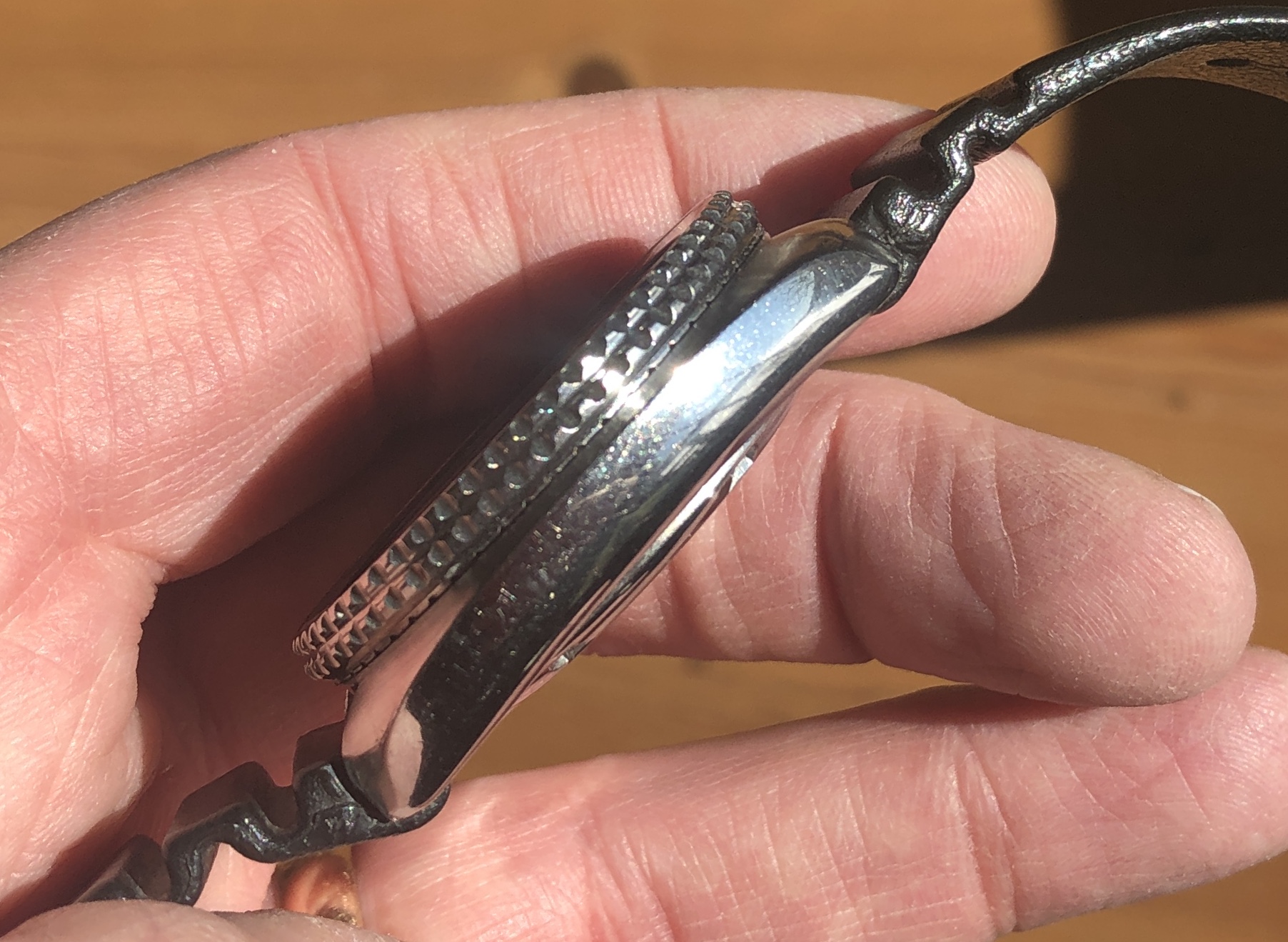 The case and caseback are both in fine shape. Both have minor swirls and dings as shown.
