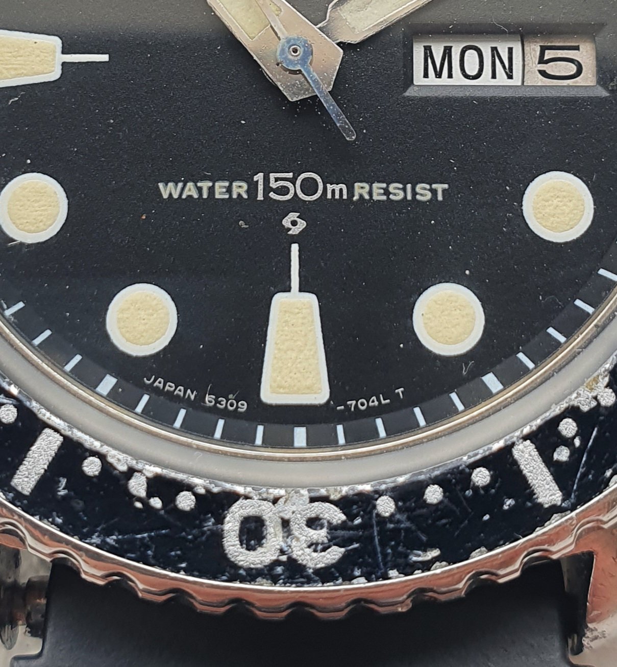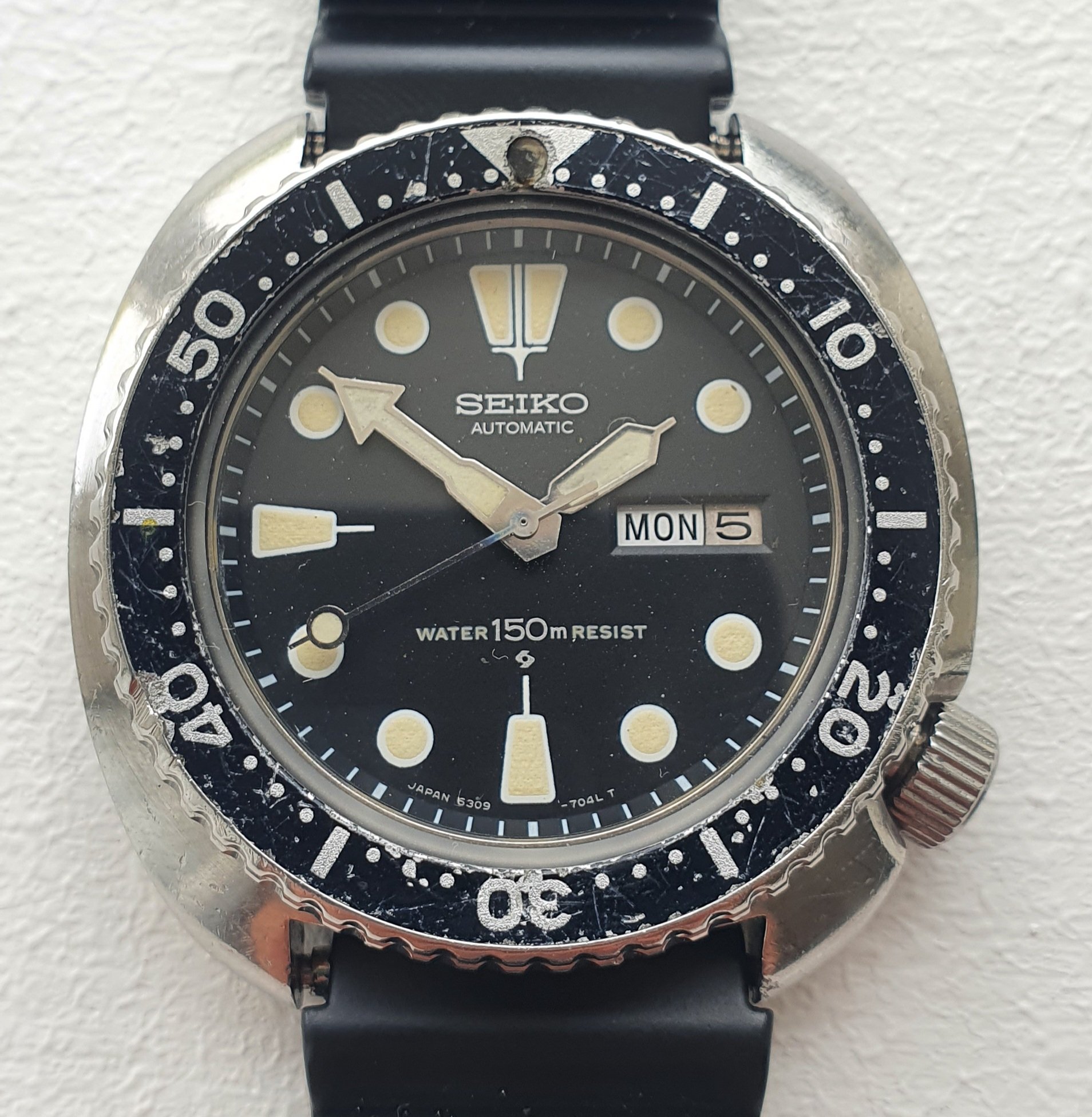 I've managed to aquire this 'Turtle' which I'm currently in the process of repairing. It came with a 'stuck' bezel, which turned out to be a cheap crystal replacement which was not fitted correctly, jamming up the bezel.