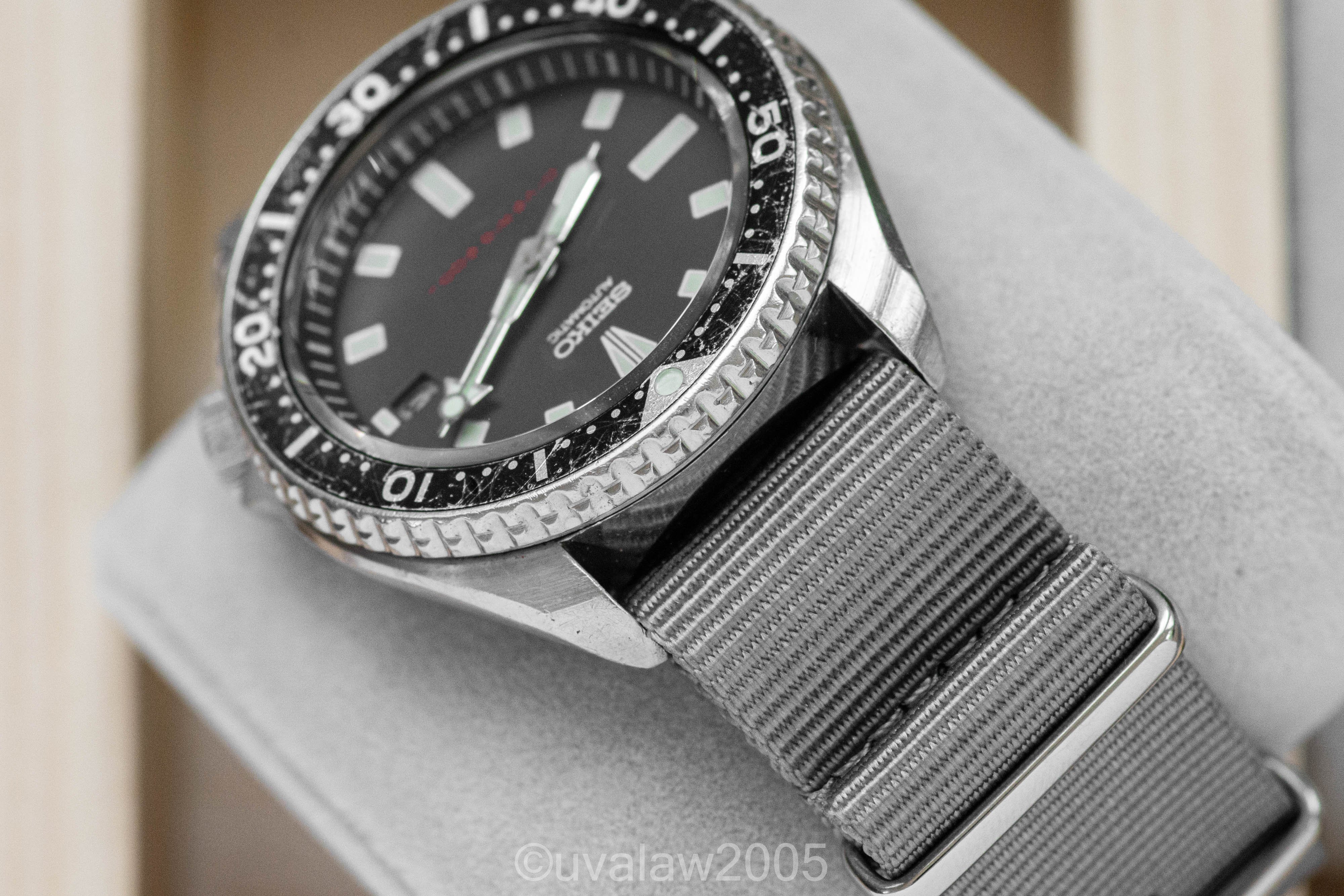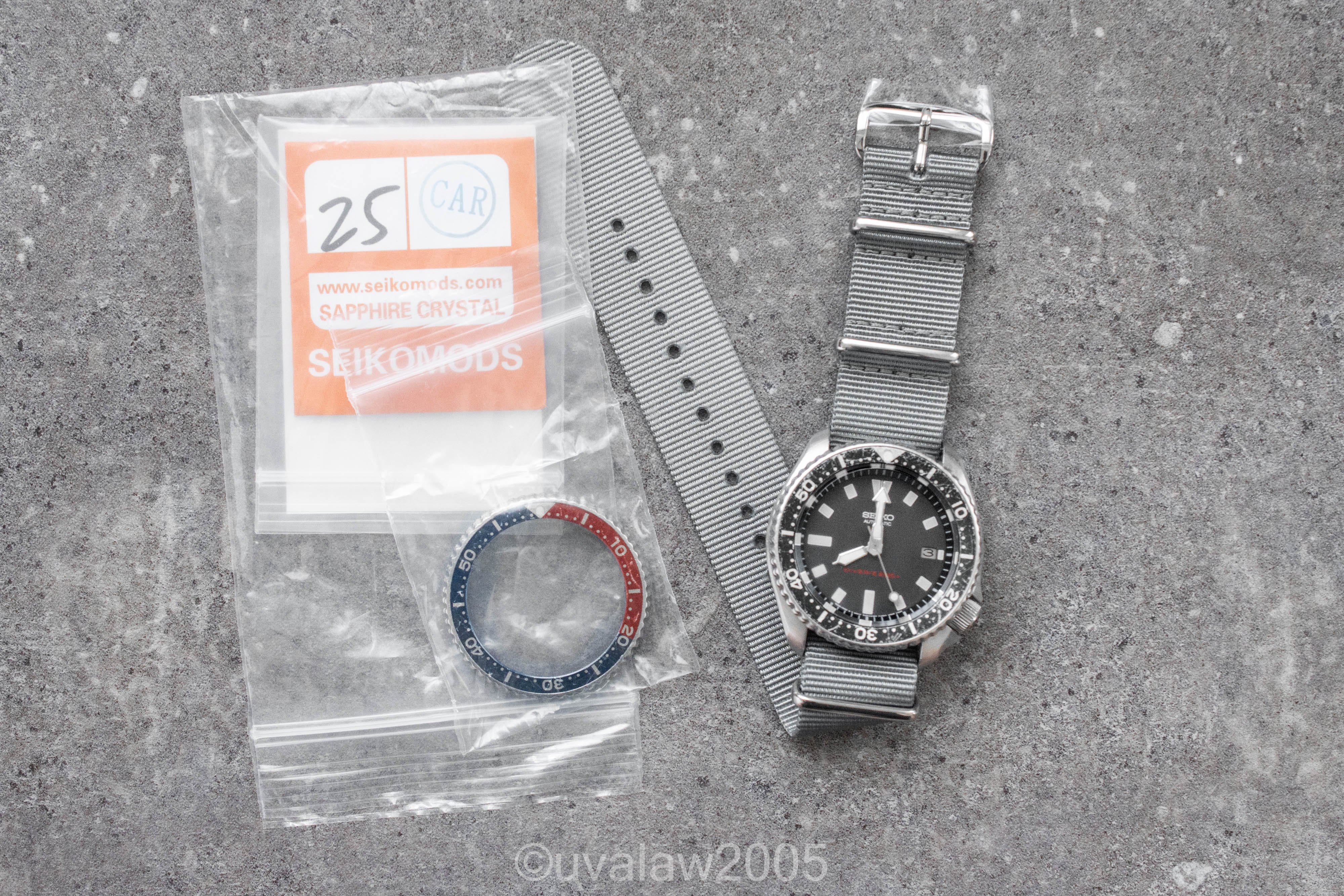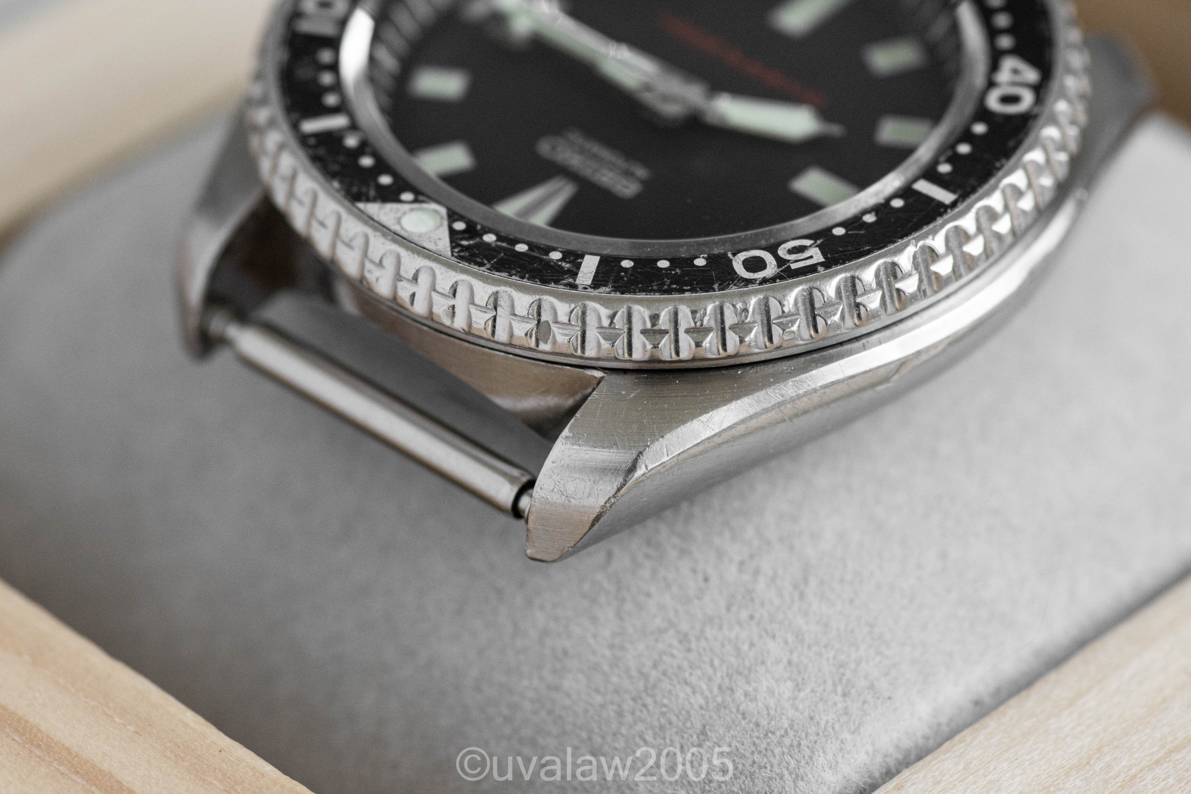 This 7002 has been upgraded with a flat sapphire crystal with clear AR, a new bezel click spring, and fresh gaskets. Movement was serviced by The Hobby Horologist. Running +/- 10s/day (as with any vintage watch, YMMV).