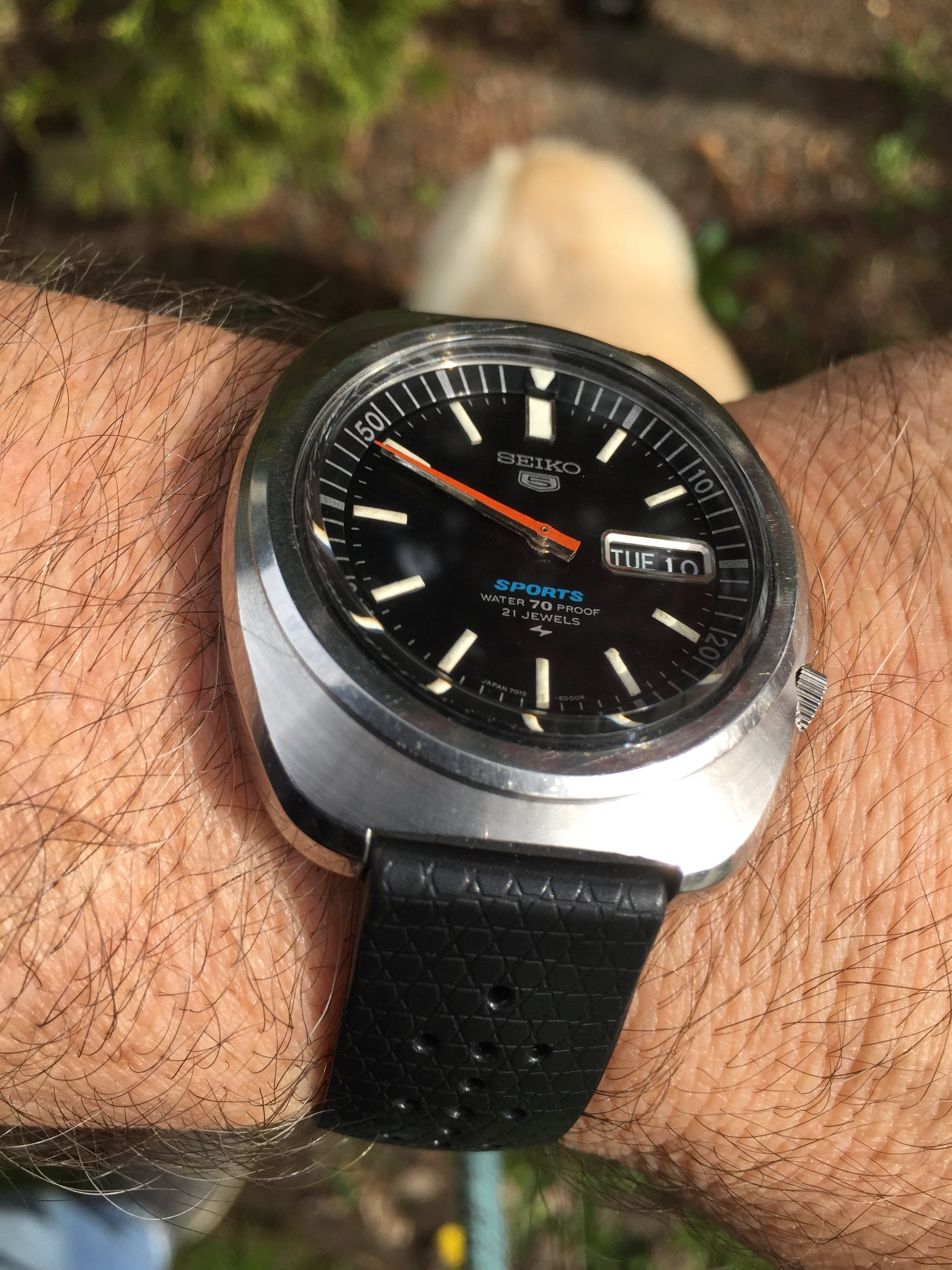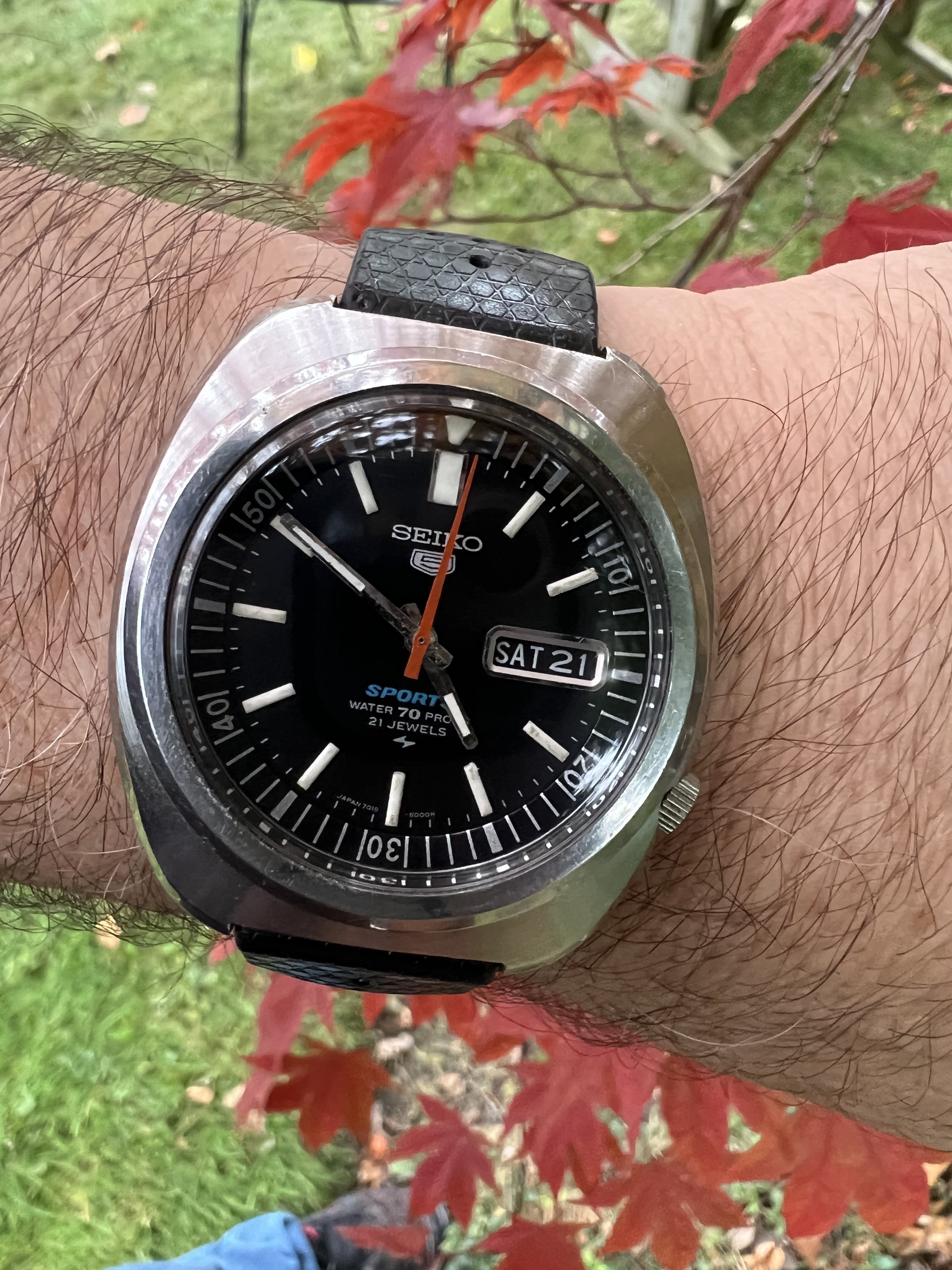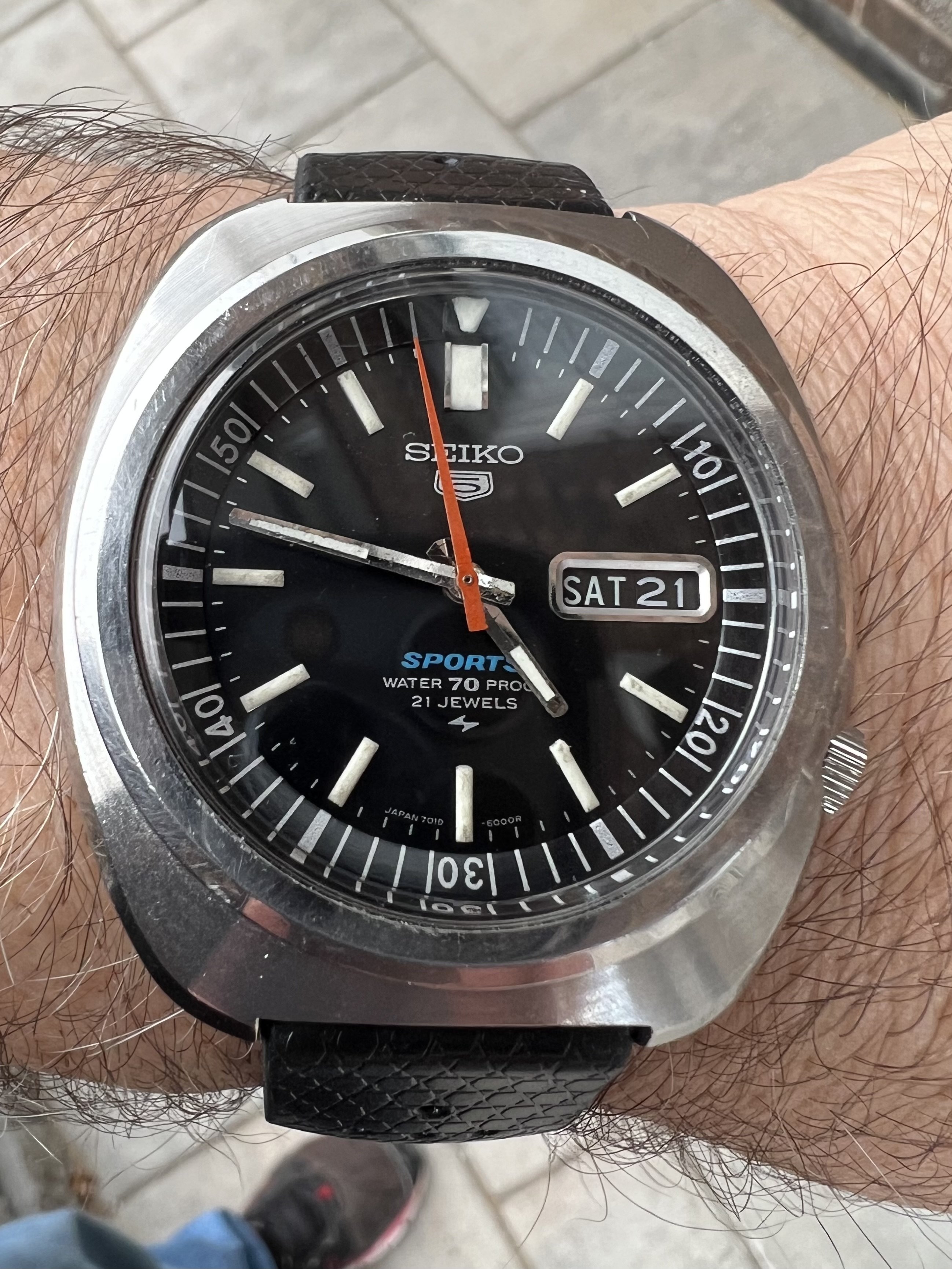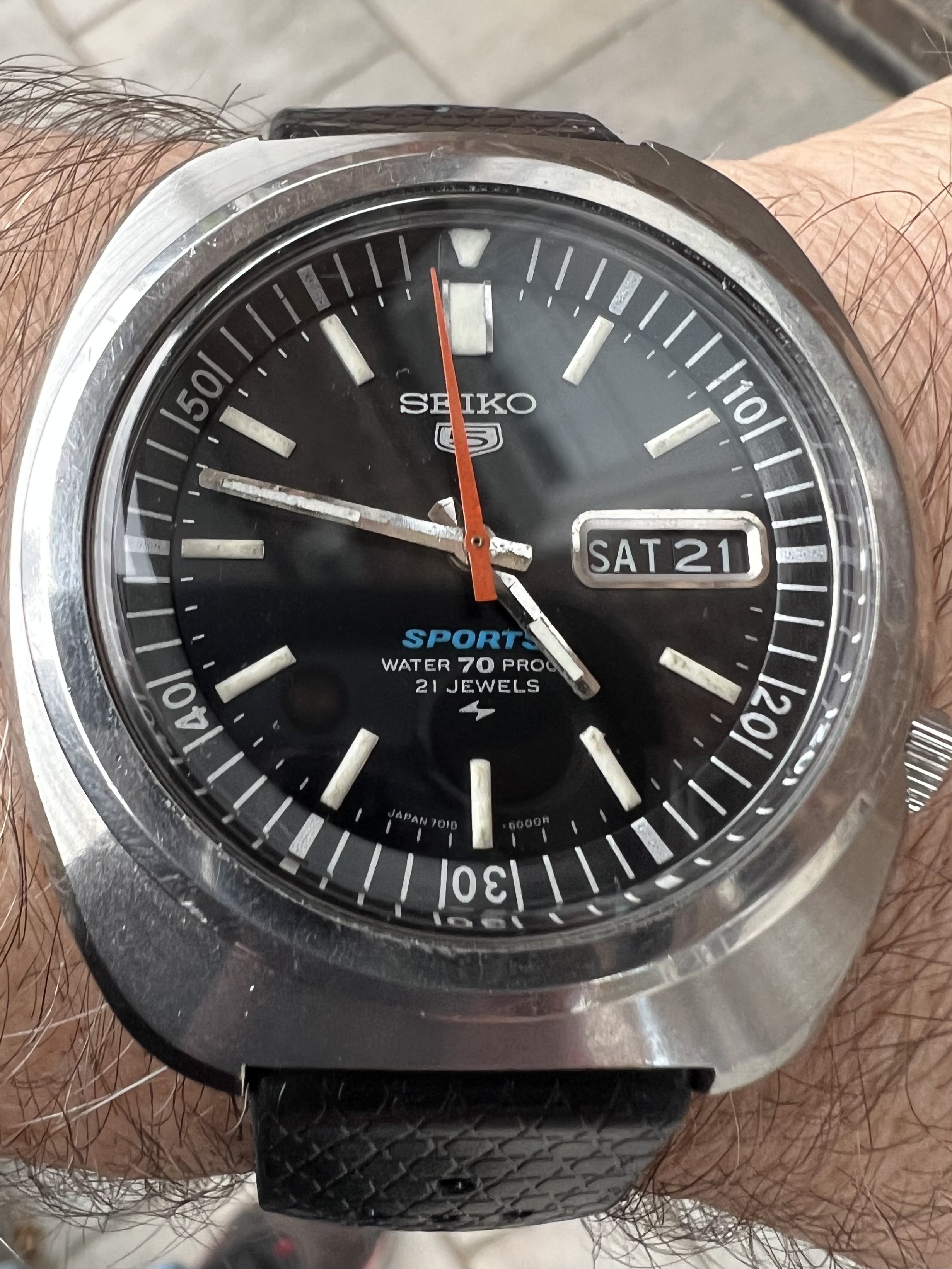 ·Seiko 5 Sports Automatic Diver 7019-6000, JDM piece, from Nov 1969, Black dial version, in overall excellent vintage condition, running well. Purchased from Hub City Vintage in November 2021, fully serviced by Seth Roberts from HCV just before purchase.