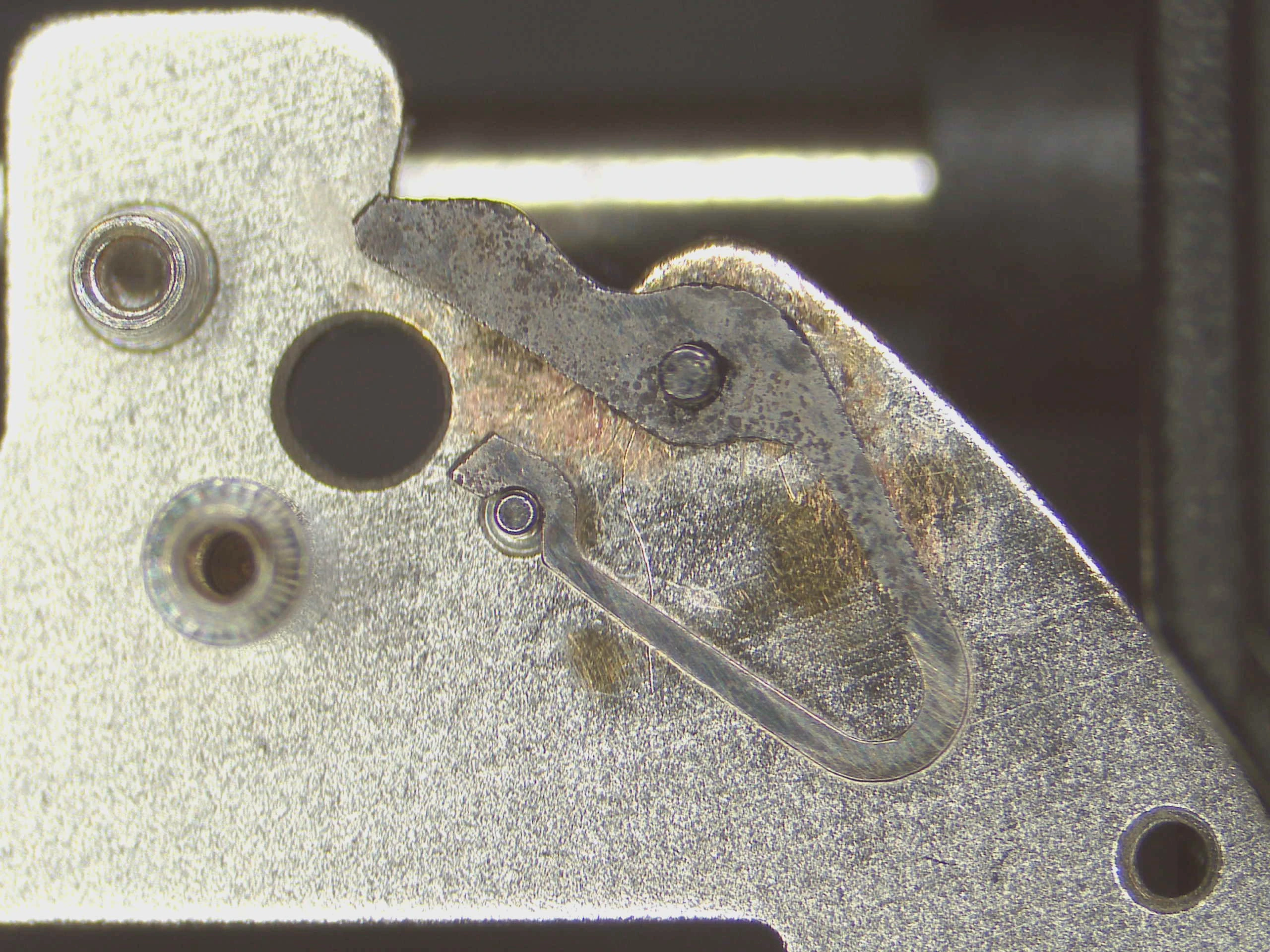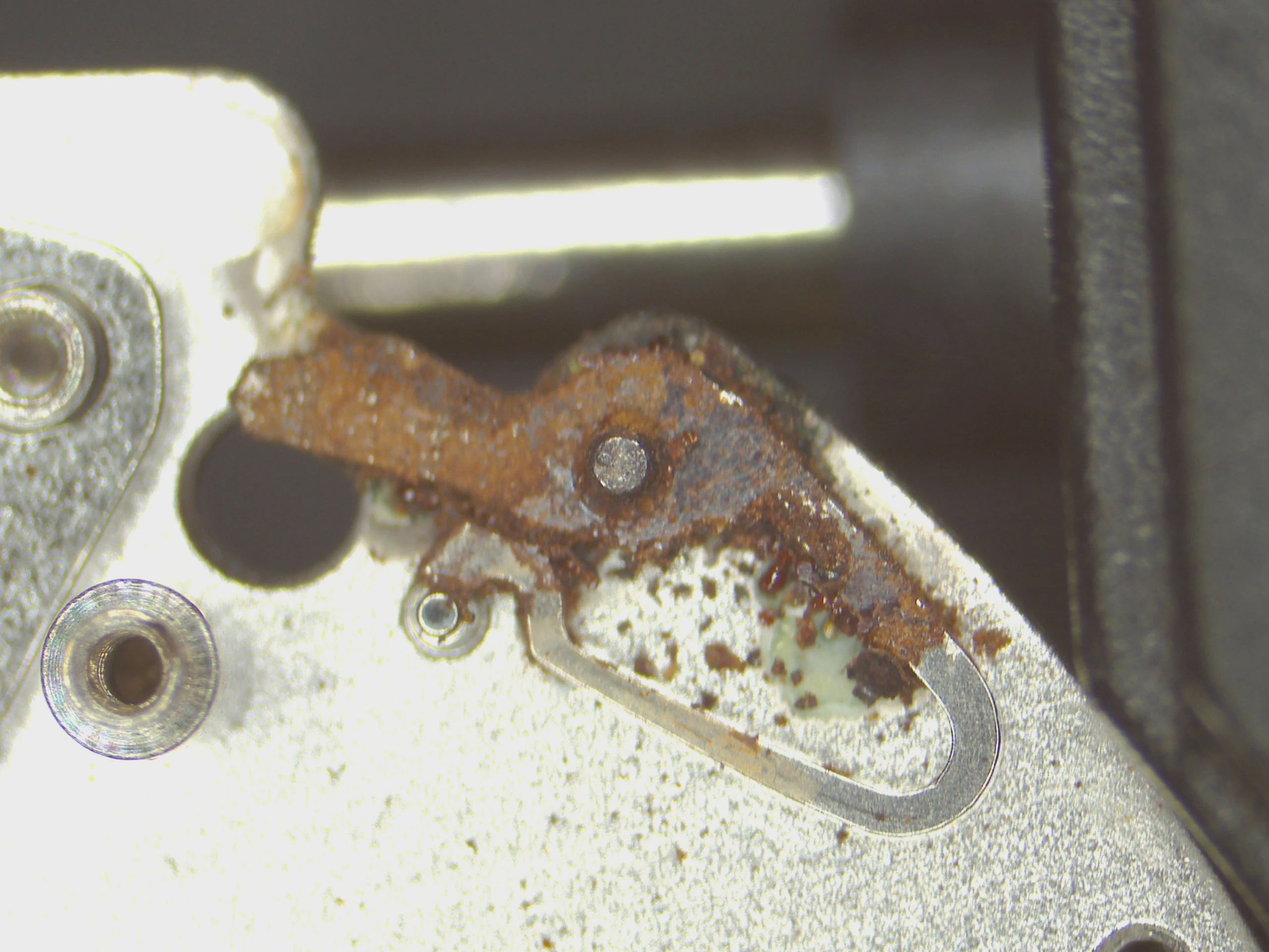 However, after opening and removing the movement and pushers, I needn't have bothered. The pusher on the left does not have any lube on it, just H2O.