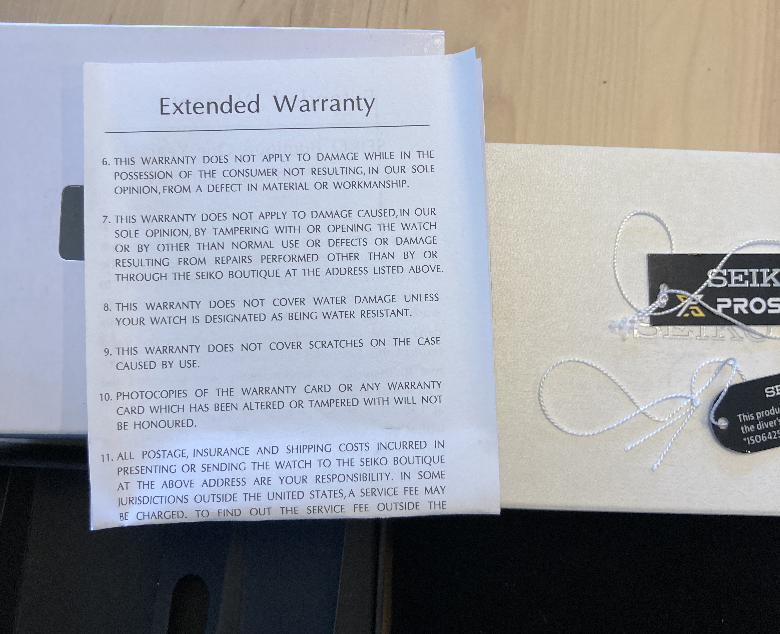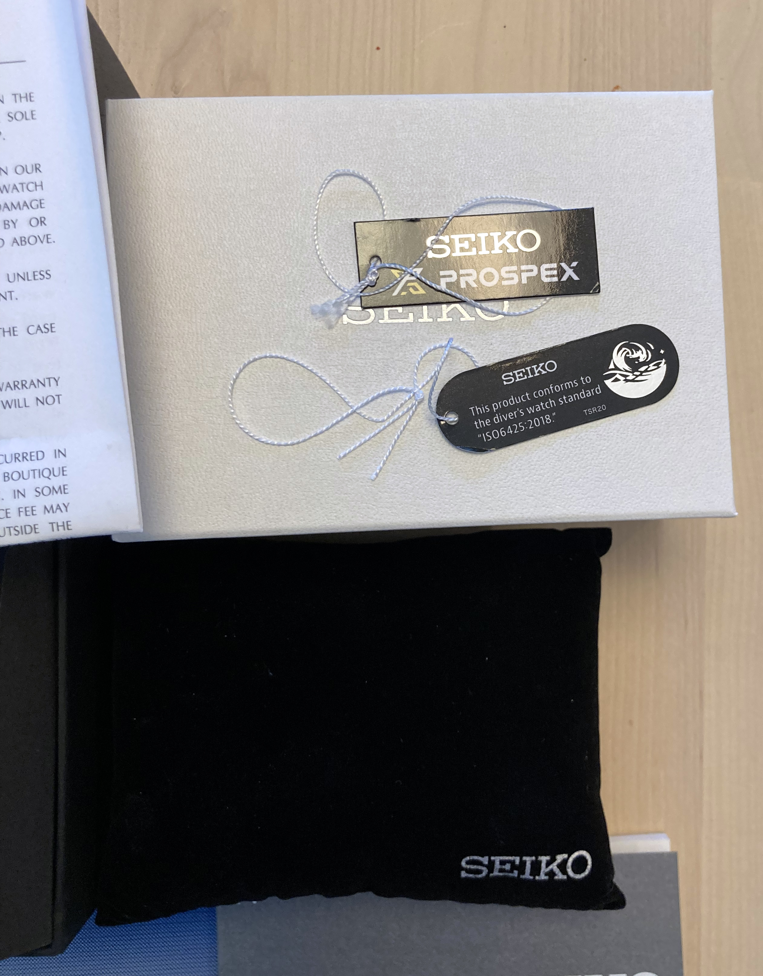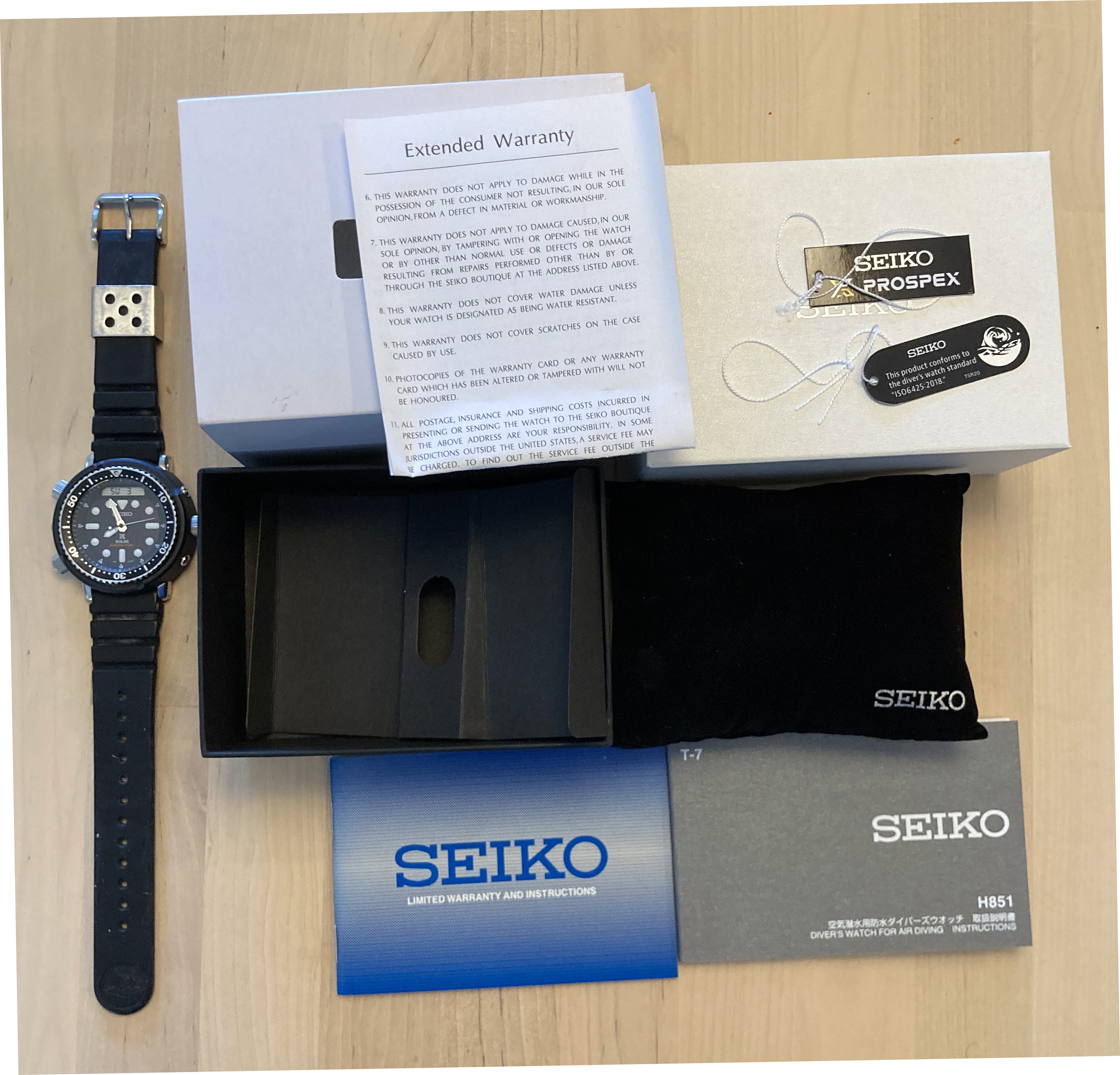 The watch is in perfect functional condition and only shows slight signs of wear on the strap. I purchased it directly from Seiko and it come with all the original items including, boxes, papers, hangtags, etc.