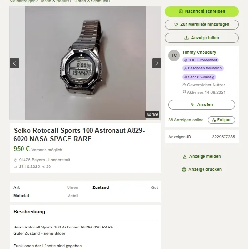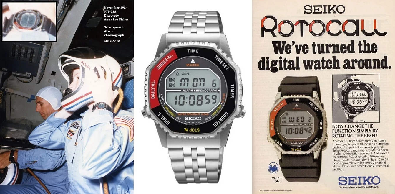 These Seiko sports alarm chronograph wrist watches could be purchased by the astronaut as Charlie Walker mentioned in an interview and these quartz watches were also used by ESA astronauts (e.g. Ulf Merbold onboard the Mir space station in 1994).
