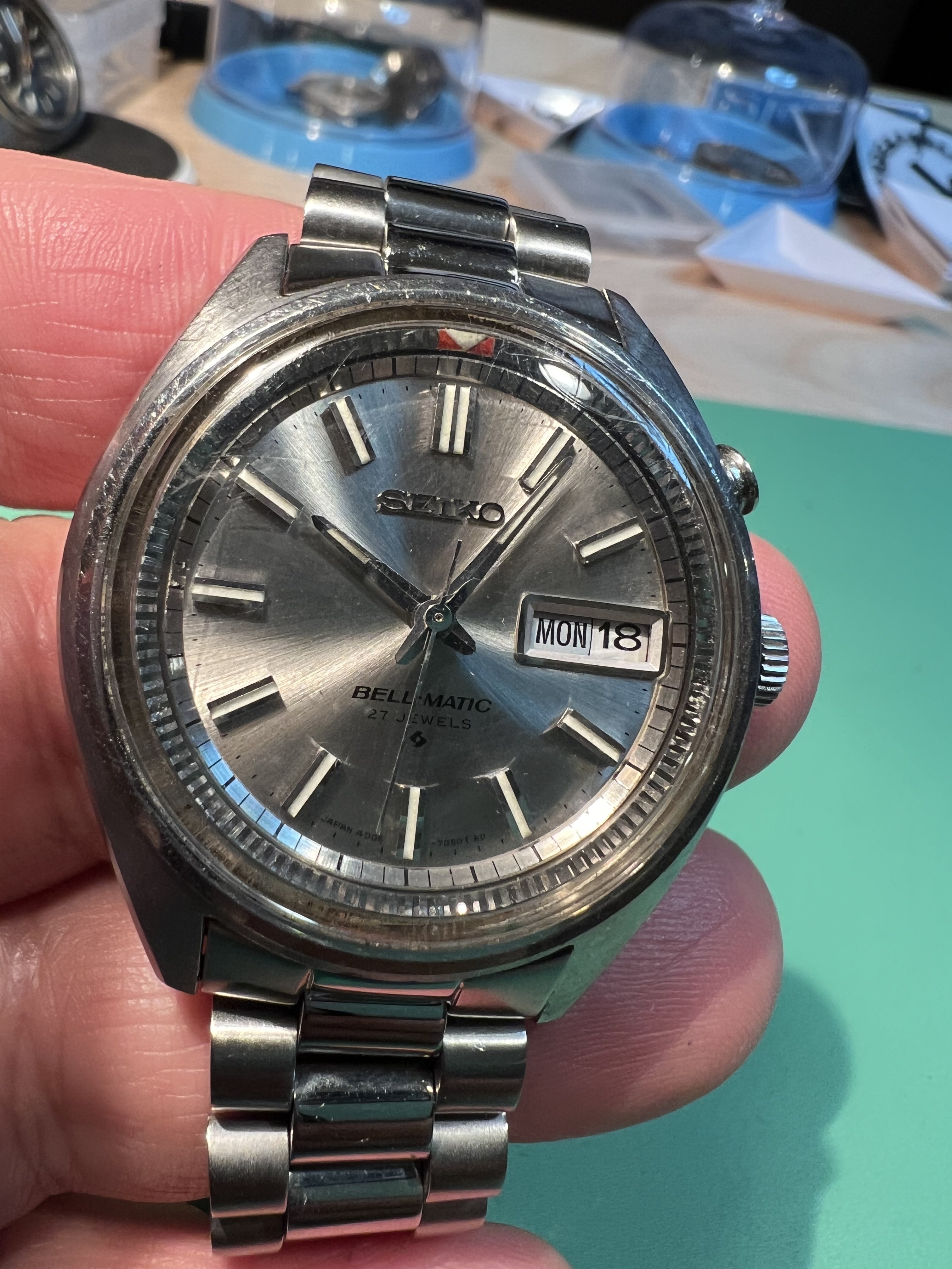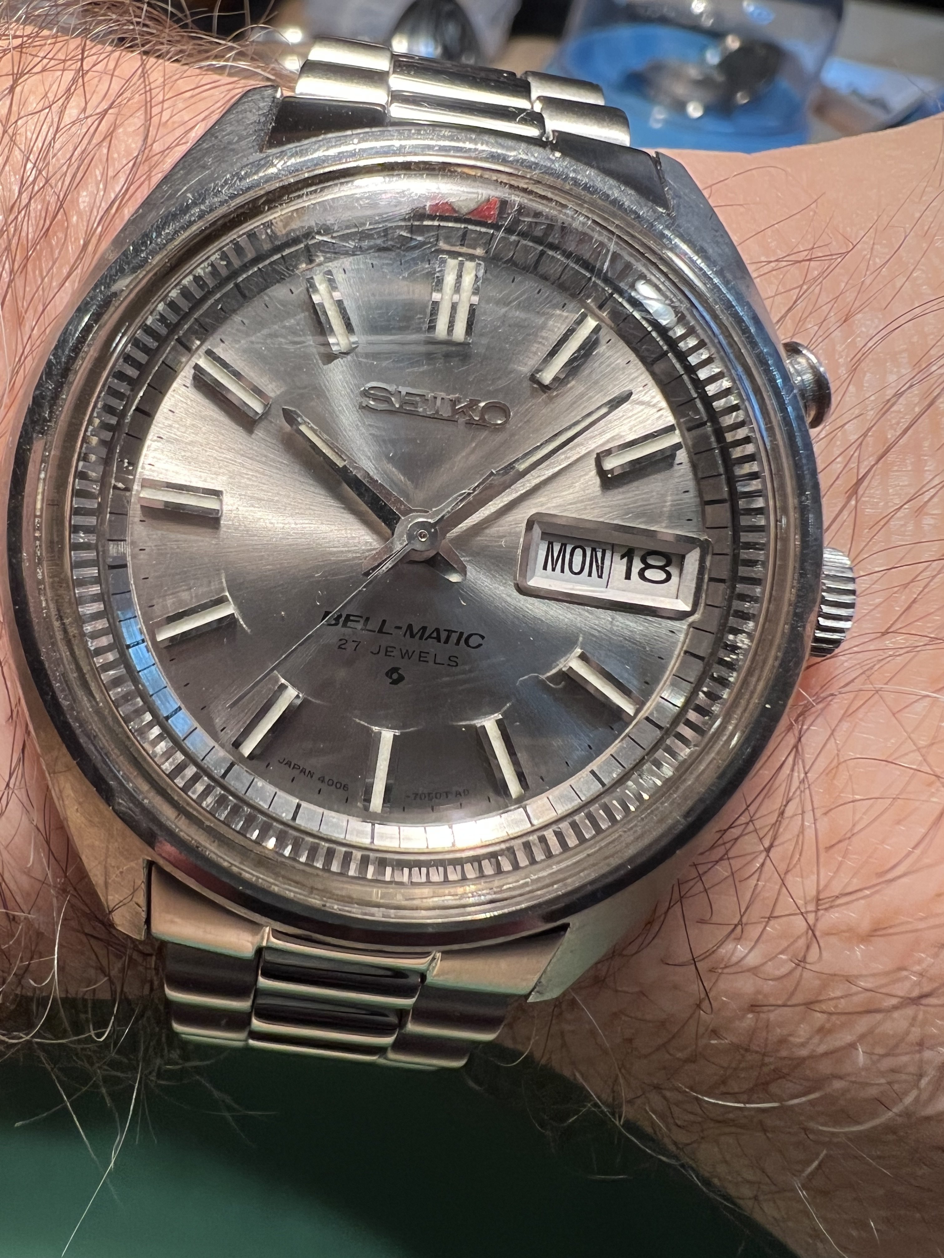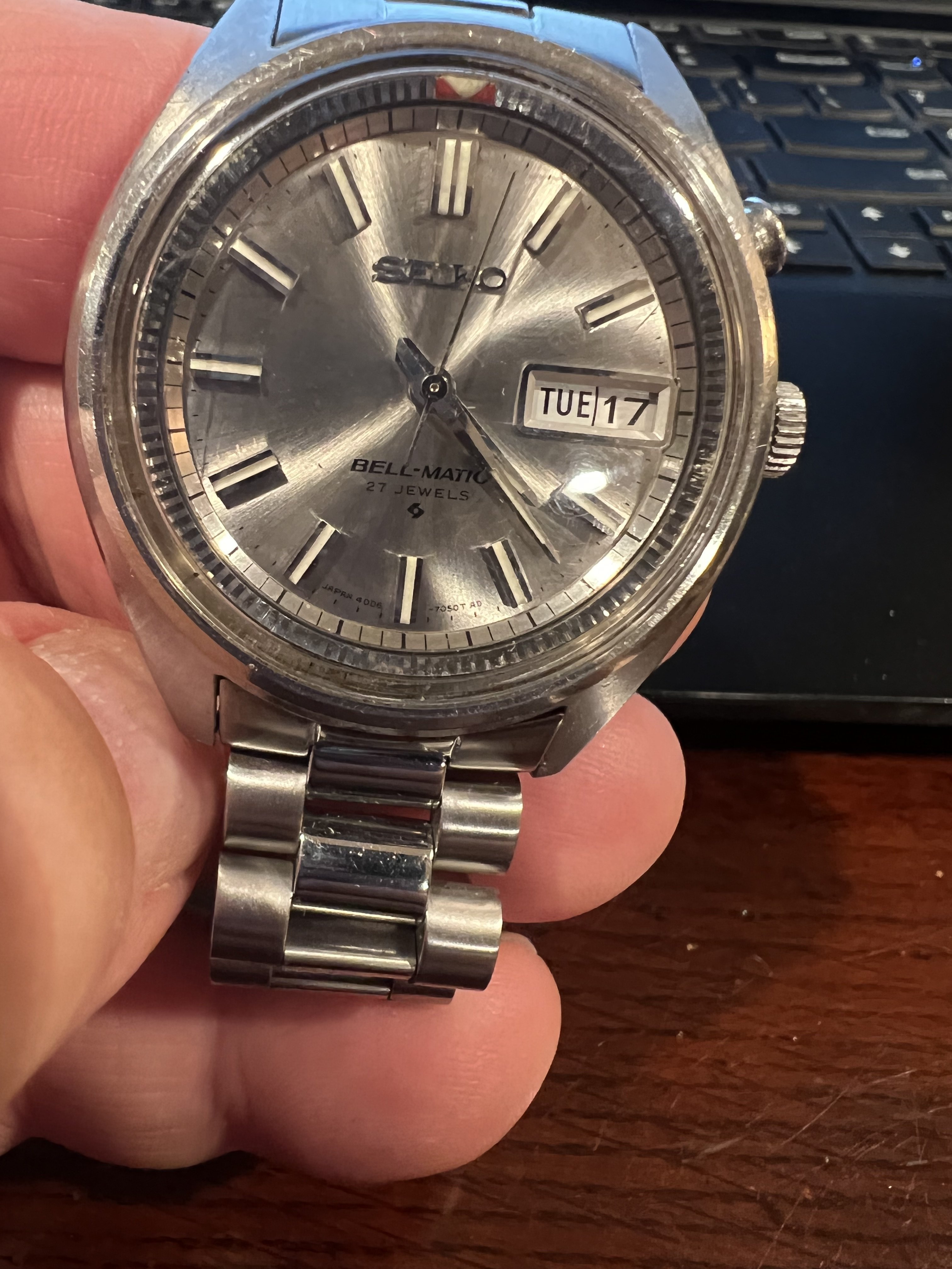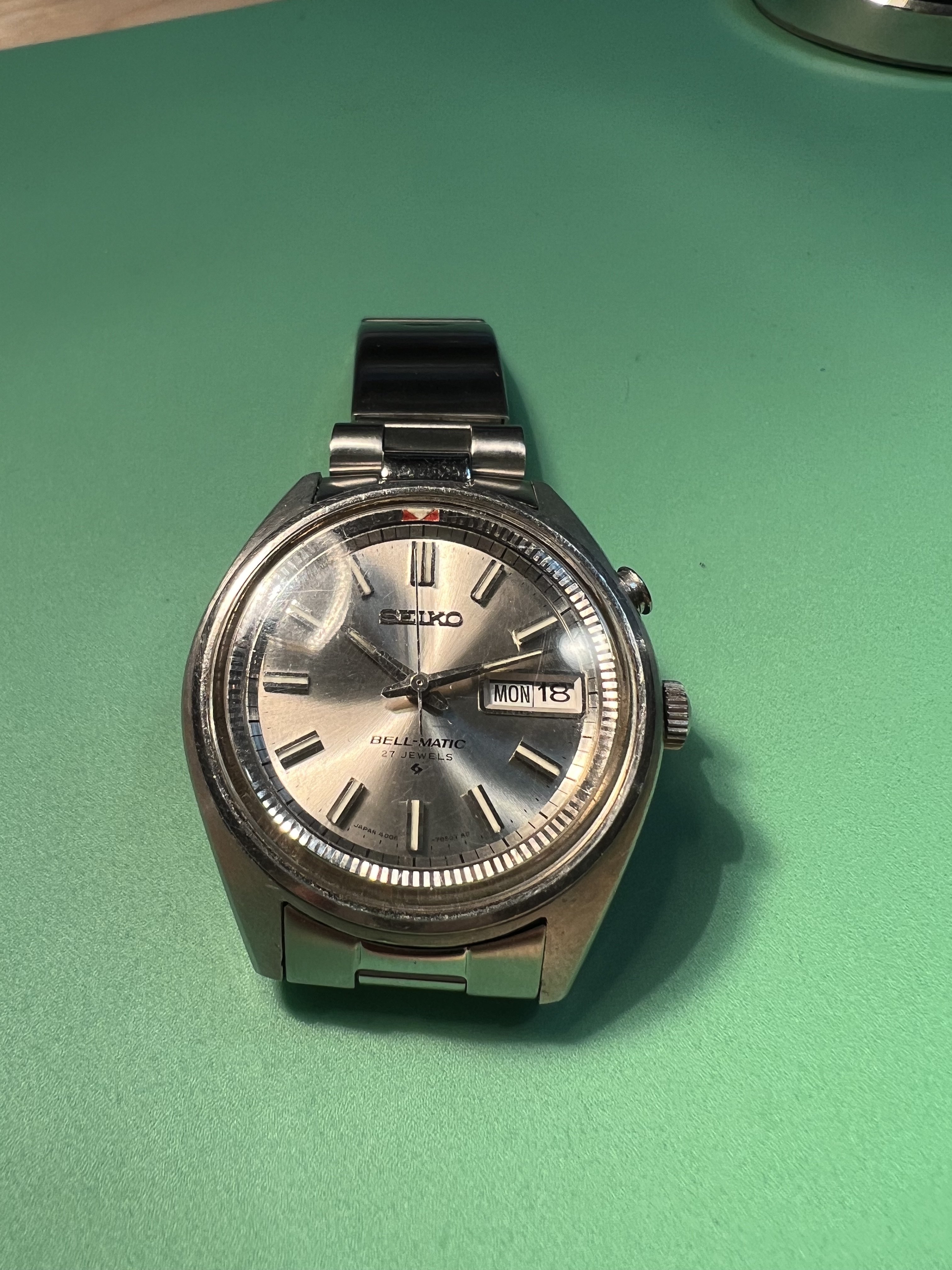 ·Seiko Bell-matic vintage Automatic 4006-7020, early JDM 27J model from 1968 with DAY DATE and ALARM functions, in good condition with silver dial, stainless steel case, in fine working condition. I have had watch since Sept 2021 and hardly worn.