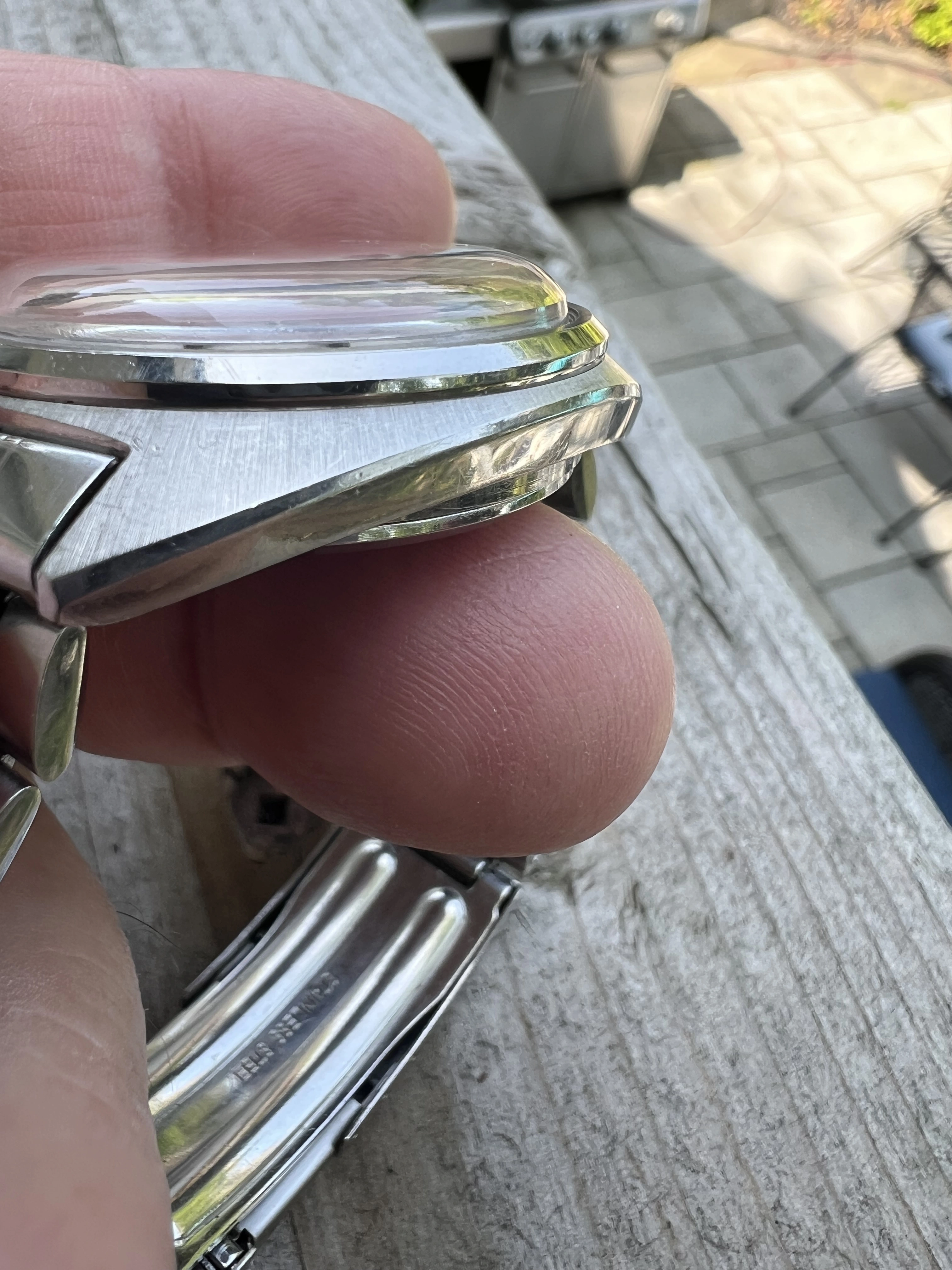 Crystal: vintage correct acrylic very clear, may be original, excellent no significant scratches