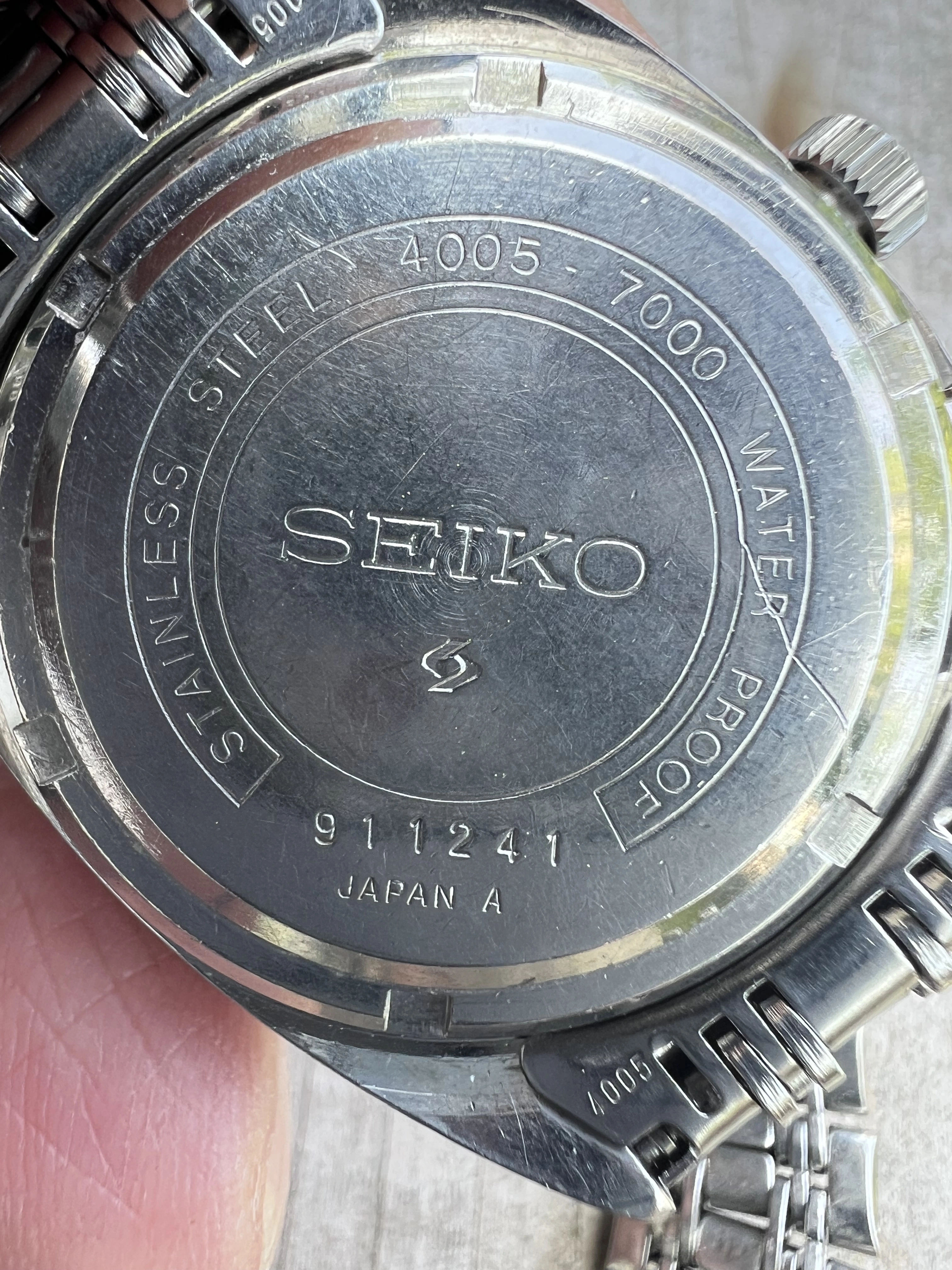 Movement: Seiko 4005A 27J functioning well, serviced prior to my purchase by seller in 2002, but no service papers.