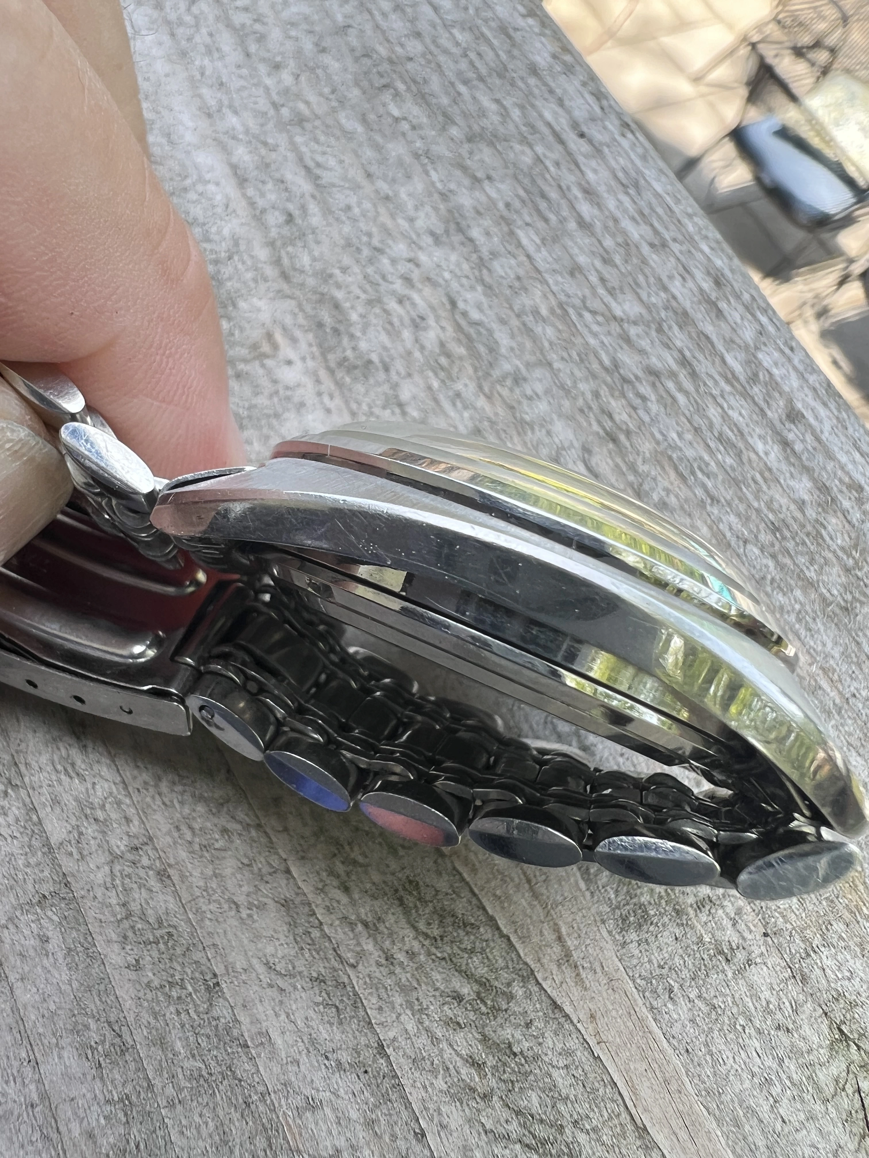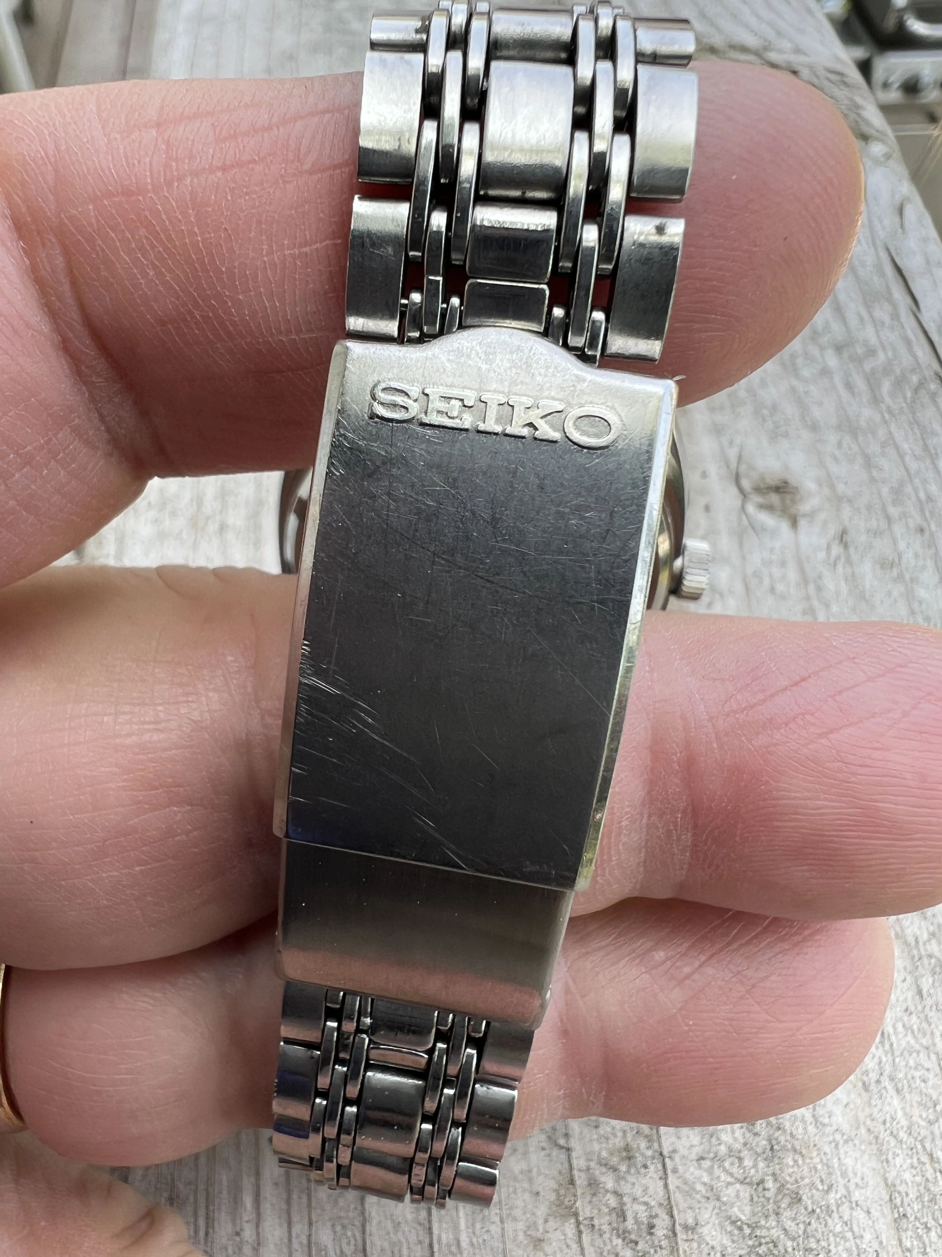 Bracelet: Original rail steel bracelet signed 4005 700 very good condition no significant stretch. Expandable link in place (easily removed if not needed) fits 8 inch wrist comfortably. Original bracelet hard to find in this condition. See catalogue photo which shows this original bracelet.