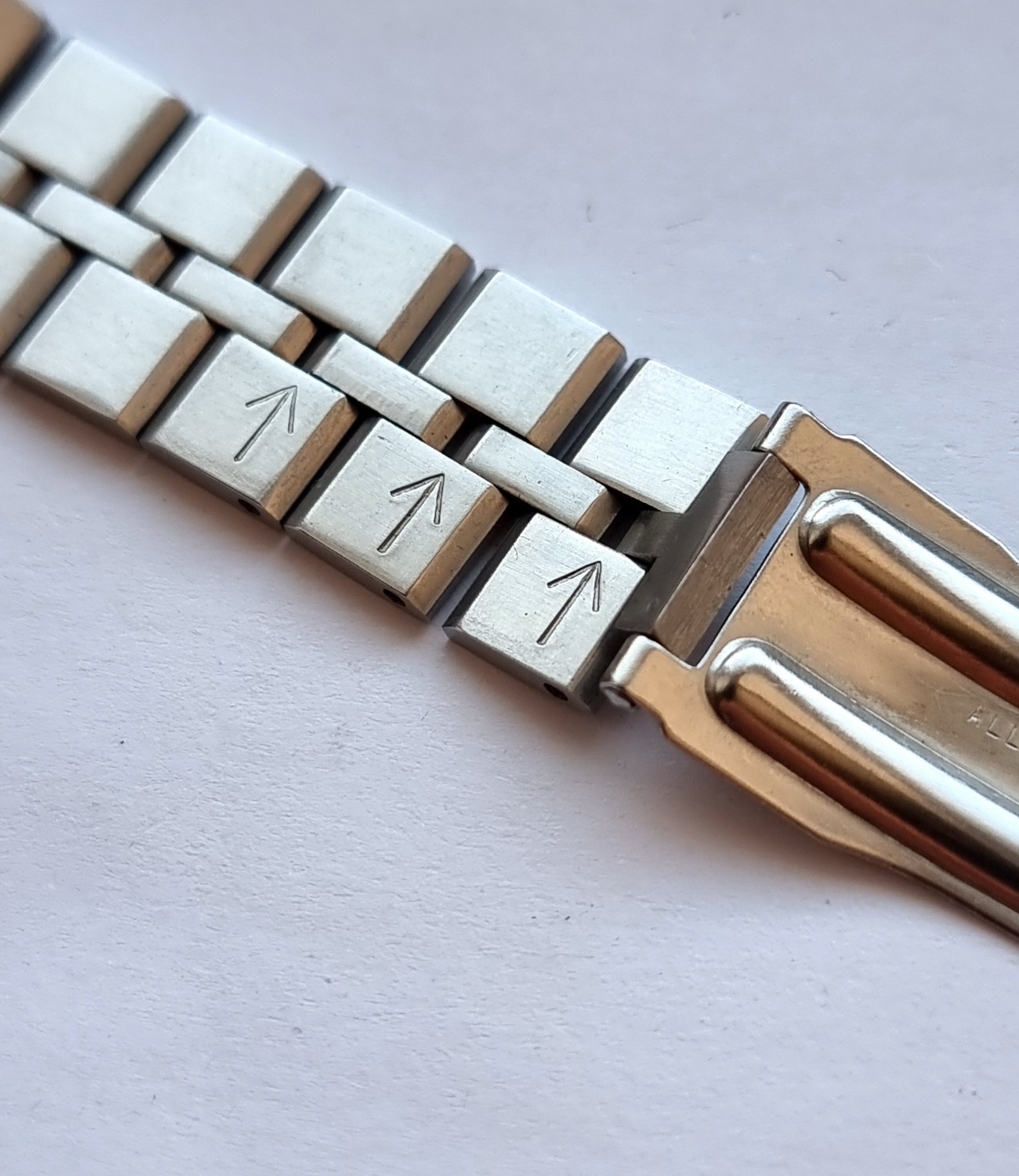 All parts are original to the watch including the fishbone bracelet and clasp. The watch is in superb condition and appears unpolished. These are not small watches, and therefore often have dents and dings to the case, this example has only a few light wear marks commensurate with age. The case still shows sharps edges with its original brush and polished finish.