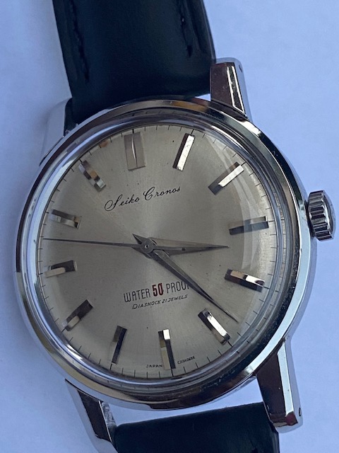 Early this year I bought 2 Seiko Cronos from a collector in the UK, one with the red writing and one with the blue writing. This was a bit greedy as I cannot wear both, so I am letting one of them go. I have never sold a watch on OF and I don’t have a lot of experience selling watches and no reference, but I will do my best to give you a description of the watch.