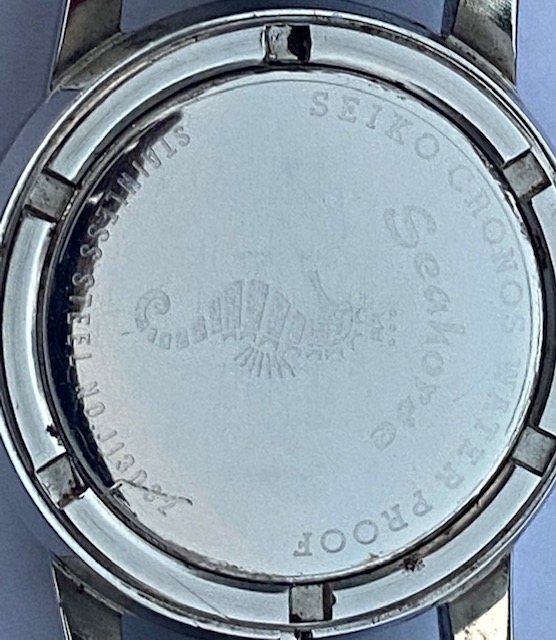 The case is in good condition and the case-back has the seahorse design and the reference number, but a small scratch. I assume this watch was designed to be waterproof as mentioned on the dial, but i do not know whether it will still be waterproof.