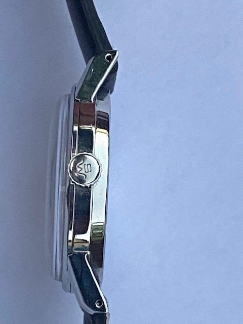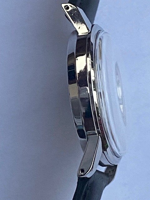 The watch has a nice sunburst dial which might not be visible in the picture. However, it has a tiny stain near the 12 O’clock marker.