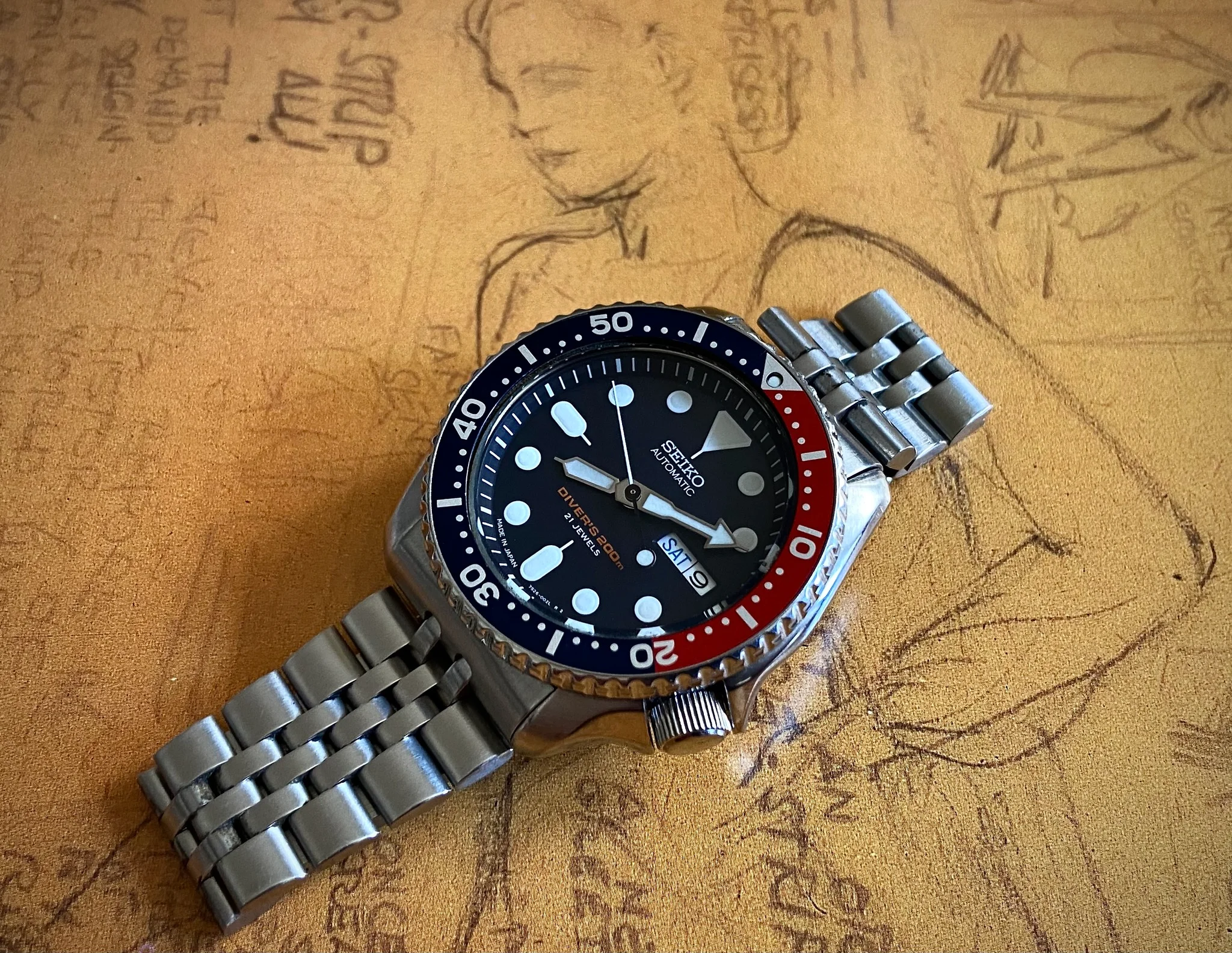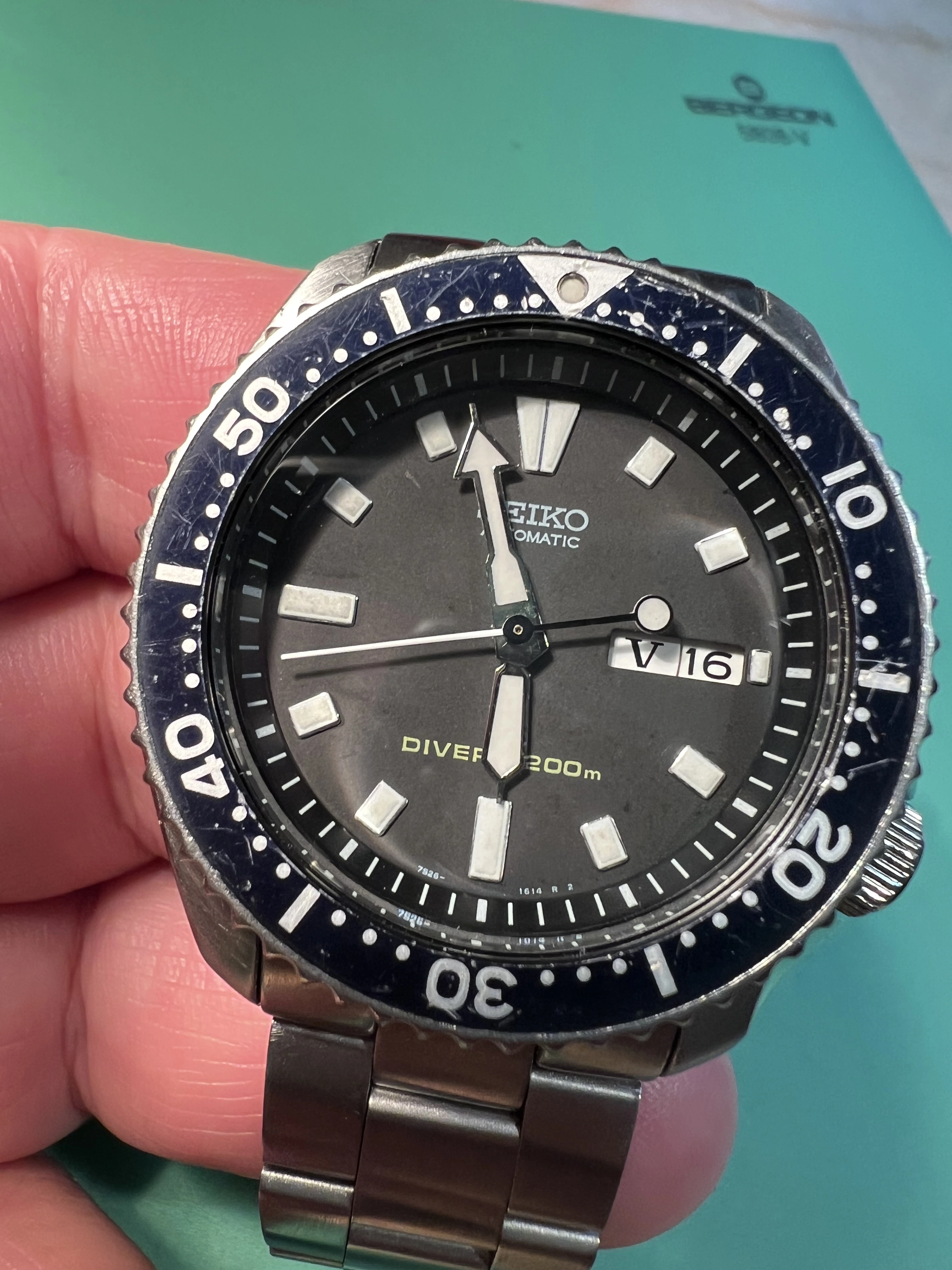Posts 3,072 Likes 6,554 SOG53 ·Apr 10, 2026 Another less common one I had SKX399 from 1998. 7S26 movement sold only in Phillipines I was told. Lume markers have rectangular steel borders and sweep has lollipop on short end.