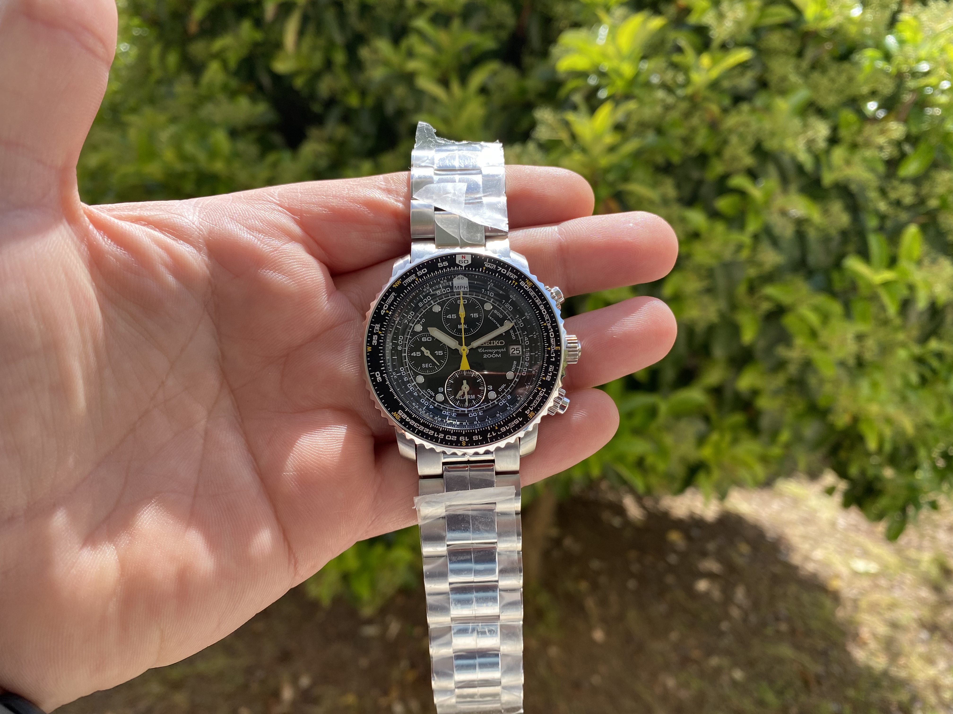 ·Here is my practically new, Seiko Flightmaster, with bracelet, worn with another strap only a handful of times. As you can see the bracelet is still with the stickers.