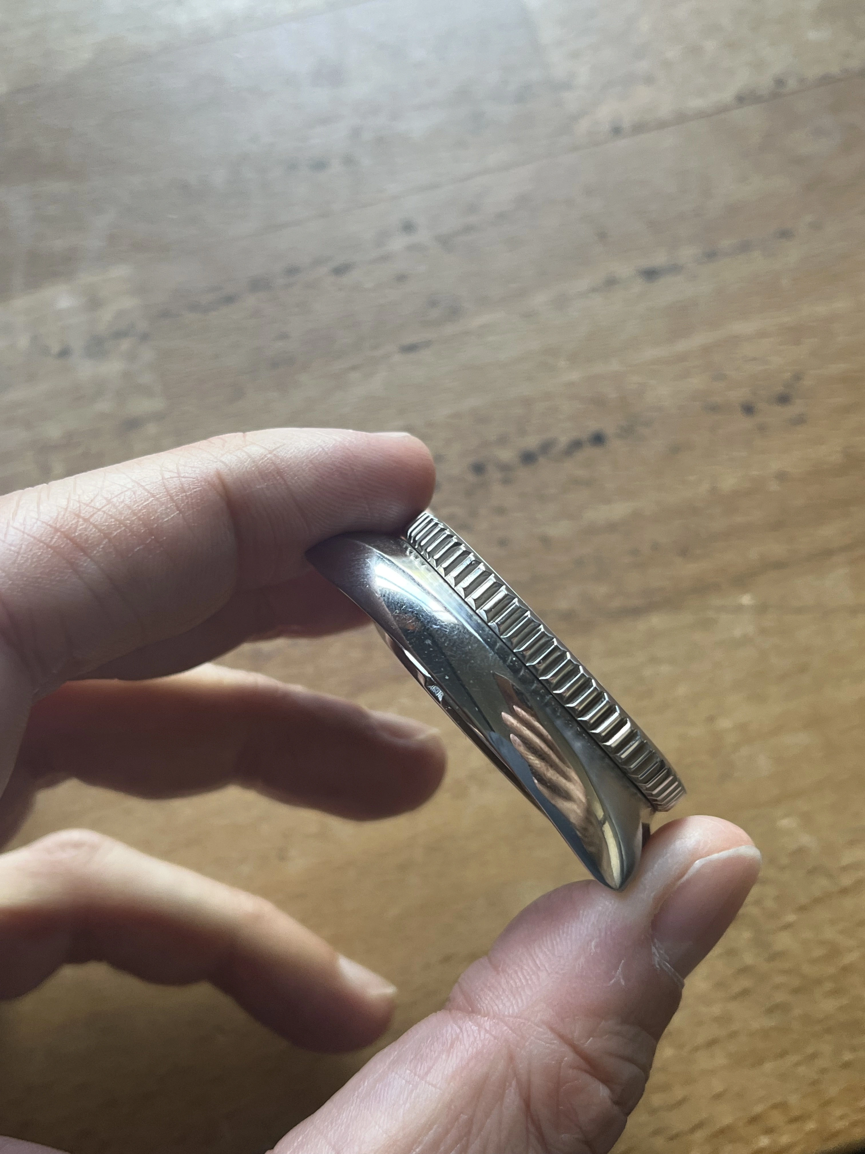 Slim case back, roulette calendar wheel matching lume color, faded insert.