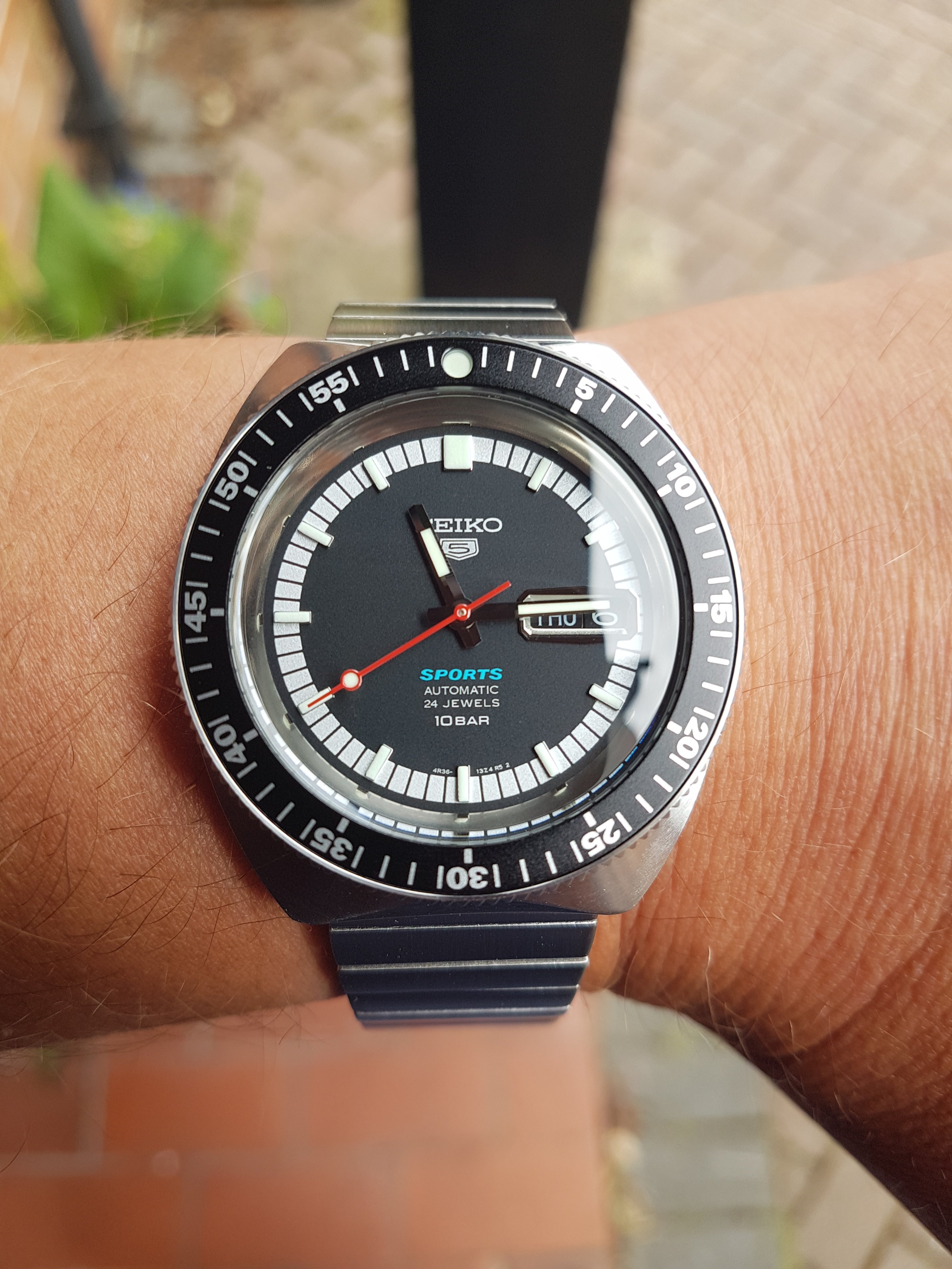 Now that I've noticed that the lume on the lollipop hand on the regular contemporary Seiko 5 Sports watches is on the opposite end of the seconds hand that actually points at the seconds, I'm thinking I really like this retro look one....