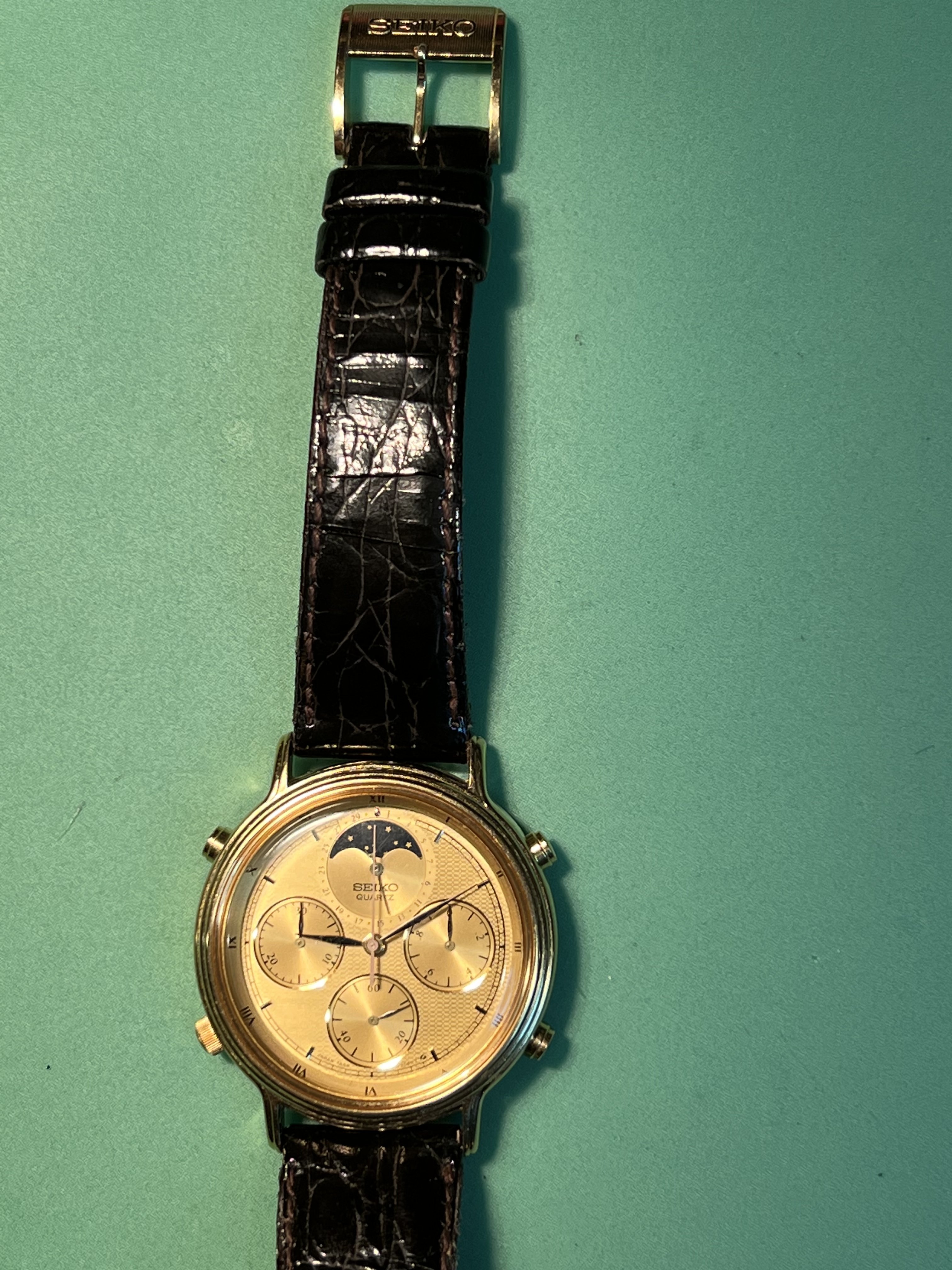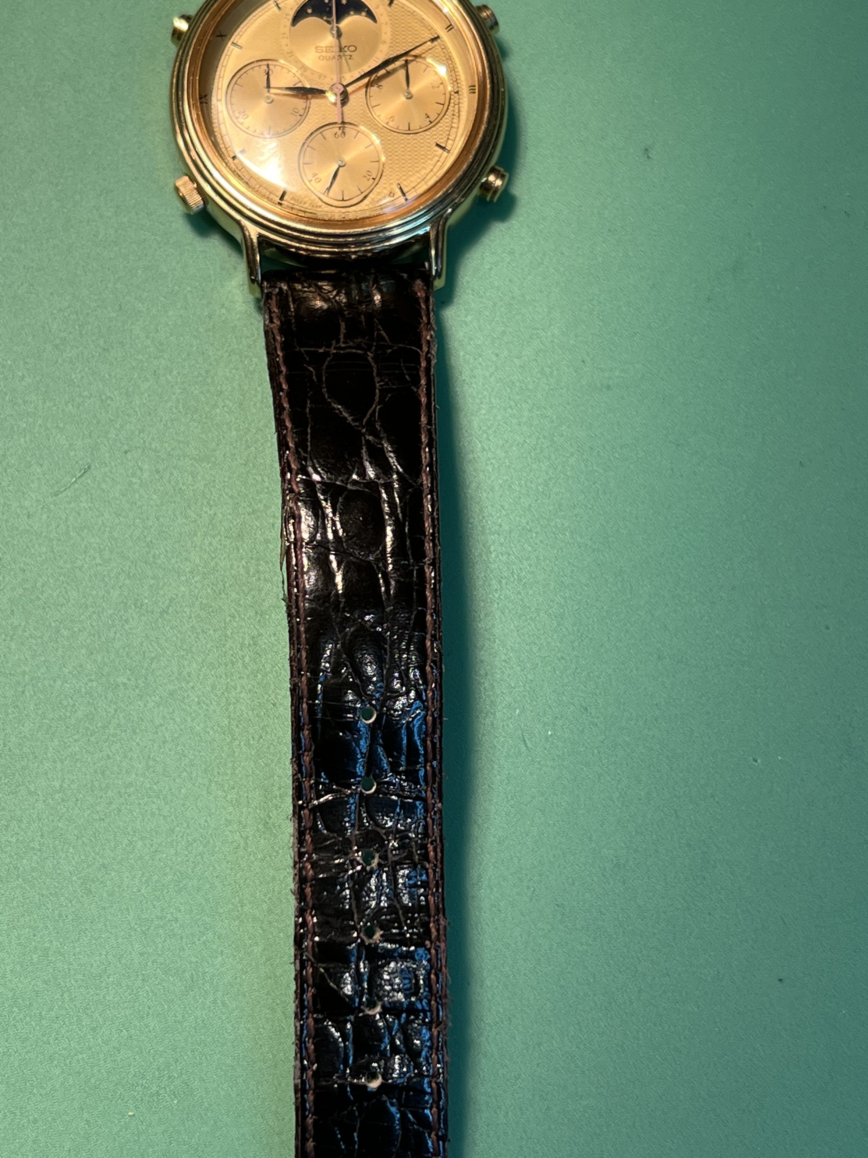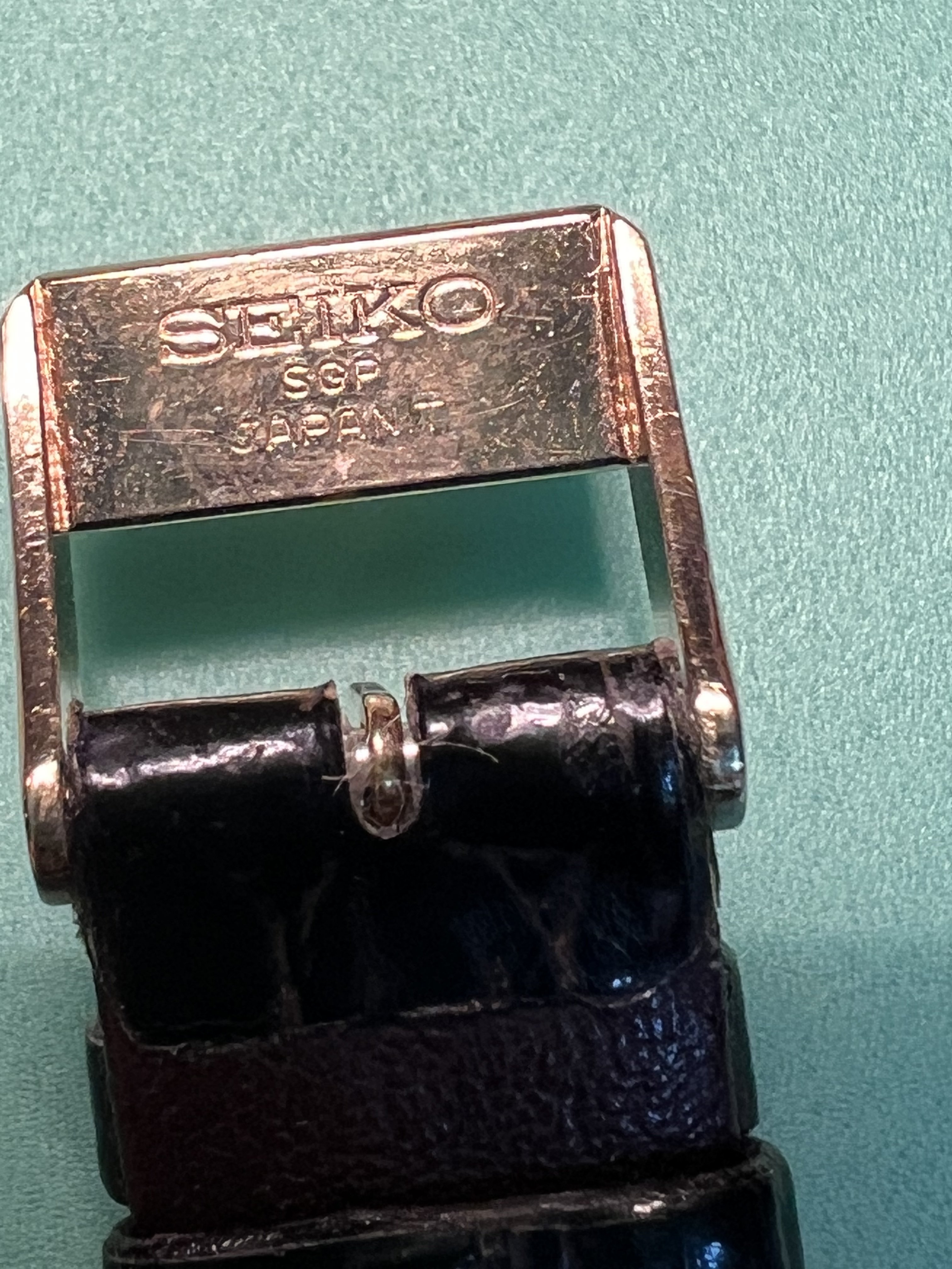 Bracelet: Original leather Seiko bracelet and original gold Seiko Buckle included. Bracelet show some signs of wear but is intact and wearable.