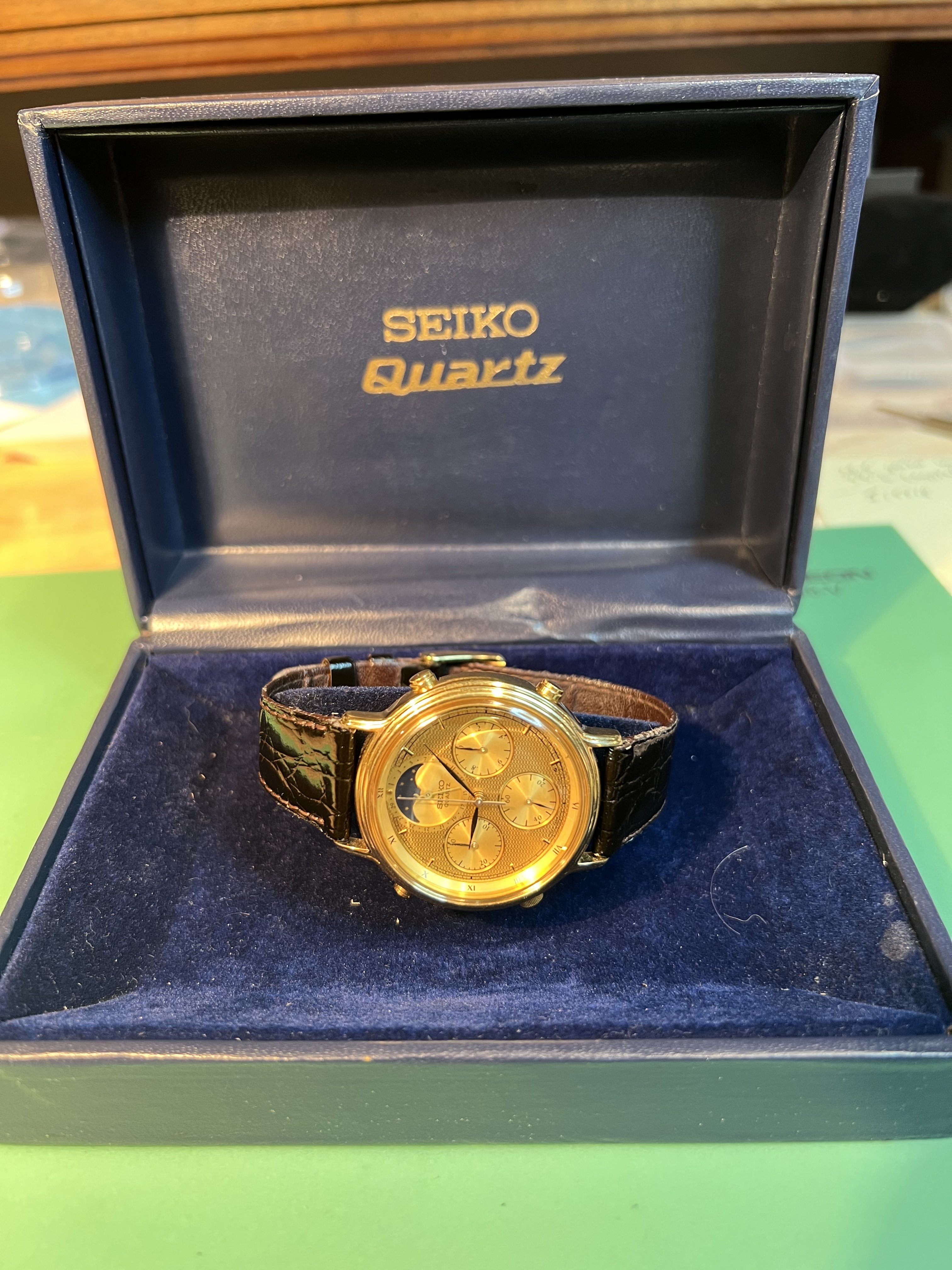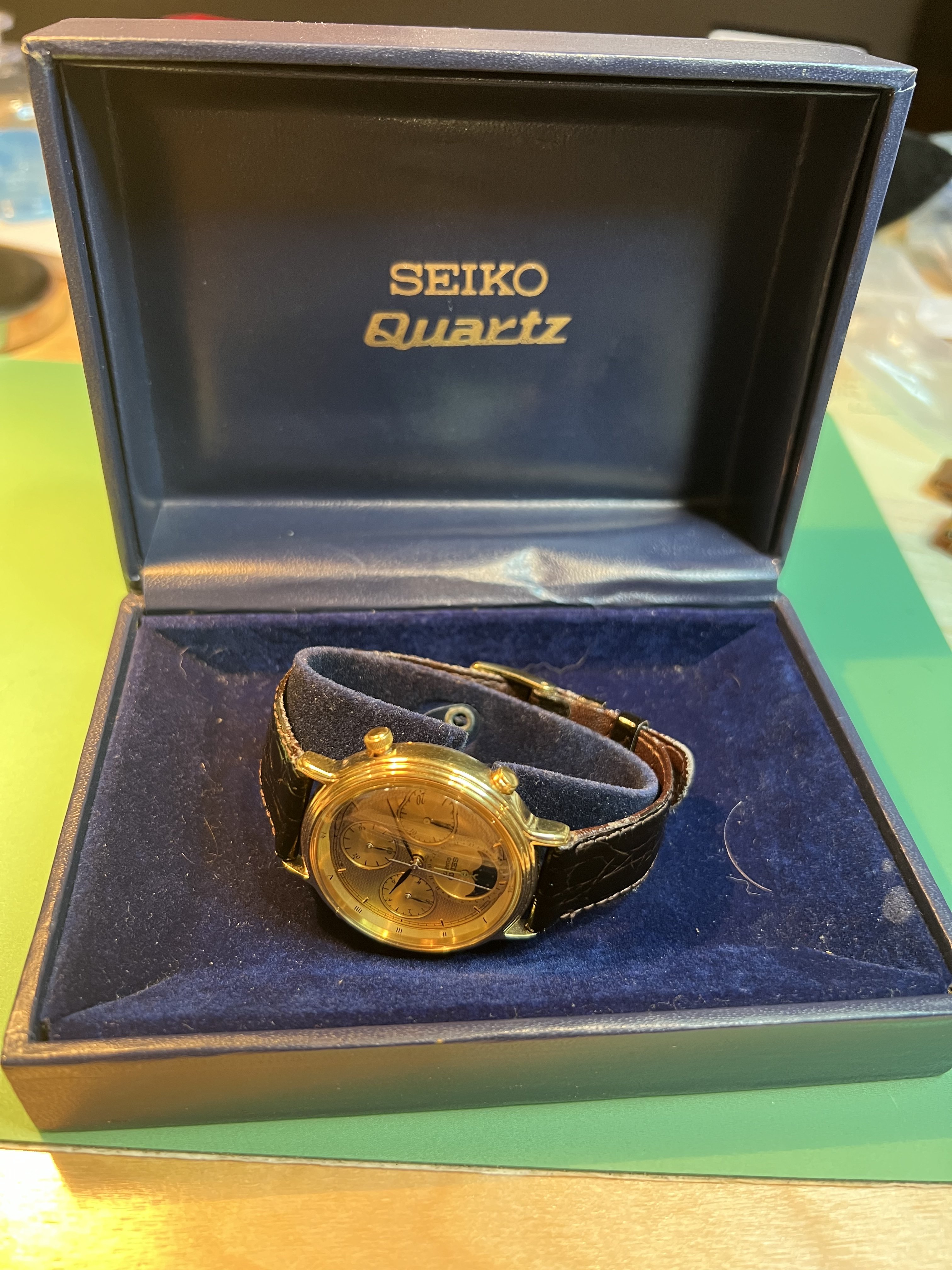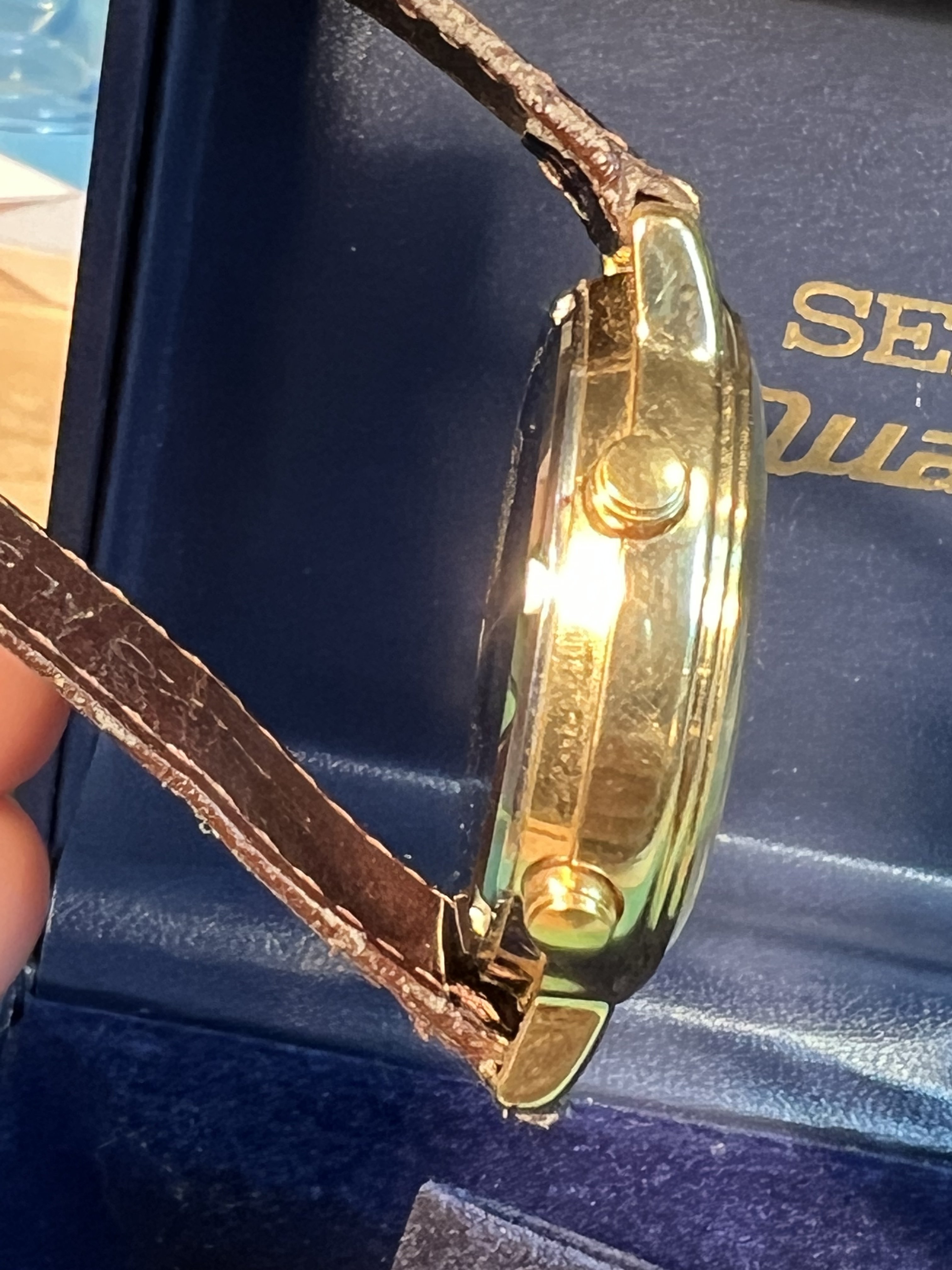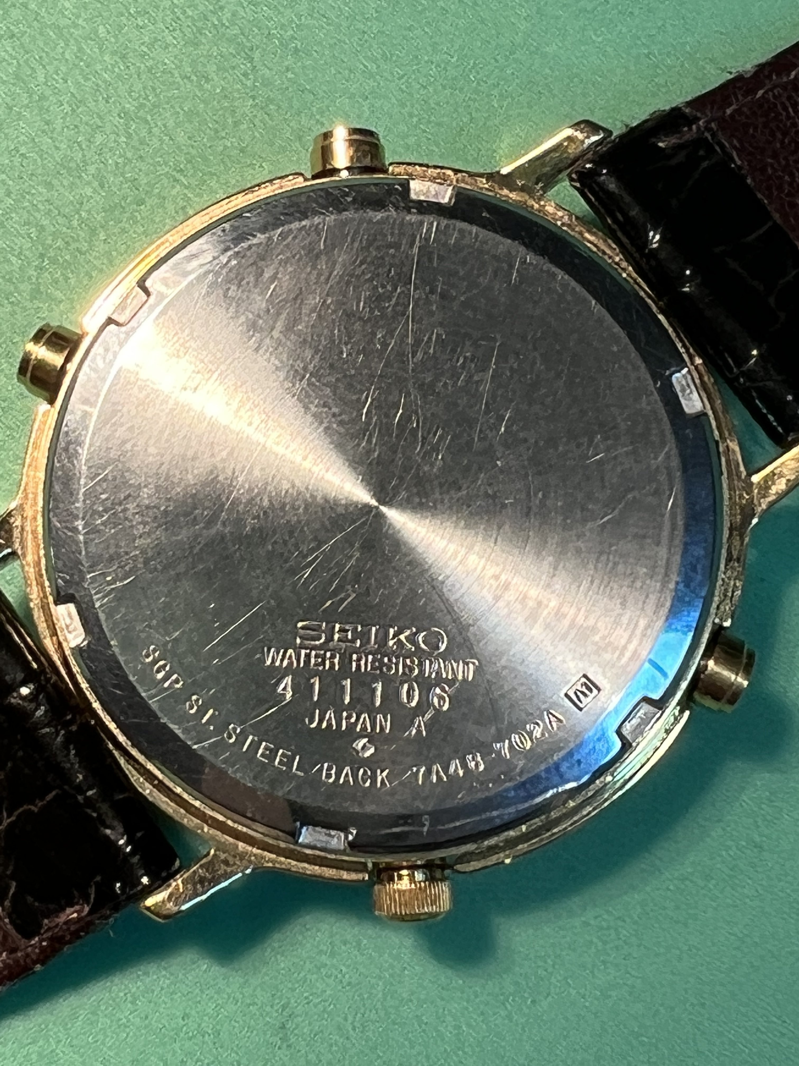 Bracelet: Original leather Seiko bracelet and original gold Seiko Buckle included. Bracelet show some signs of wear but is intact and wearable.