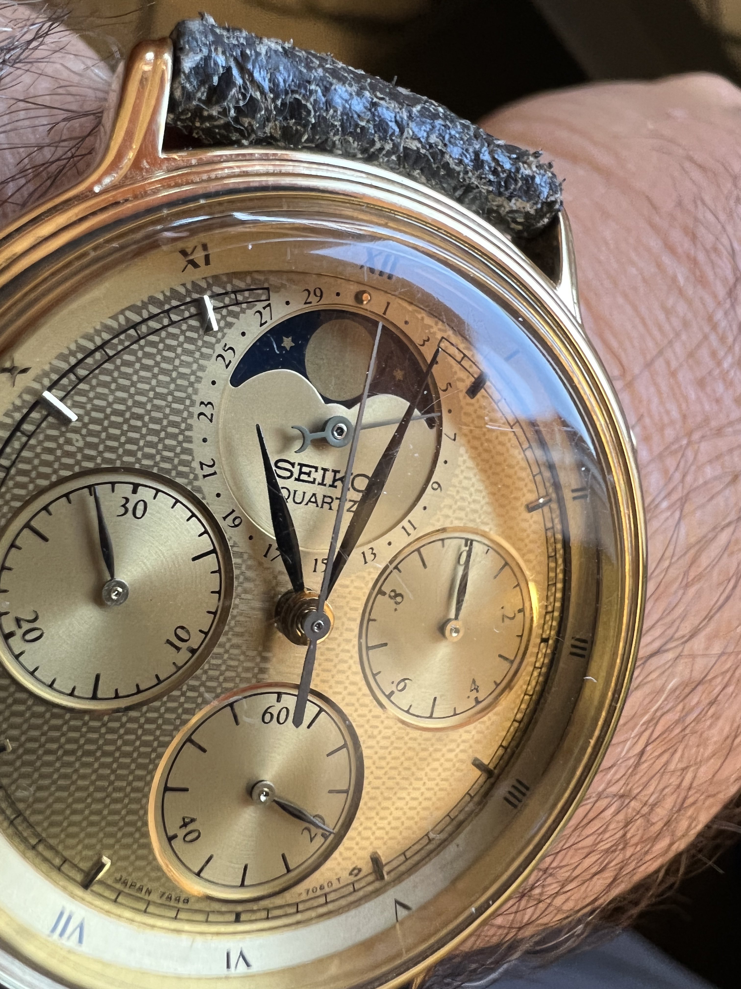 ·Original Vintage Seiko Quartz Moonphase Chronograph 7A48-702A NEW PRICE