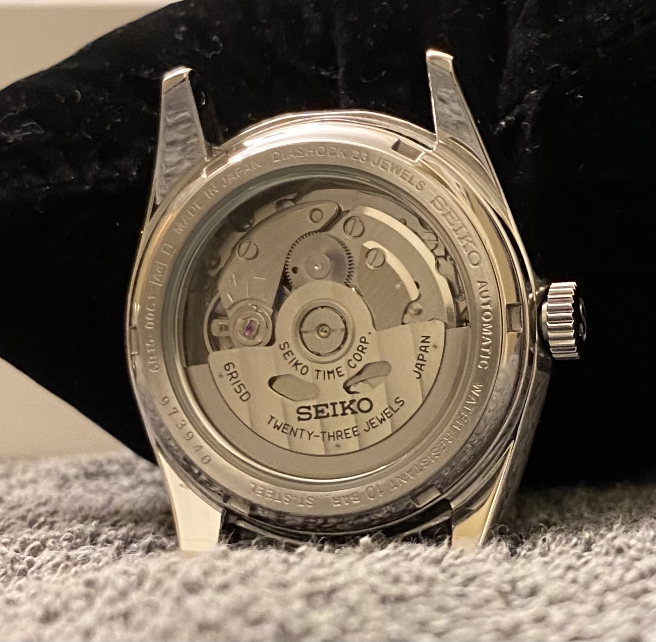 The 6R15 movement keeps great time and has a power reserve of 50 hours.