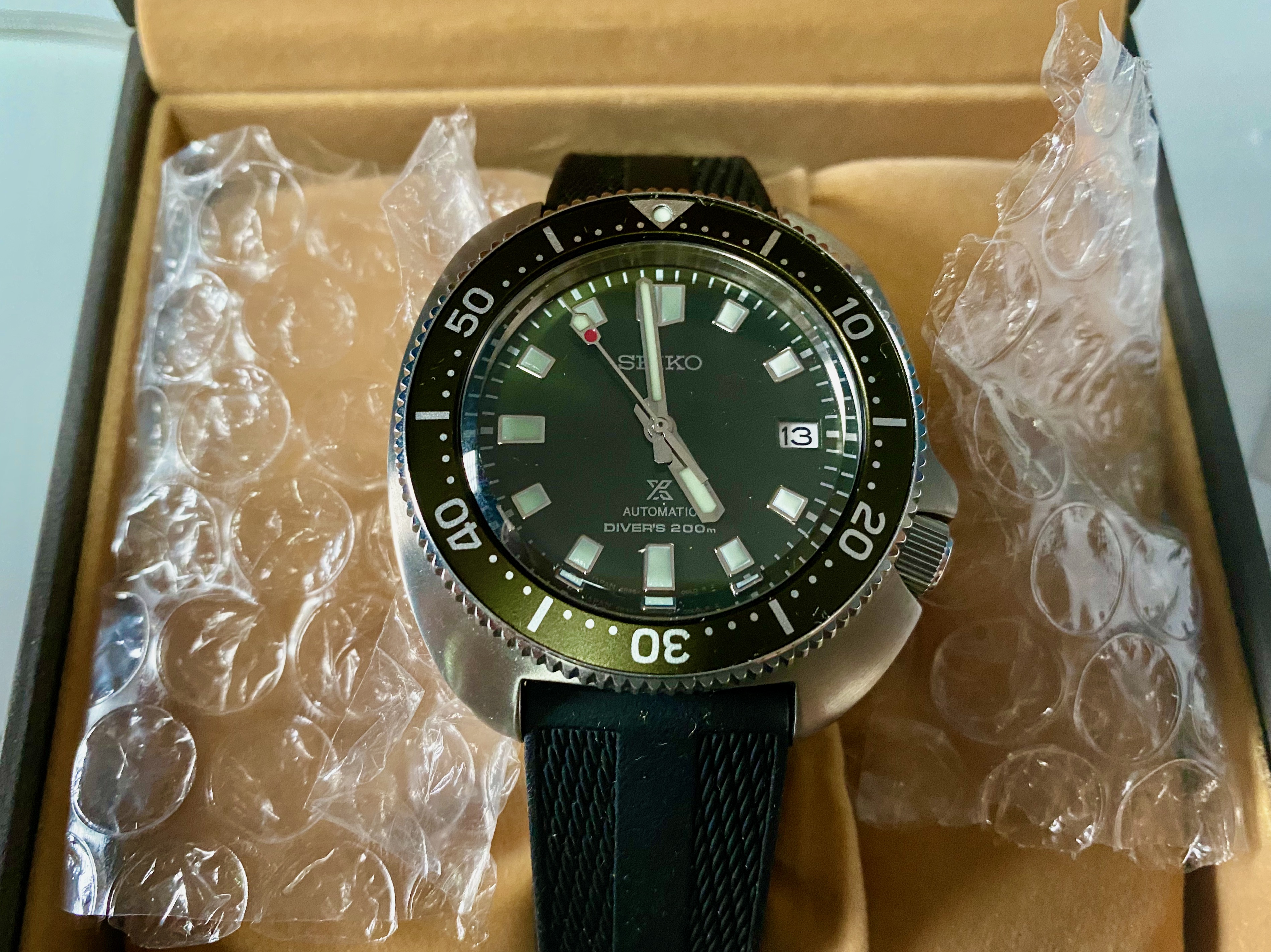 For sale is my Seiko SBDC111/SPB153 Captain Willard with Olive Green Dial and Bezel that I picked up off a watch forum. Watch was bought brand new from Gnomon watches in August. I need to sell this one to fund another incoming so no trades please. Case is in excellent condition with some minor scratches on the back that I tried to show as best as I could in the pictures below. I am asking for SOLD ELSEWHERE$925via Paypal where I will cover fees and shipping. I am only willing to sell within the CONUS at this time. I have plenty of references on OF and WUS under the same handle.