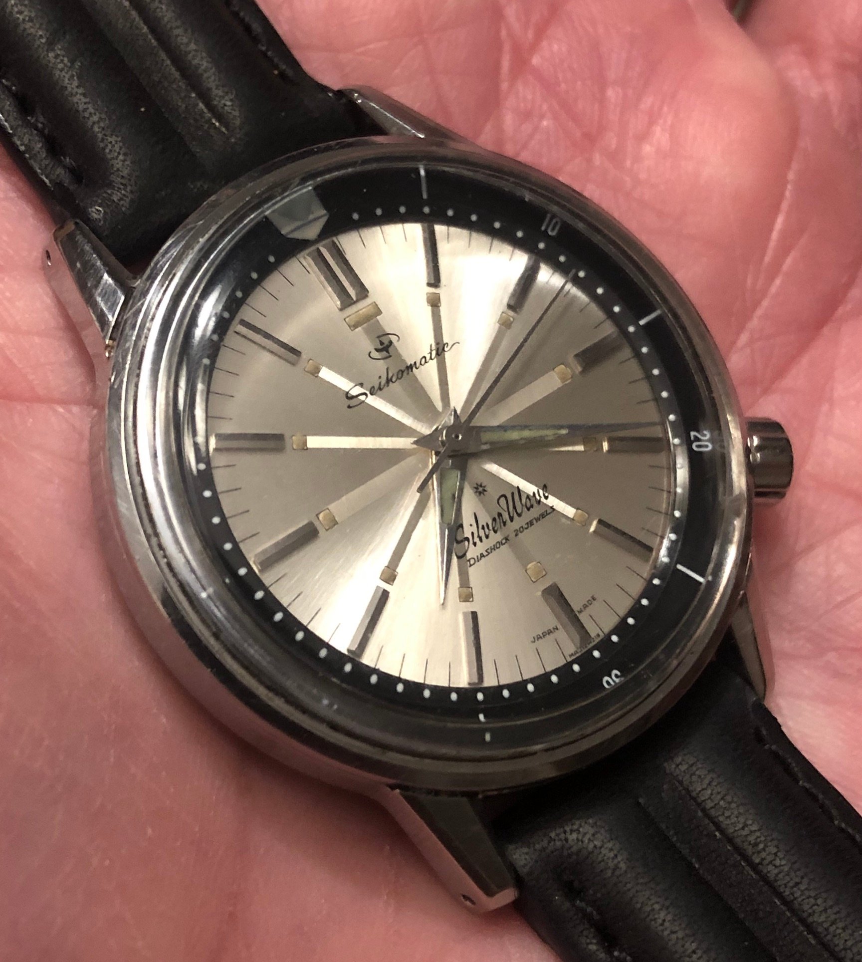 Seikomatic Silverwave 50m, Sunburst dial, Black rotating bezel