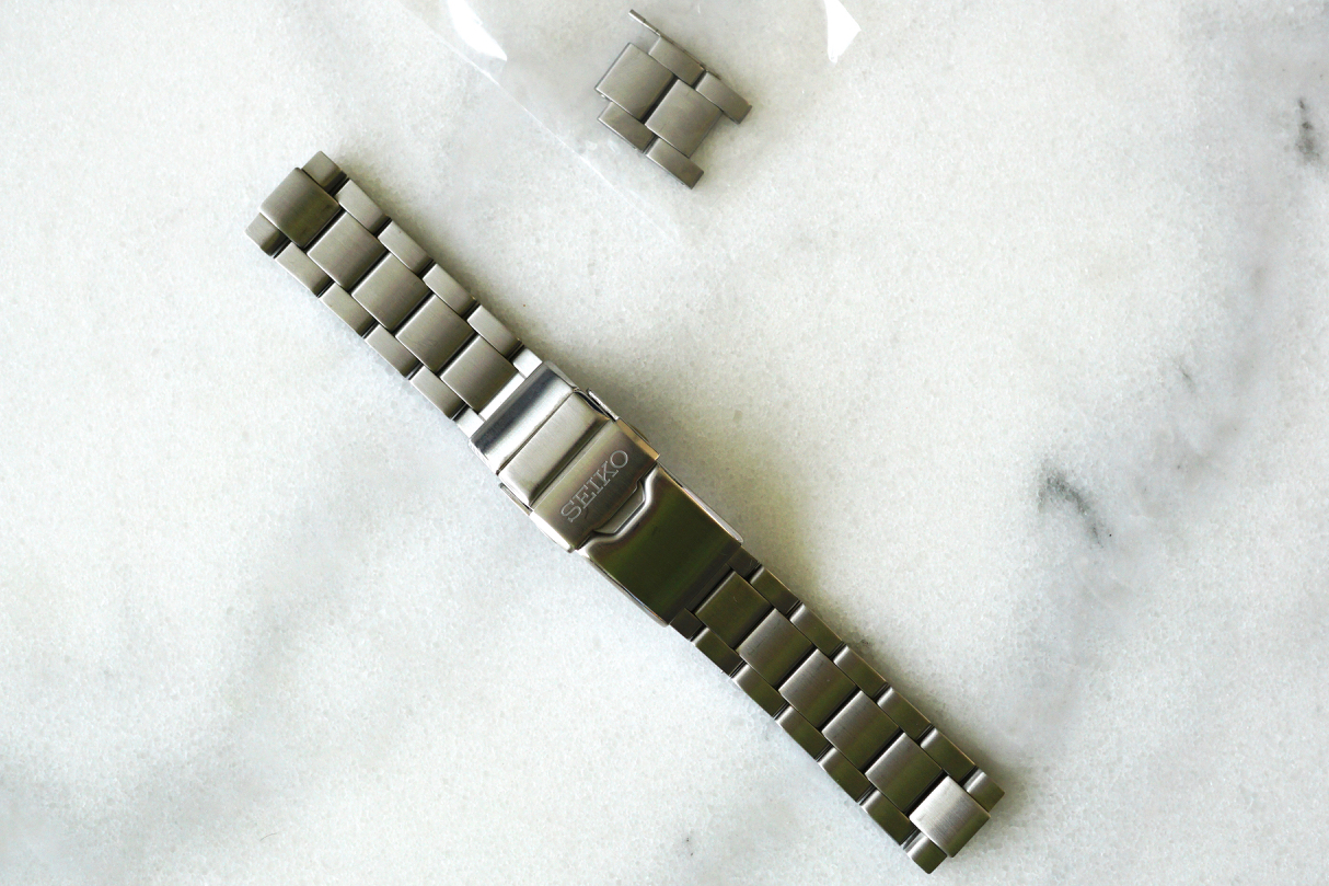 The watch comes with the original bracelet and all links. The watch comes on an uncle seiko strap. I don't have the original rubber strap. The package is complete with box, manual & purchase card.